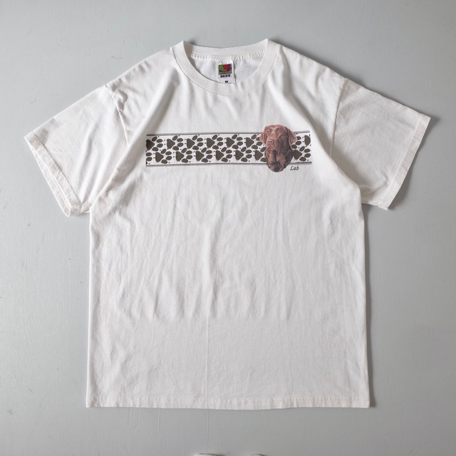 COLOR WHITE MODEL 173cm 58kg SIZE L 肩幅 51.5cm、身幅 55cm、着丈 69cm、袖丈 20cm ※サイズに関しましては手採寸のため、多少の誤差がある場合がございます。 ラブラドールレトリバーの穏やかな性格が伝わってくる 犬Tシャツ。足跡がスタンプの様にデザインされた一品で ボディは“FRUIT OF THE LOOM” Lサイズと抜群。 SURFACE 50% COTTON, 50% POLYESTER CONDITION B(使用感、ほつれ) S - 新品同様、又は試着程度のもの。 A - 傷、シミ等特に見当たらず、使用感もさほどない状態の良いもの。 B - 多少の使用感、気にならない程度の傷、汚れなどが若干見られるもの。 C - 使用感、傷、汚れなどがあるが着用に問題の無い程度のもの。 ————————————————————————————— “ ATTENTION " ・当店の取り扱うお洋服は全て古着ですのでダメージや汚れ、特有の匂いにがある場合がございます。ご理解のある方のみご購入をお願い致します。 ・商品説明に記載のないダメージや汚れが出てくる可能性もあります。 こちらも古着であることをご理解の上ご購入ください。 ・写真と実物の色味、サイズ感、素材感、状態が想像と異なる場合がございますが通販という性質上ご理解下さい。 ・銀行振込、コンビニ決済、Pay-easy、後払い決済の際にかかる手数料は別途ご負担いただきます。 ・商品に初期不良がある場合を除き、お客様都合による返品には応じかねますので予めご了承ください。 ・送料として全国一律 1,000円(税込)を頂いております。なお、配送方法については、宅急便以外にもレターパック等にてお送りする場合が御座いますが、発生した送料の差額は返金致しかねますのでご了承ください。