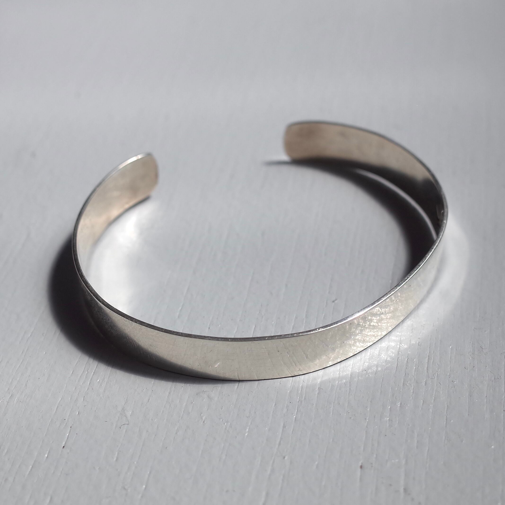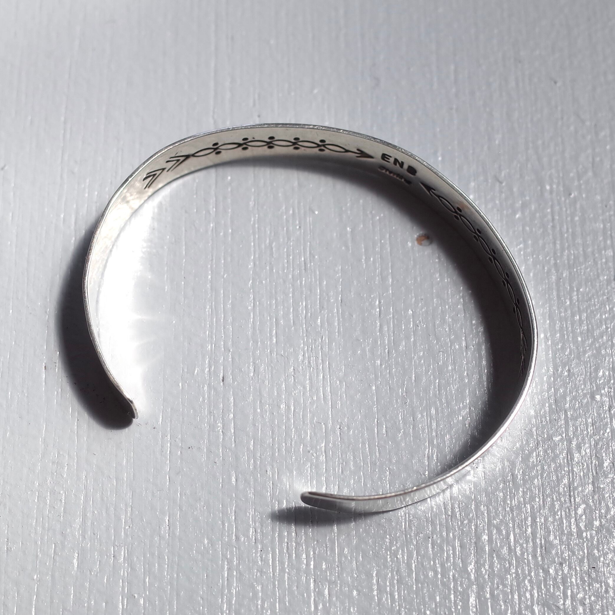 内側に施されたナバホ族のハンドメイドバングル。愛着を