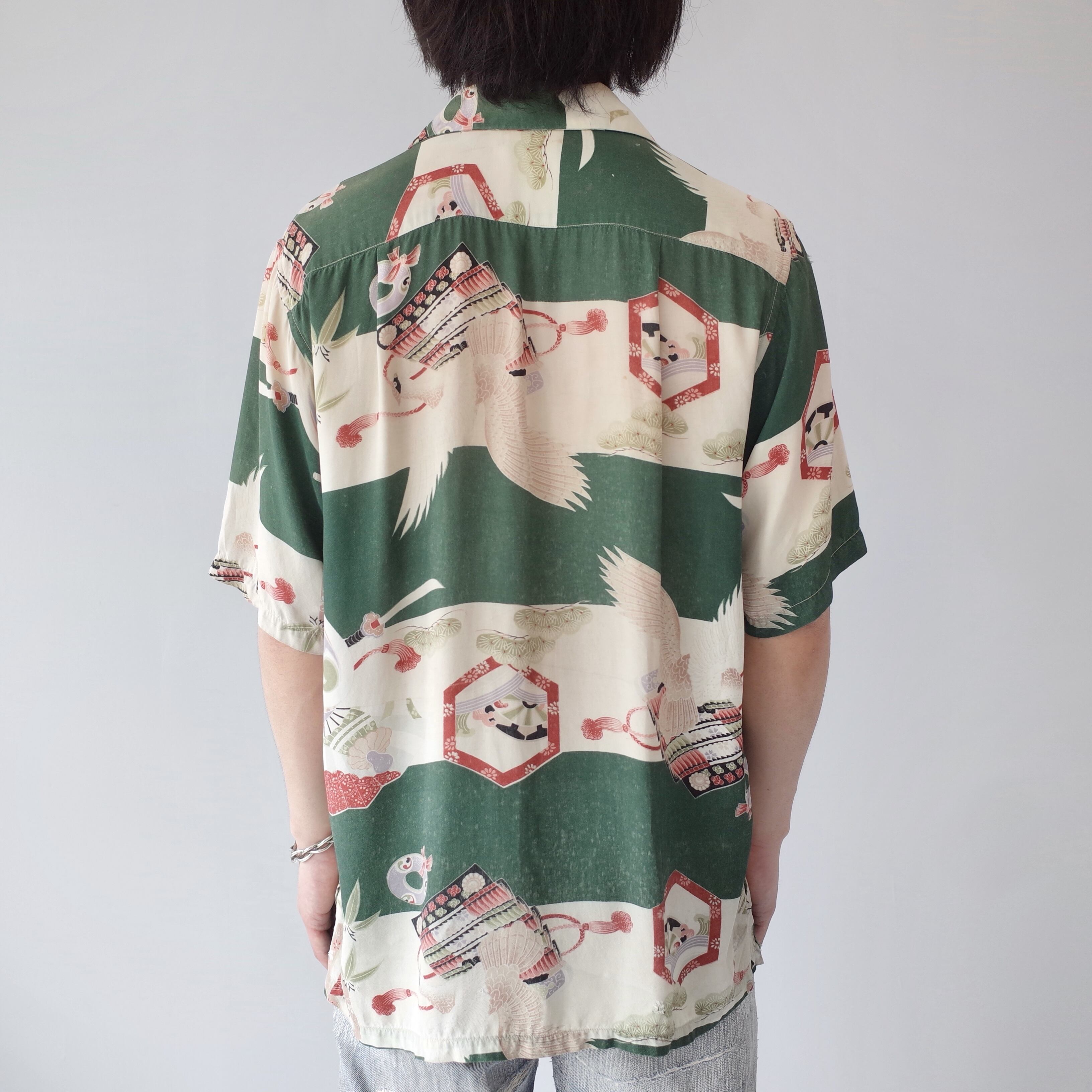 【VINTAGE】 50's~ 『鷹×甲冑×太鼓』 Traditional Japanese Patterned Aloha Shirt s/s