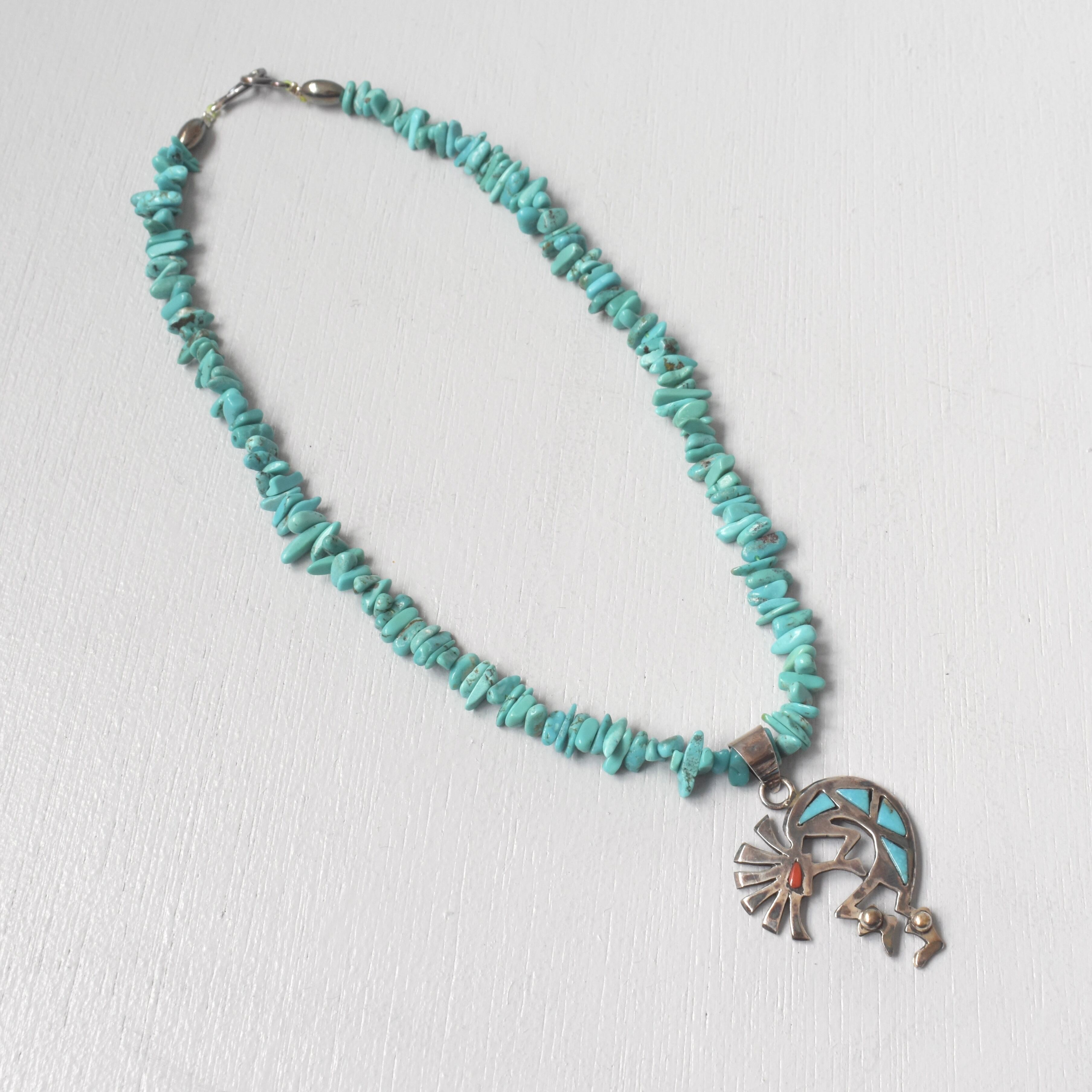 “Kokopelli” Full-Custom by FINCH Artist Handmade Inlay Genuine Silver Necklace TURQUOISE BLUE | FINCH vintage and archive store