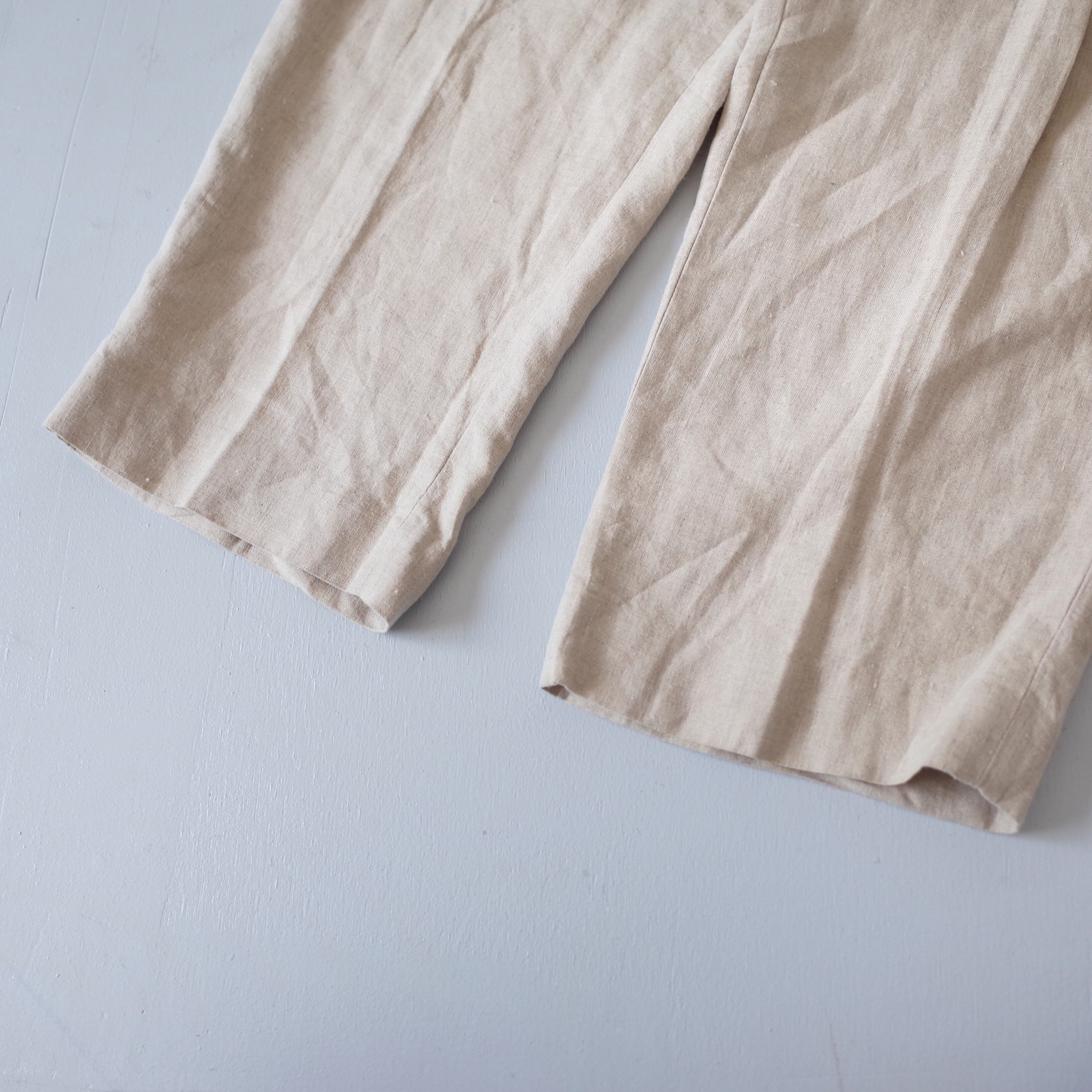 Wide Silhouette Linen Fabric Tuck Design Trousers