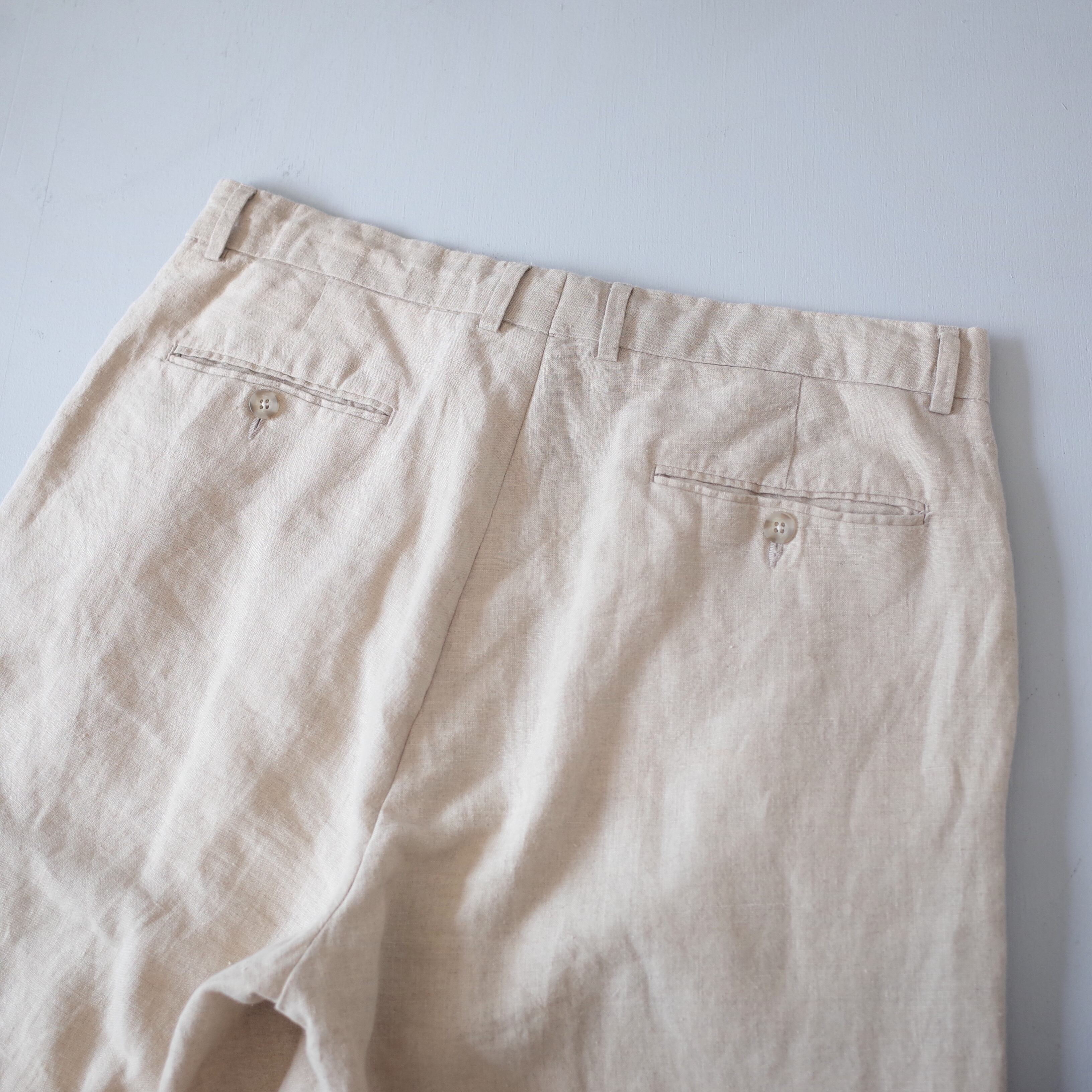 夏らしい生地の代表であるリネン素材を採用したワイドな