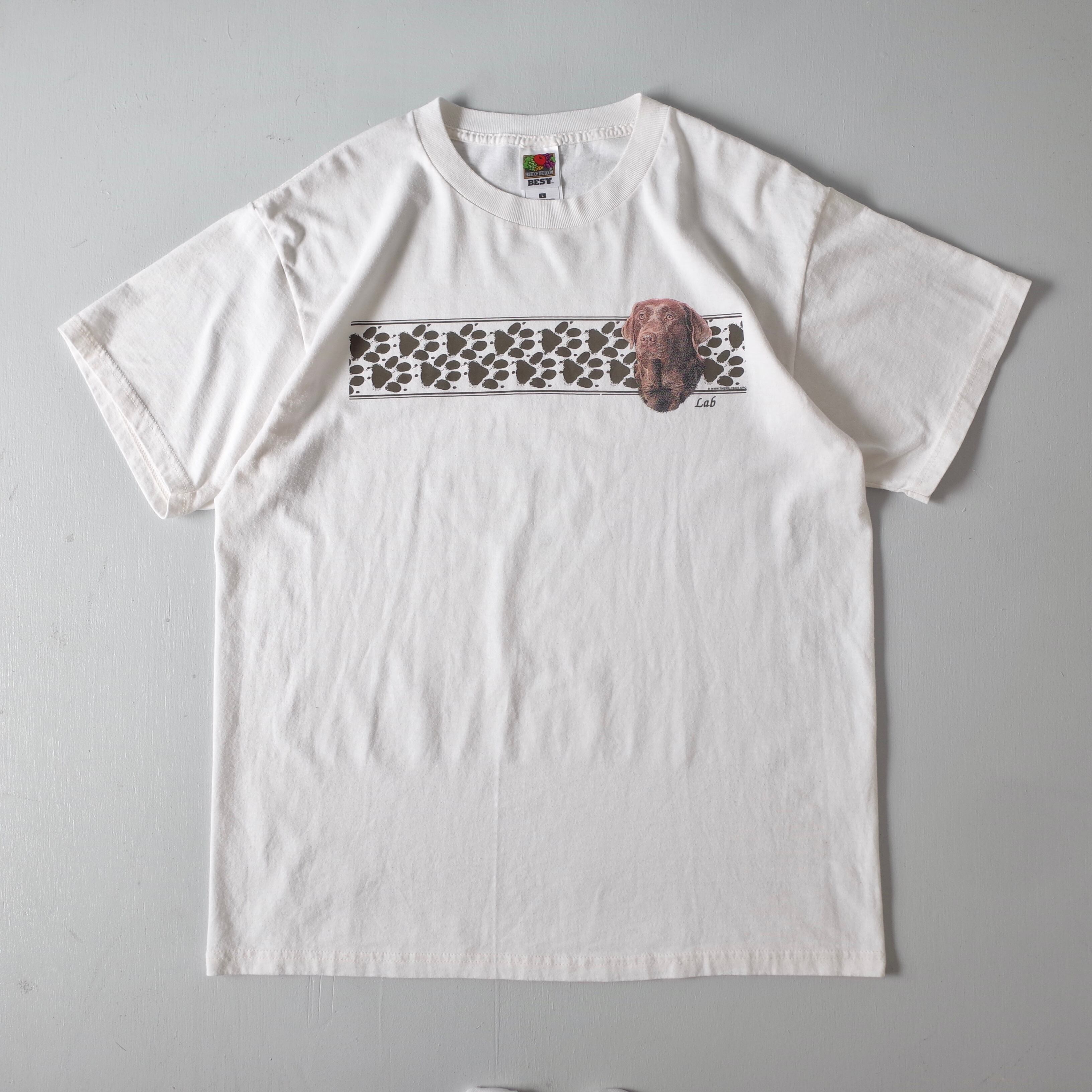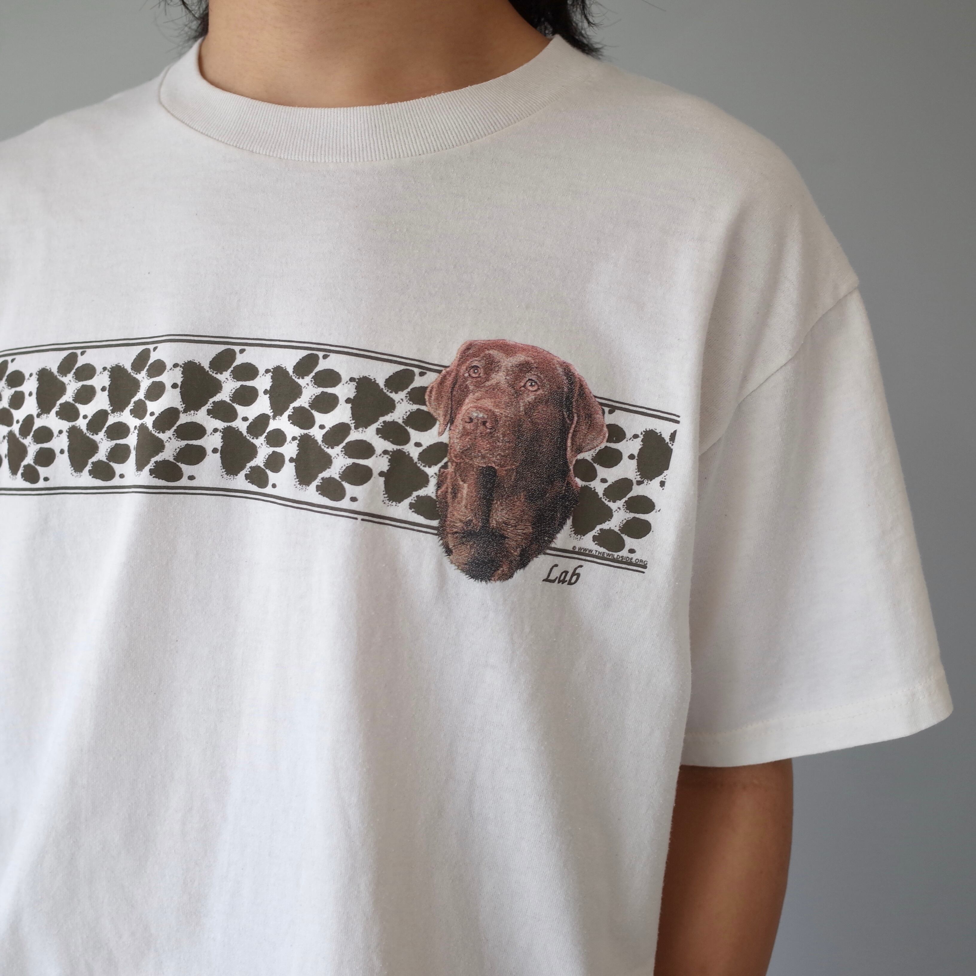 犬Tシャツ。足跡がスタンプの様にデザインされた一品で