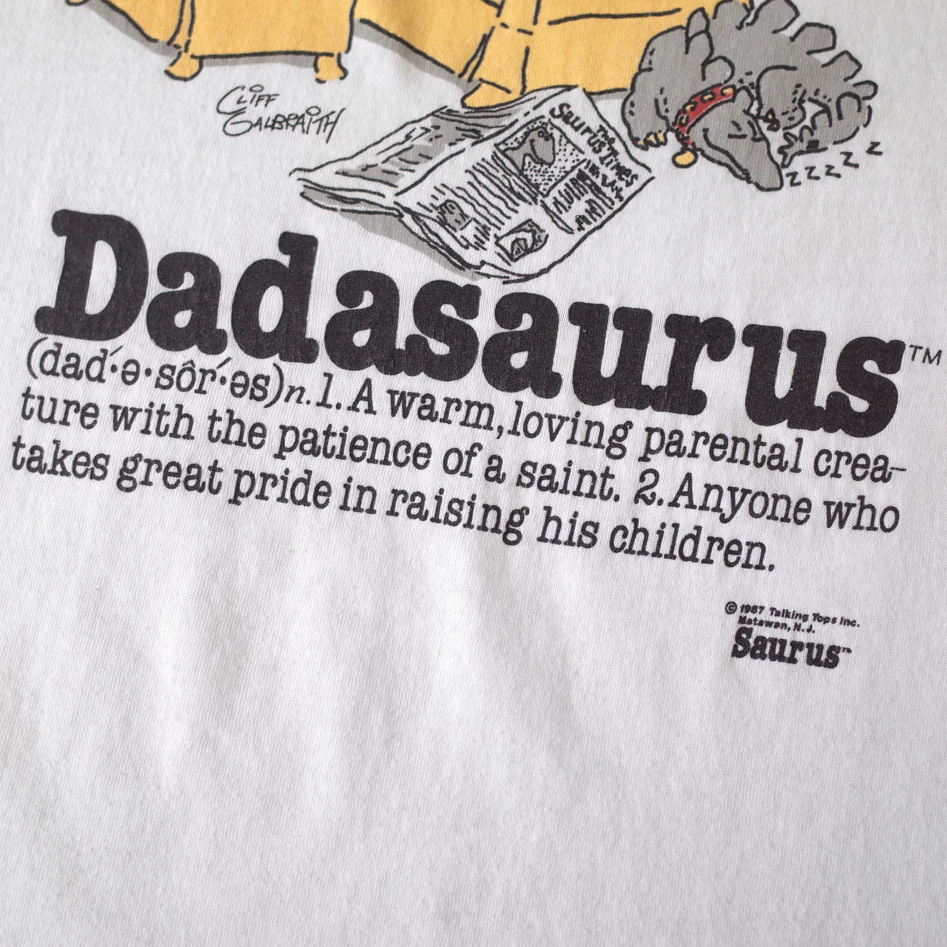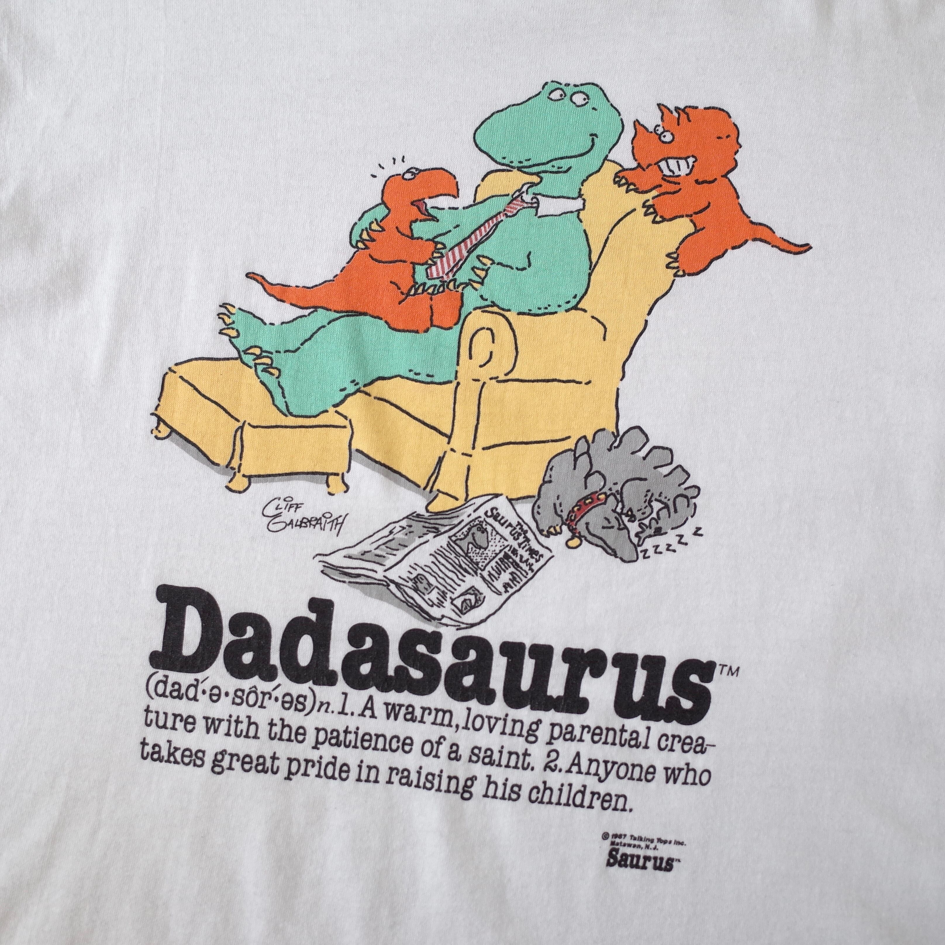 【VINTAGE】 "Dadasaurus" 80's~ Made In USA Front Printed T-shirt s/s