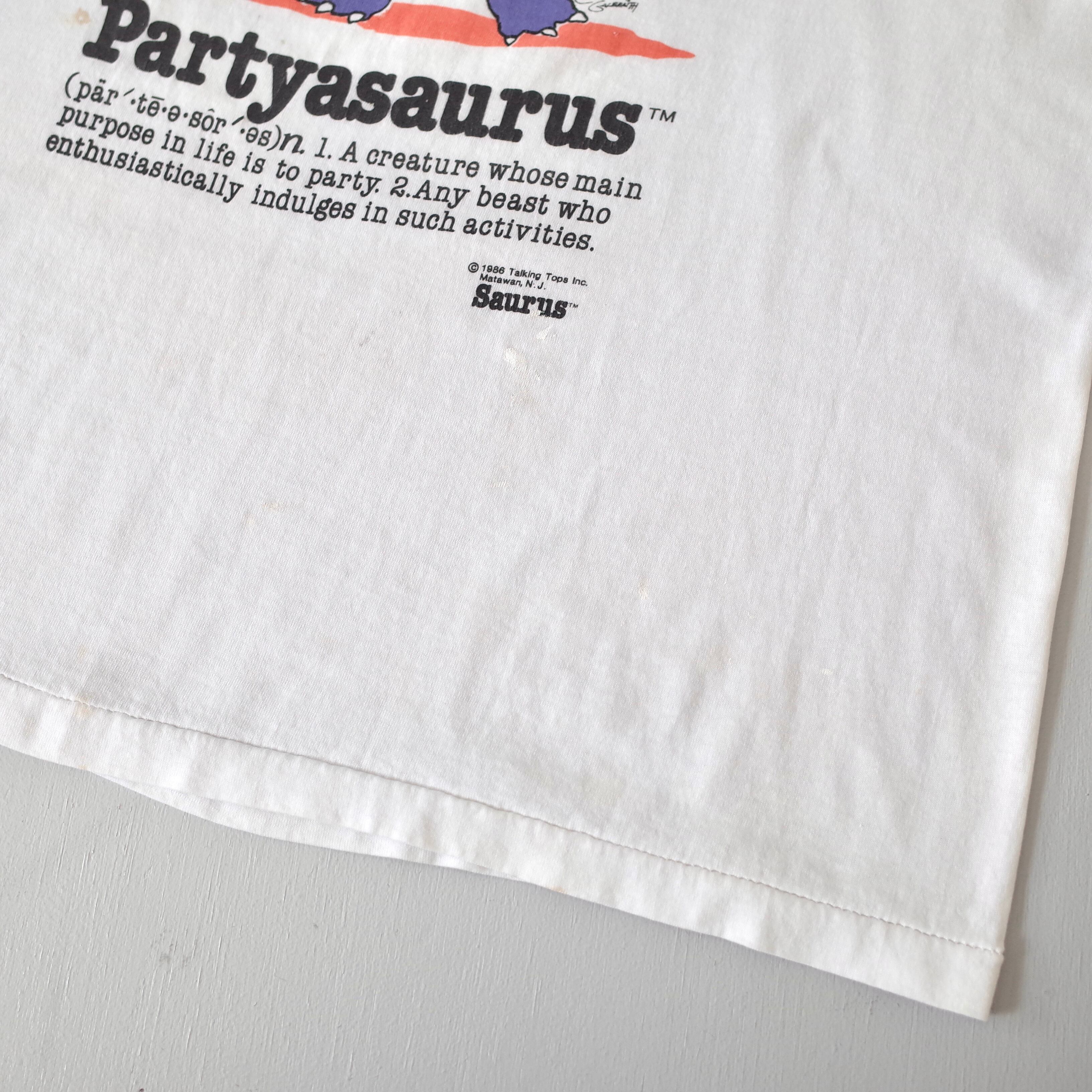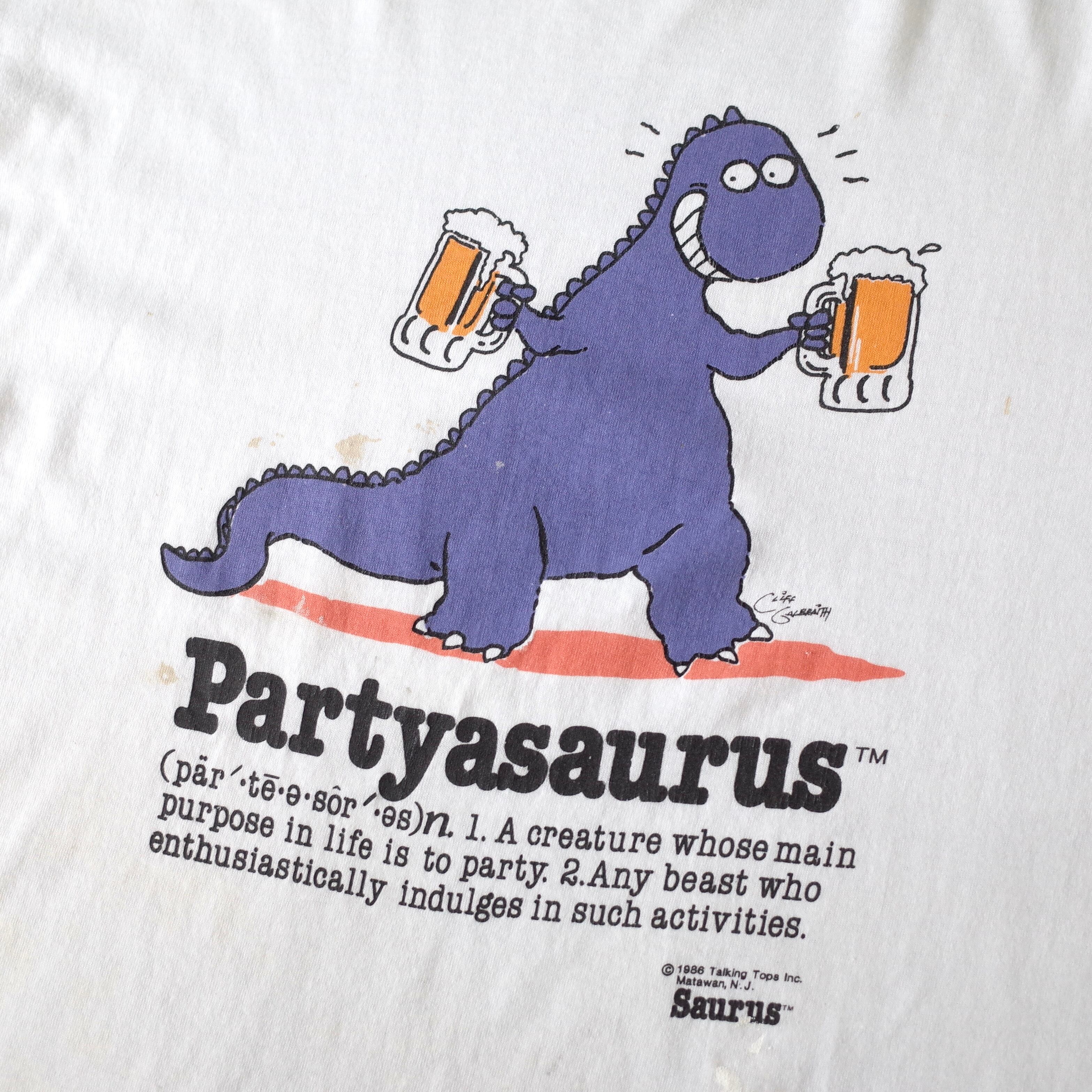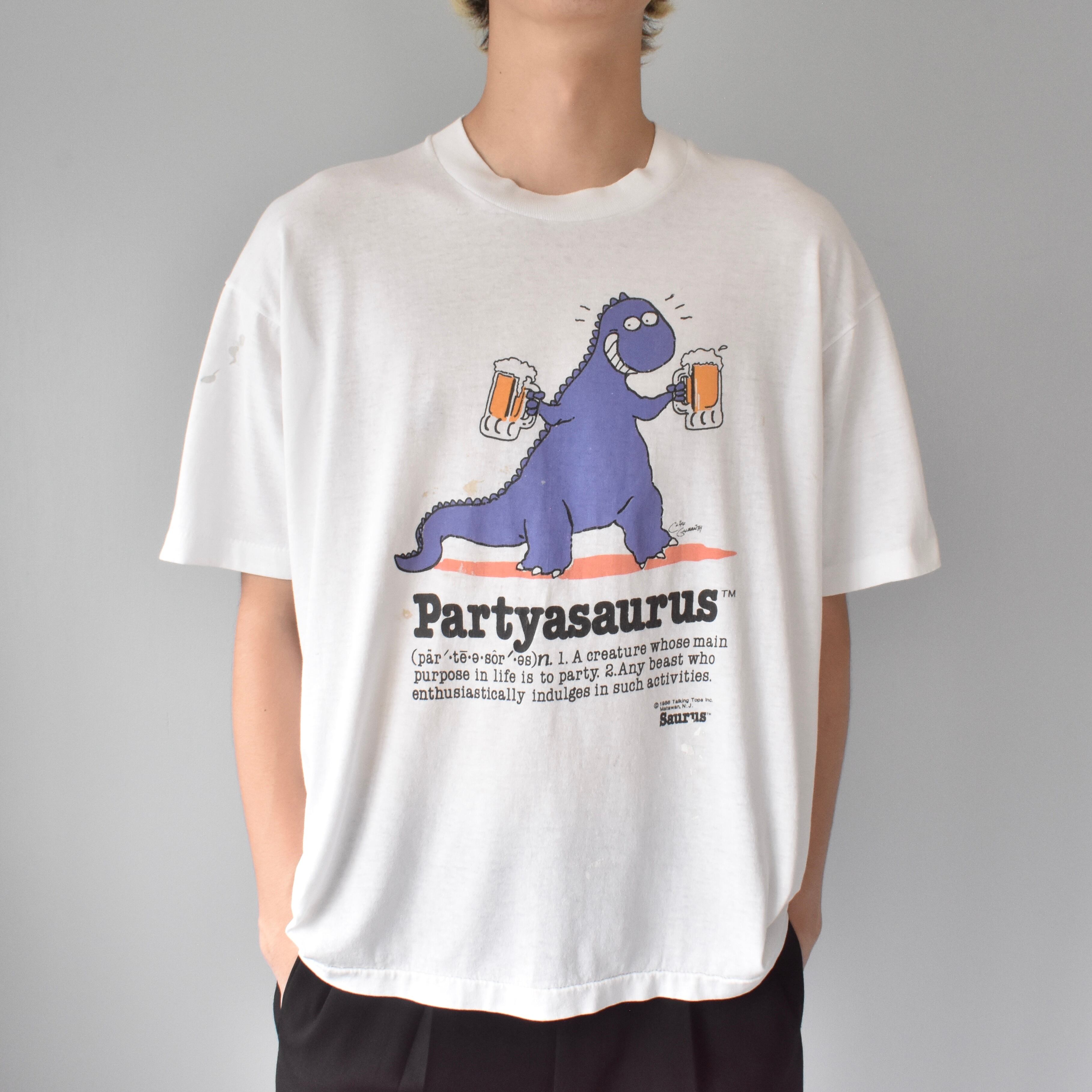 【VINTAGE】 "Partyasaurus" 80's~ Made In USA Front Printed T-shirt s/s