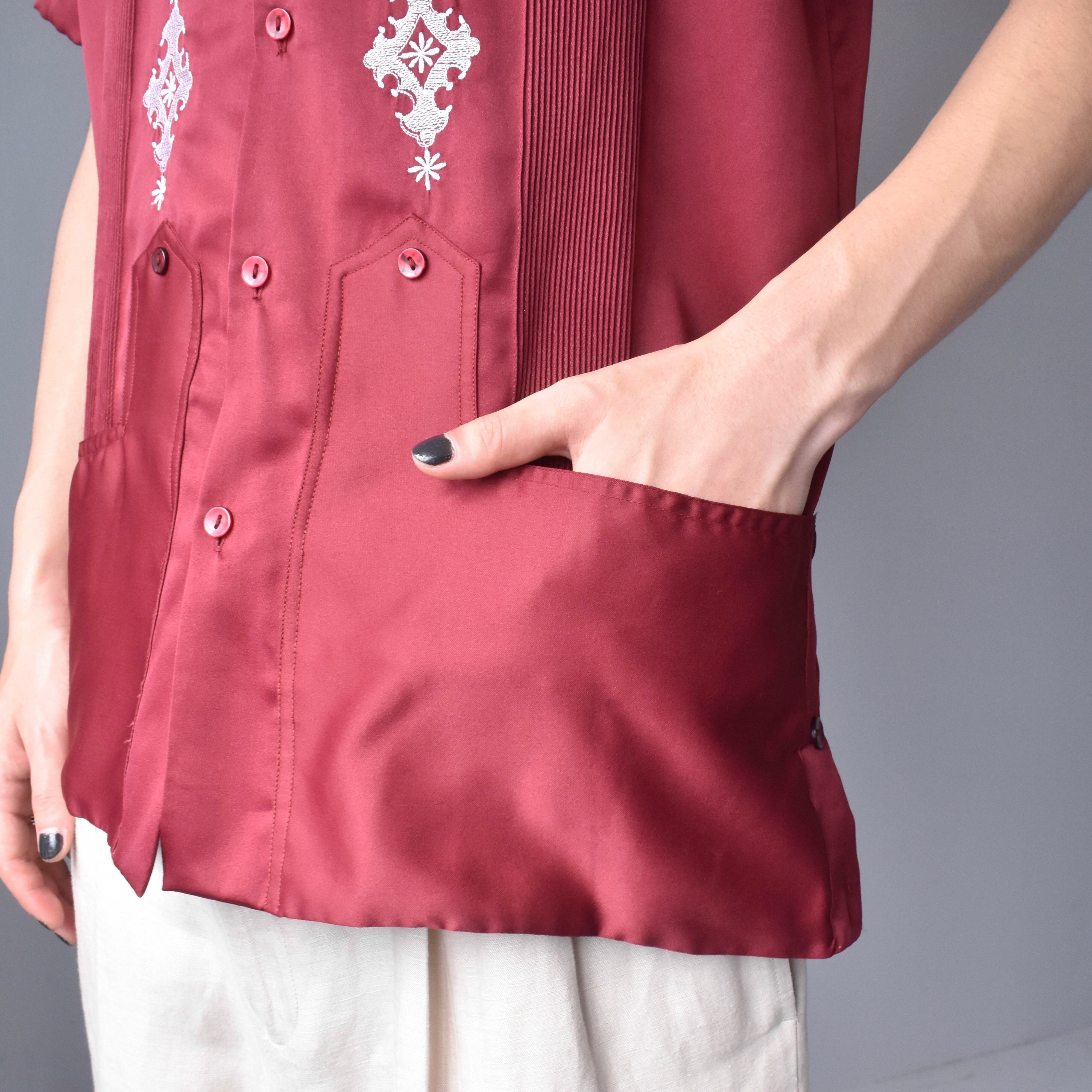 【VINTAGE】80’s~ Embroidery Design Satin Cuba Shirt s/s