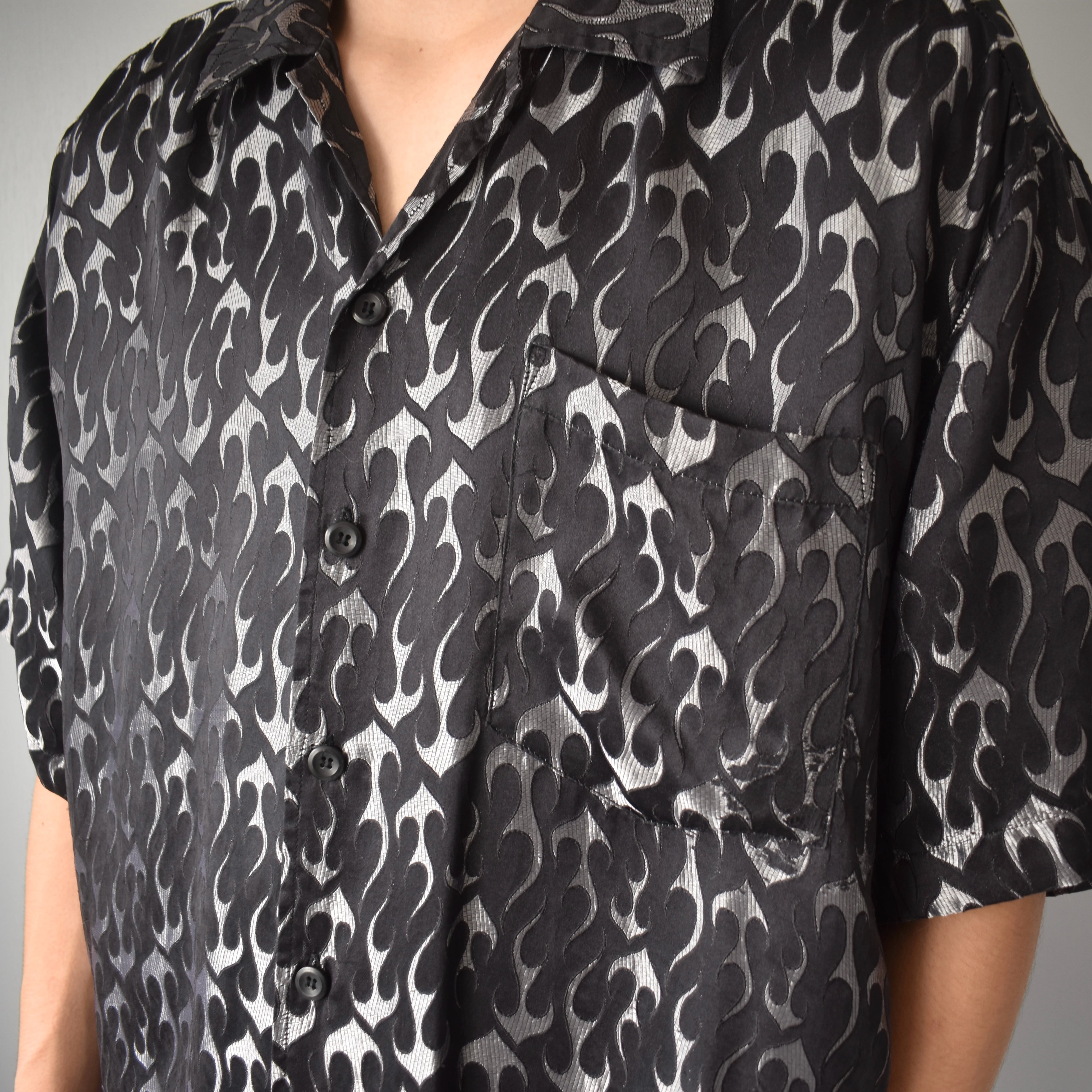 肌触りが特徴的な一品。パンチの効いた黒フレイムの柄が