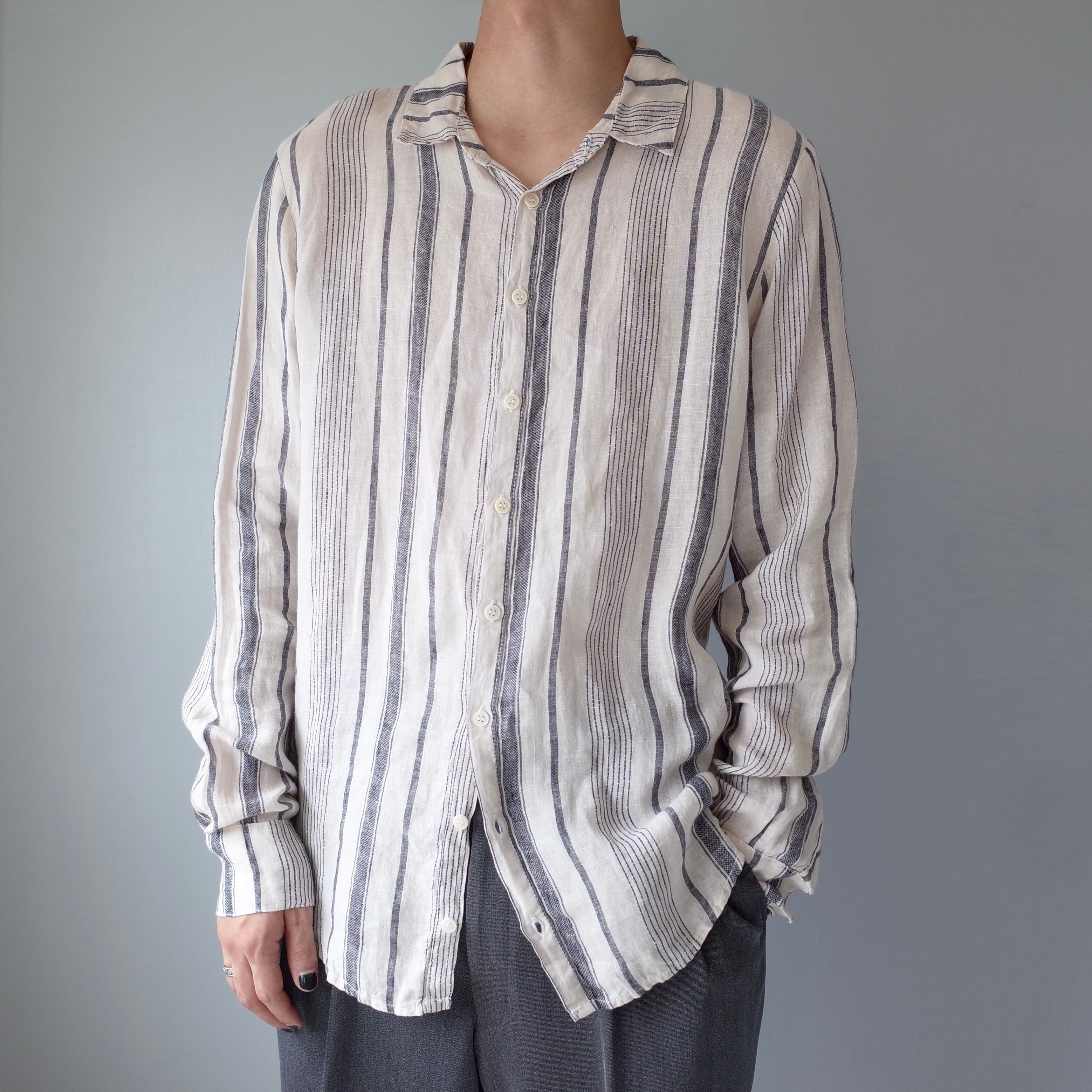 Made In USA Stripe Pattern Linen Fabric Shirt l/s