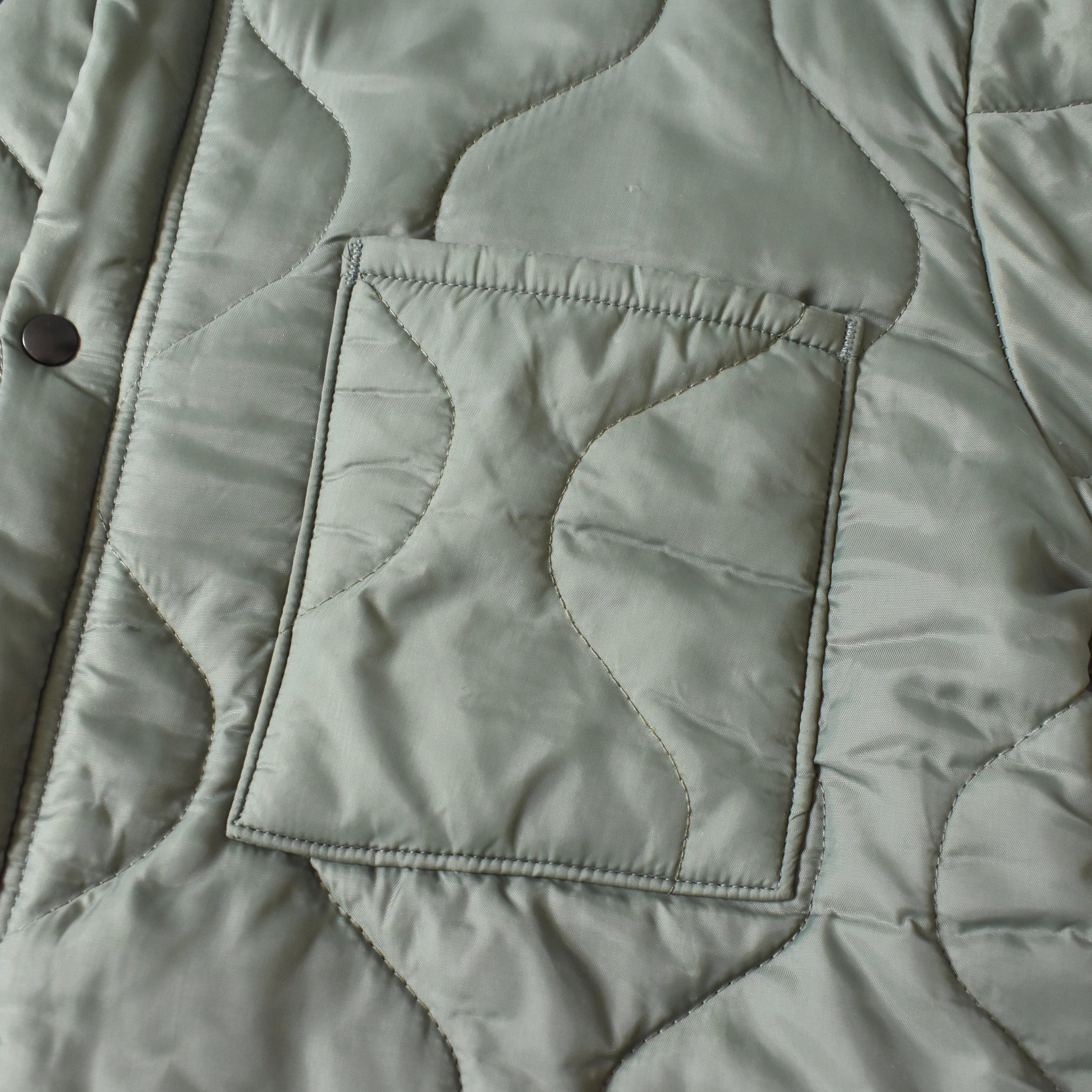 米国は空軍向けに1960年代から支給された"CWU-9P"。元々は"CWU-7P"のライナーとして開発された防寒性に優れたフライトジャケットであり、珍しいキルティングを採用した逸品です。ライナーでありながらも胸ポケットが付き、フロントはジップとスナップで開閉が可能です。アウターとして着用するにも過不足ないデザインで、何より
