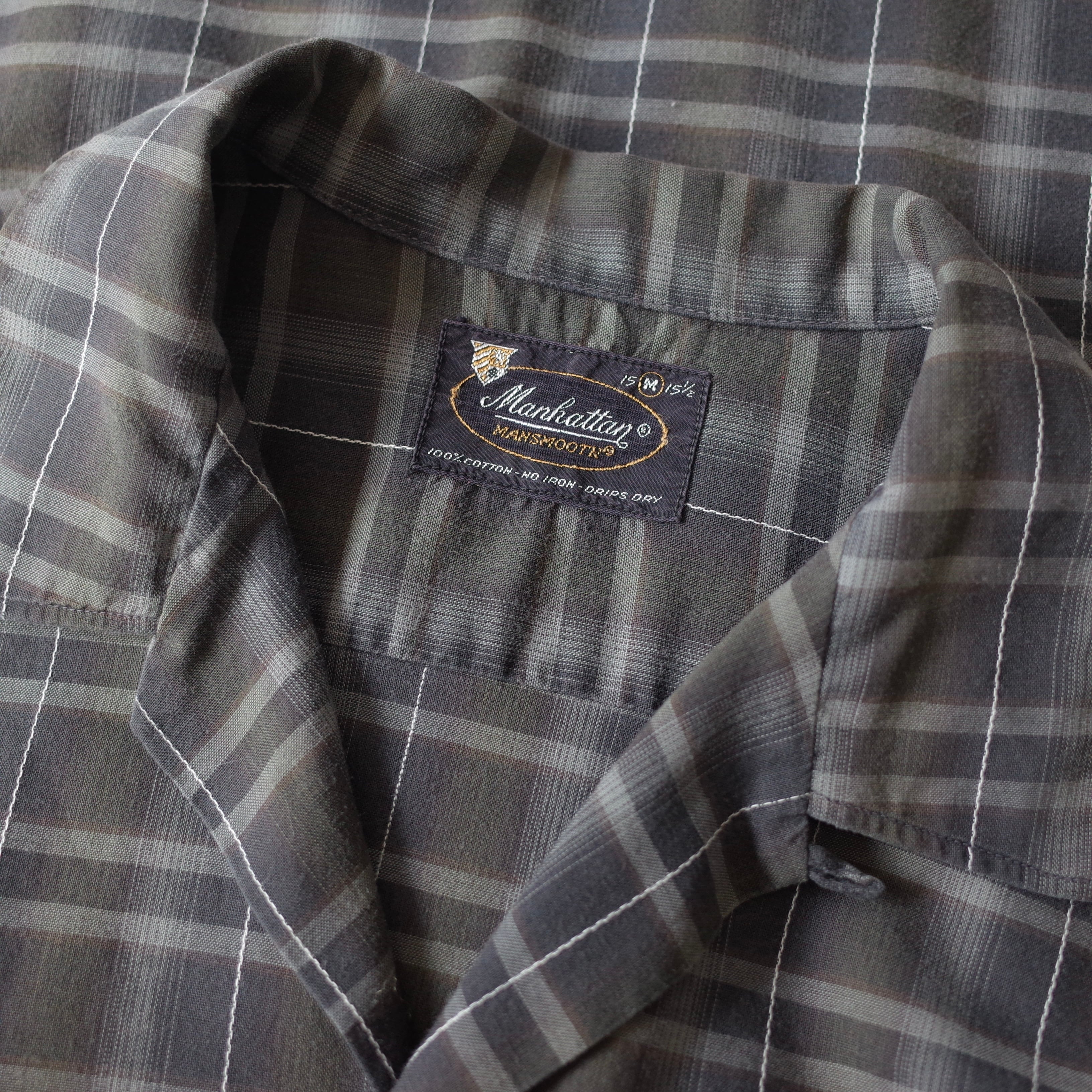 1960年代頃の"Manhattan"が製造するコットン素材の開襟シャツ。グレーを基調として薄らオリーブグリーンが混ざる奥行のあるチェック柄。大人な配色です。