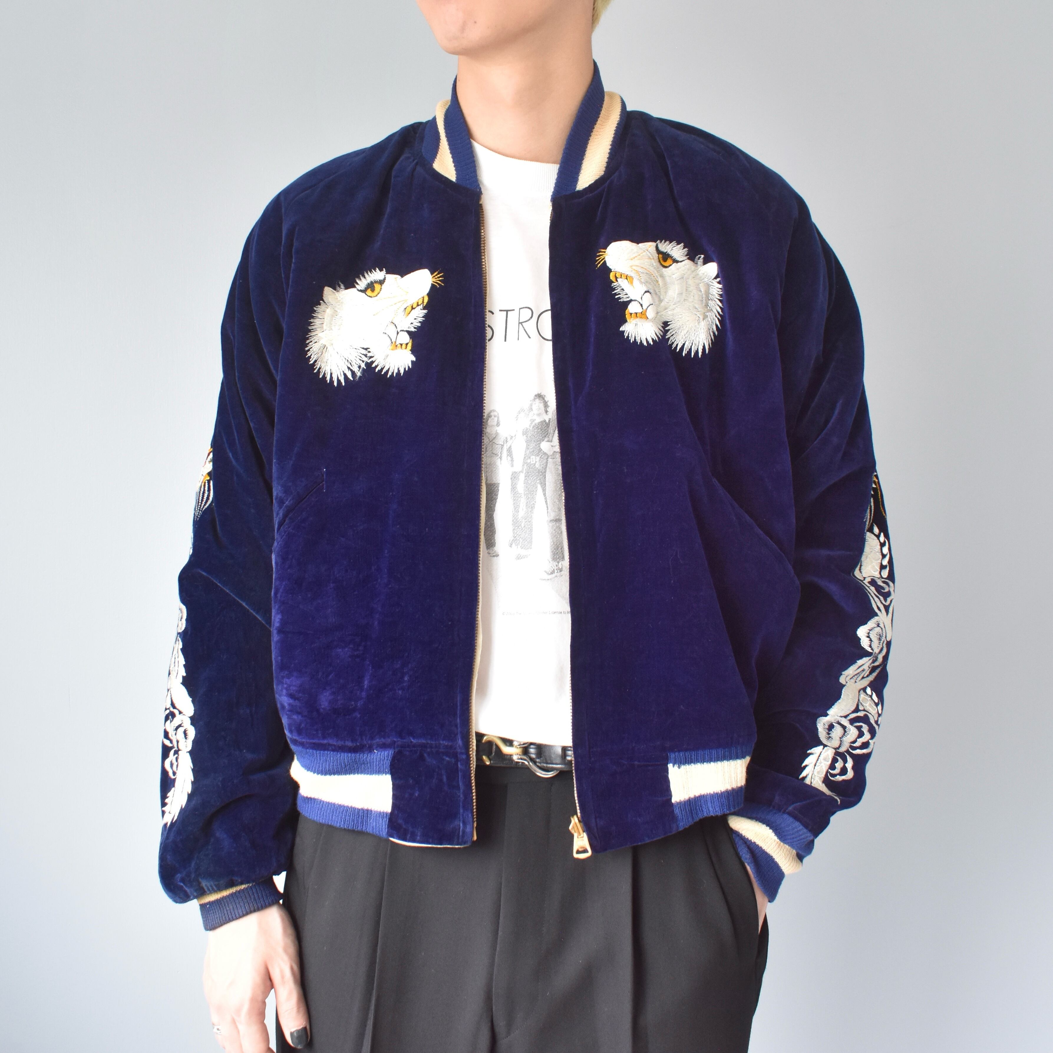 【VINTAGE】 『虎×地図・三重塔』50's~ Reversible Design Souvenir Jacket 別珍