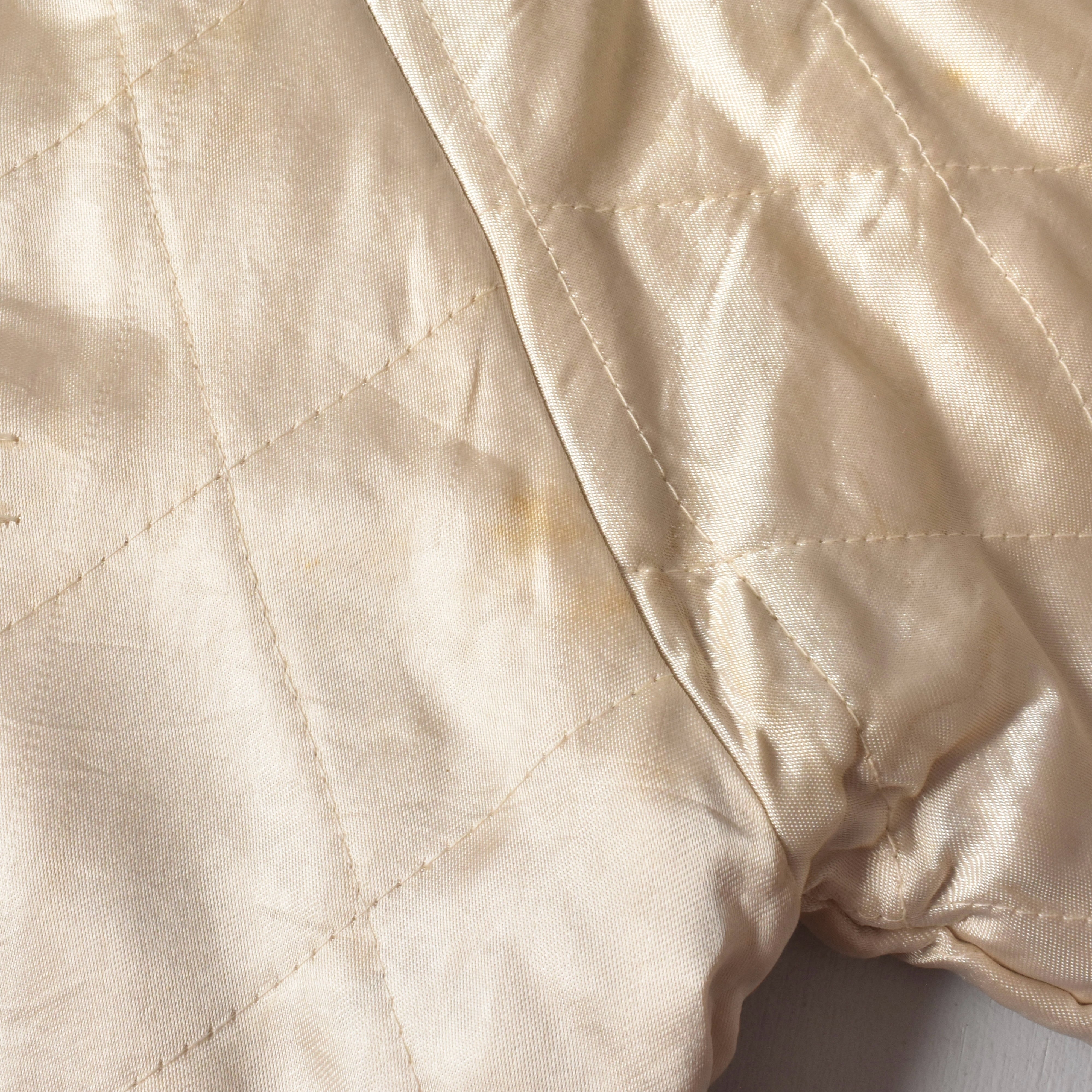 CONDITION B (使用感、襟リブ小穴、袖多少の黄ばみ、サテン側複数シミ)