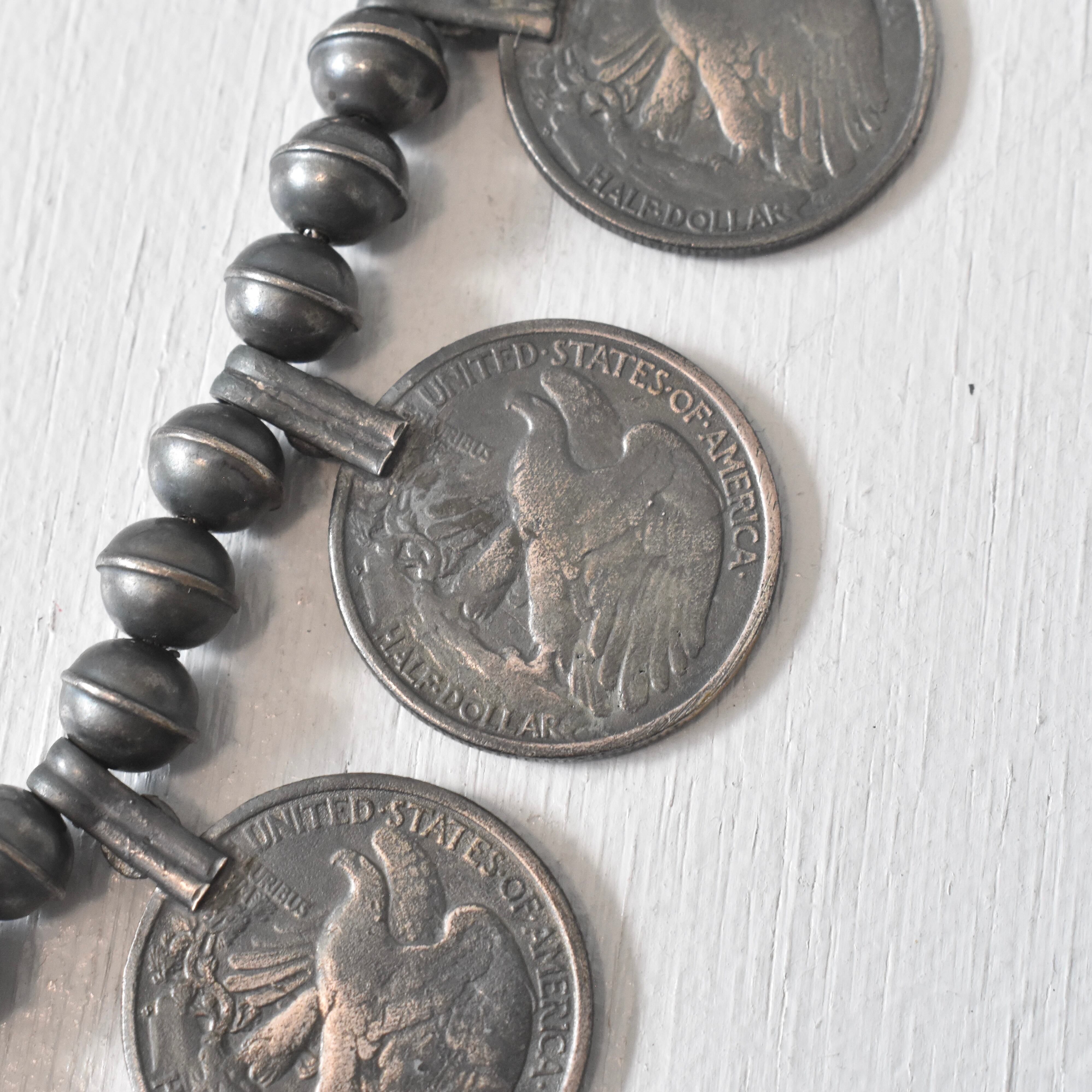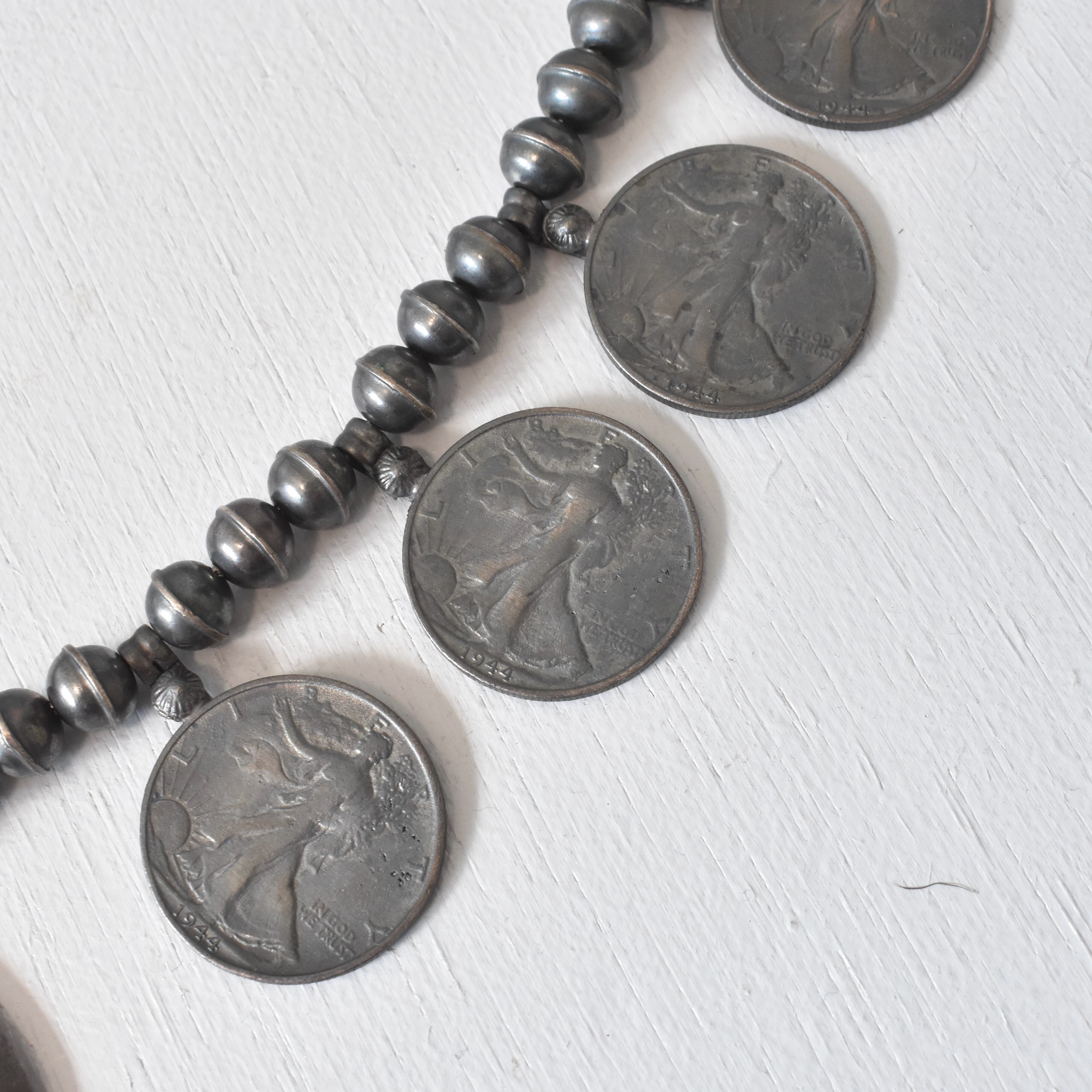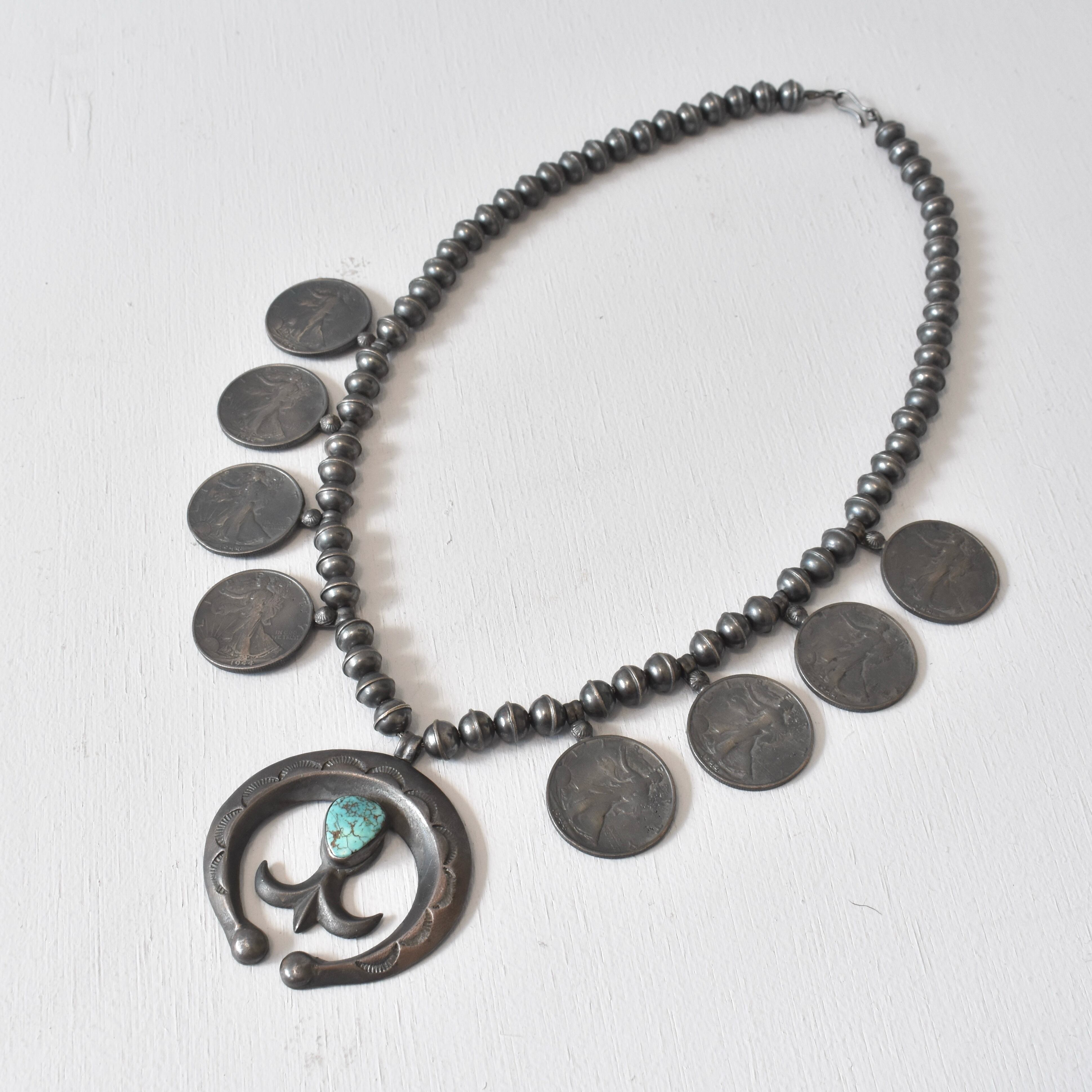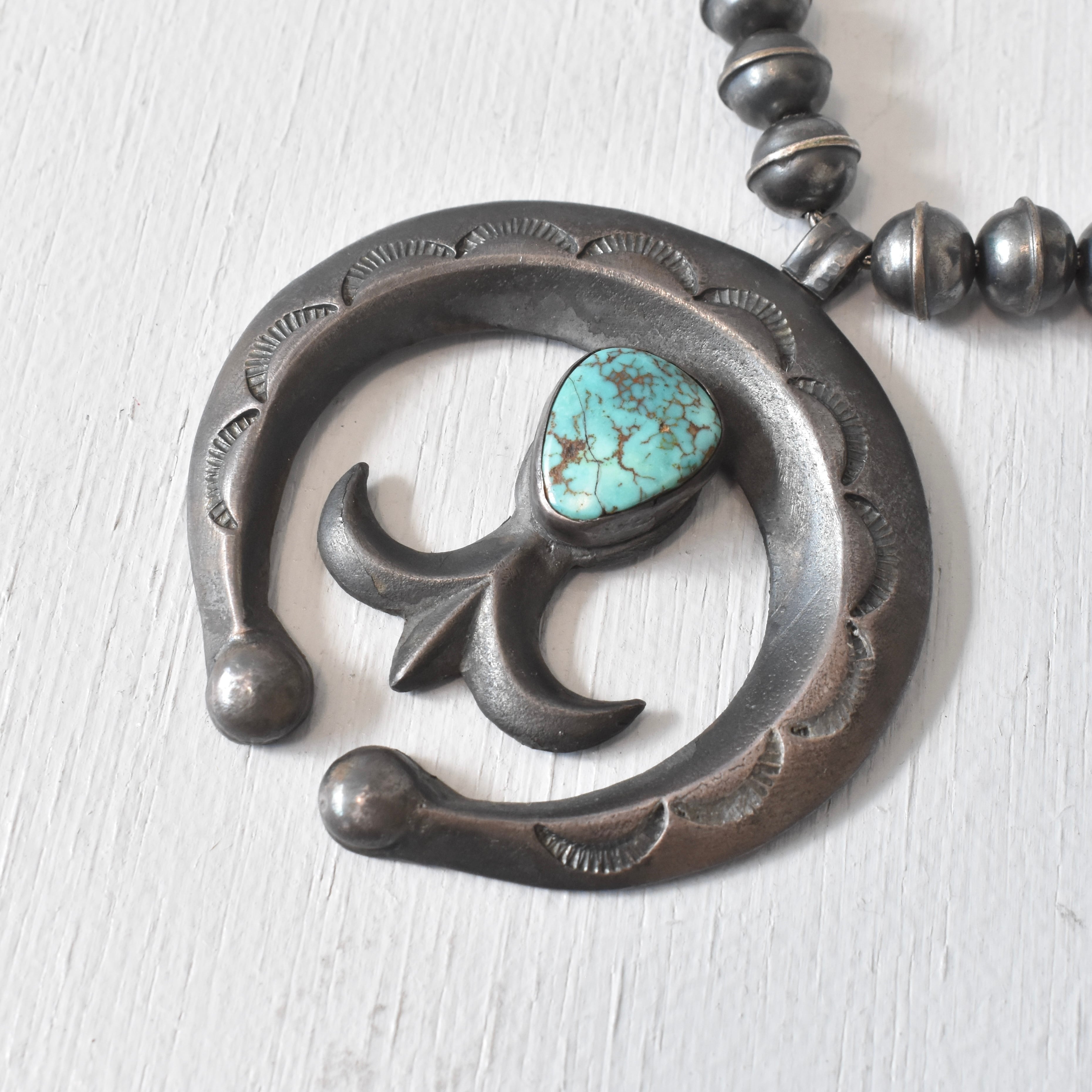 【VINTAGE】『SQUASH BLOSSOM』 40’s~50's Genuine Turquoise Design Necklace STERLING SILVER