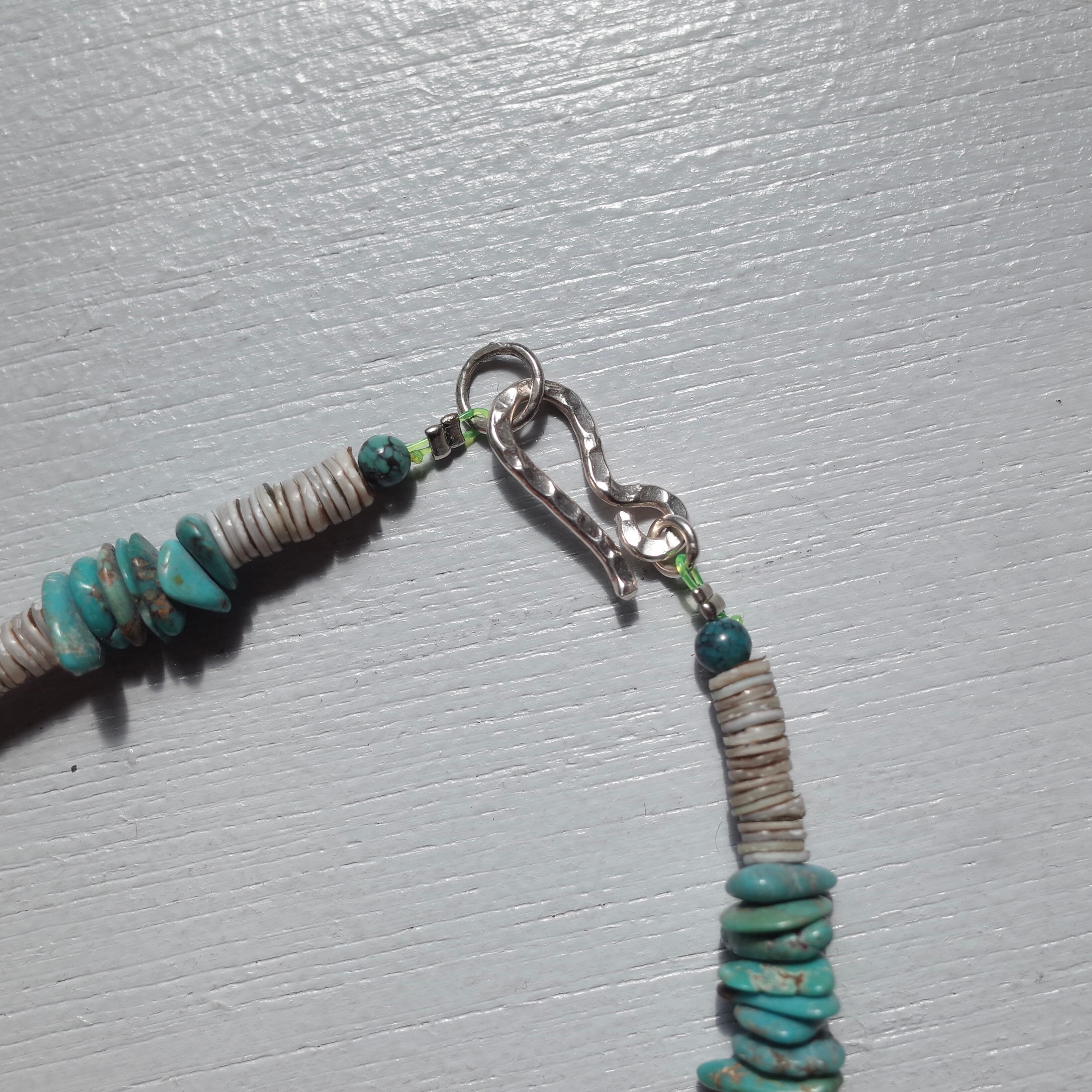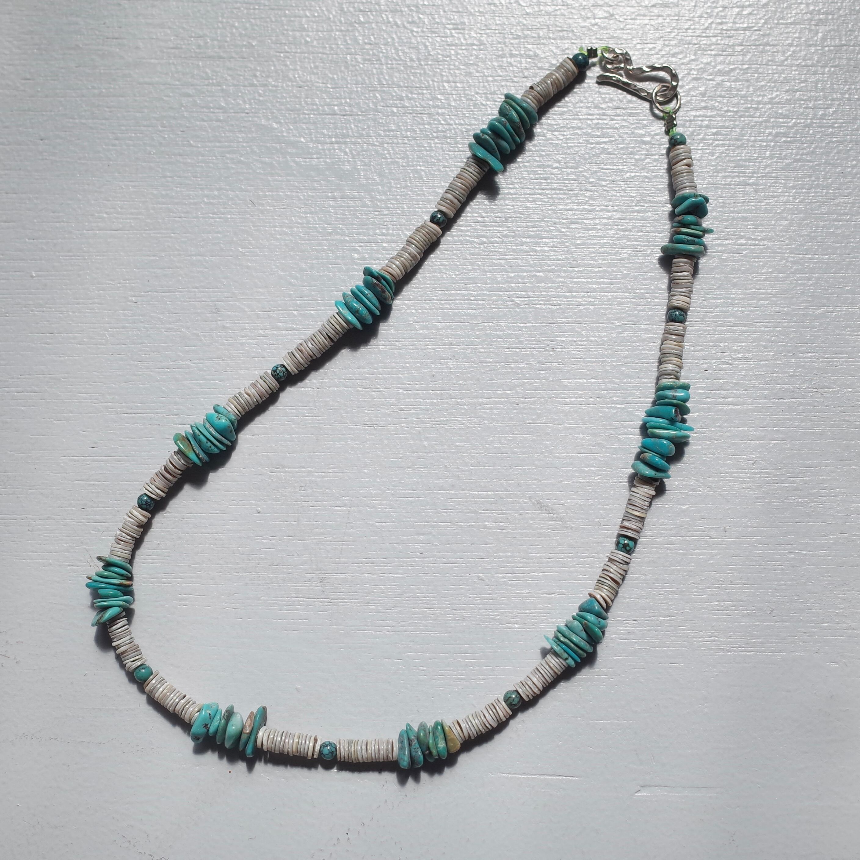 シェルビーズが組み合わさったネックレス。緩急のついた
