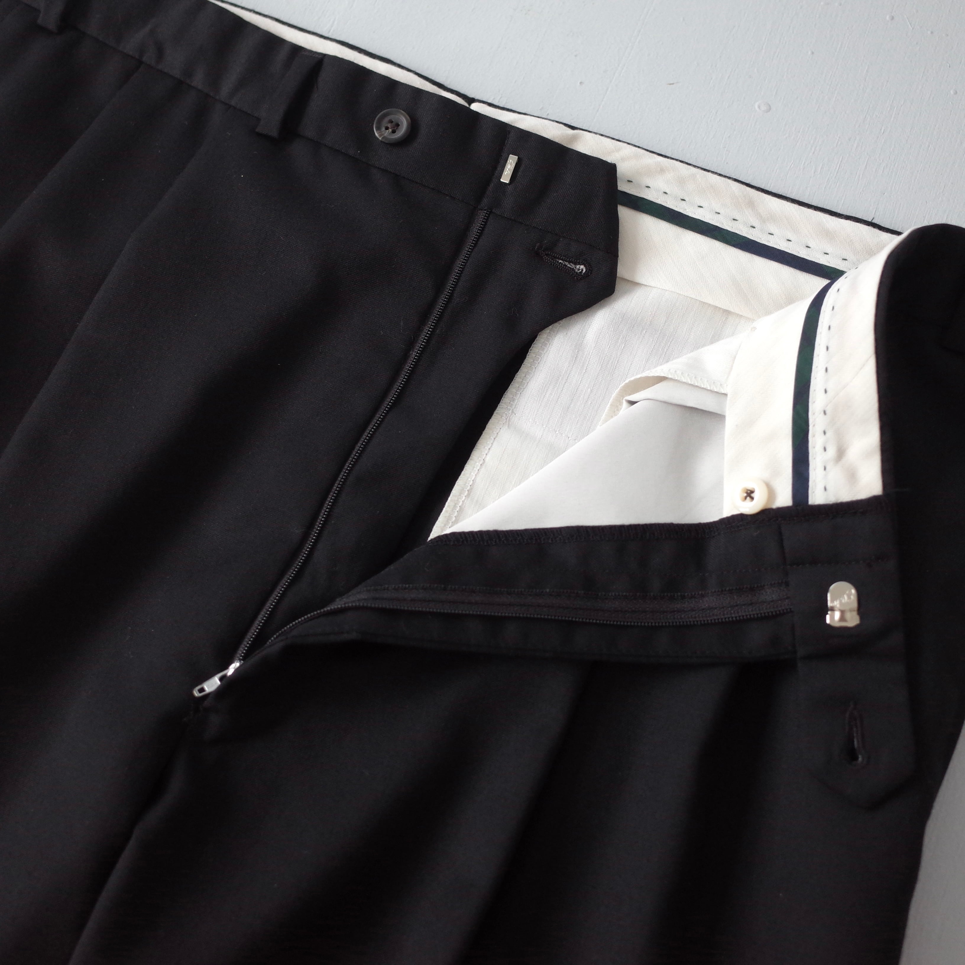 SIZE 不明、ウエスト 91cm、股上 33cm、股下 76.5cm、わたり幅 38.5cm、総丈 106cm