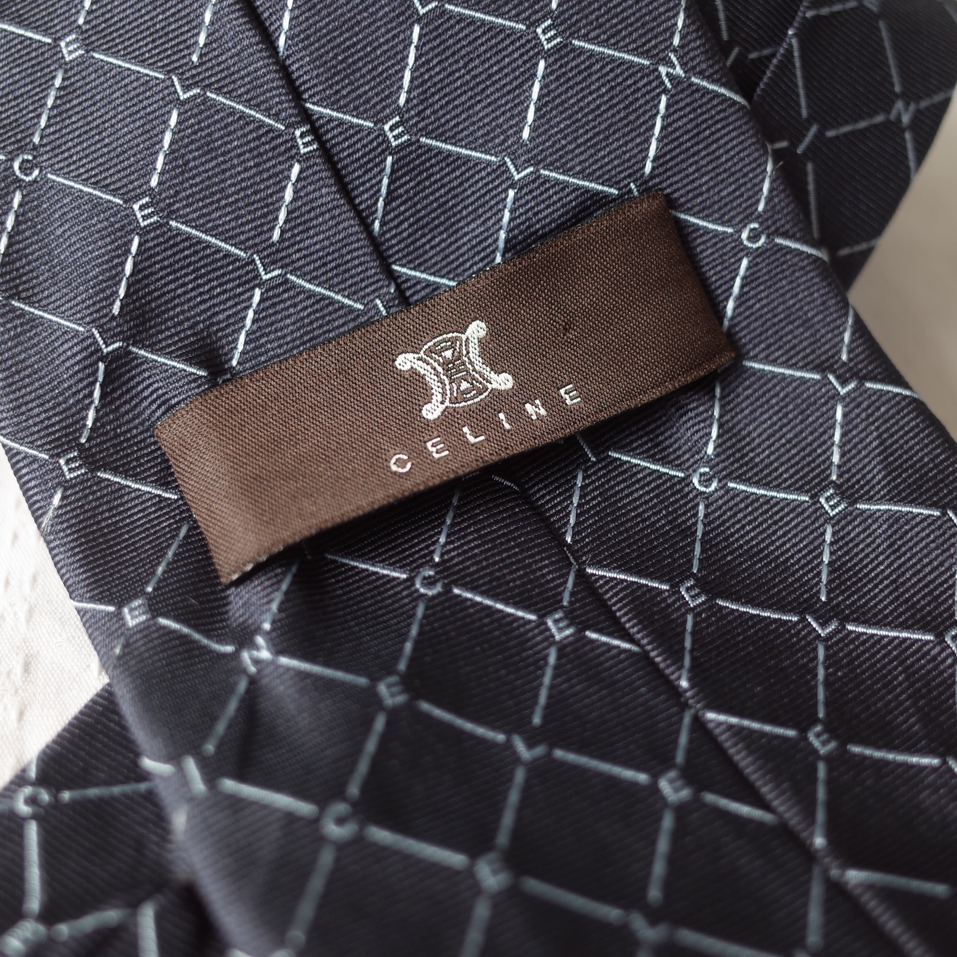 “CELINE” Made In Italy Check Patterned Silk Tie