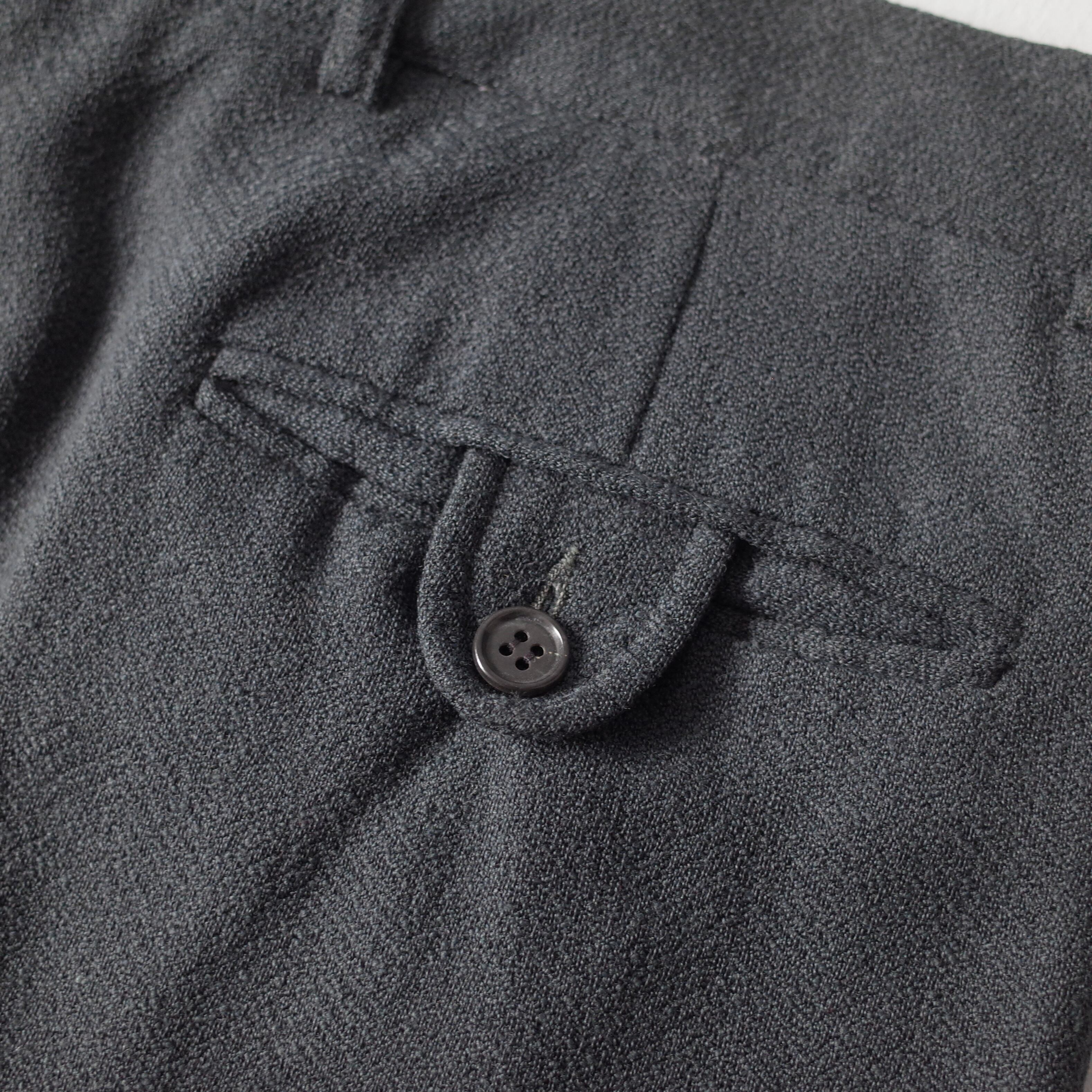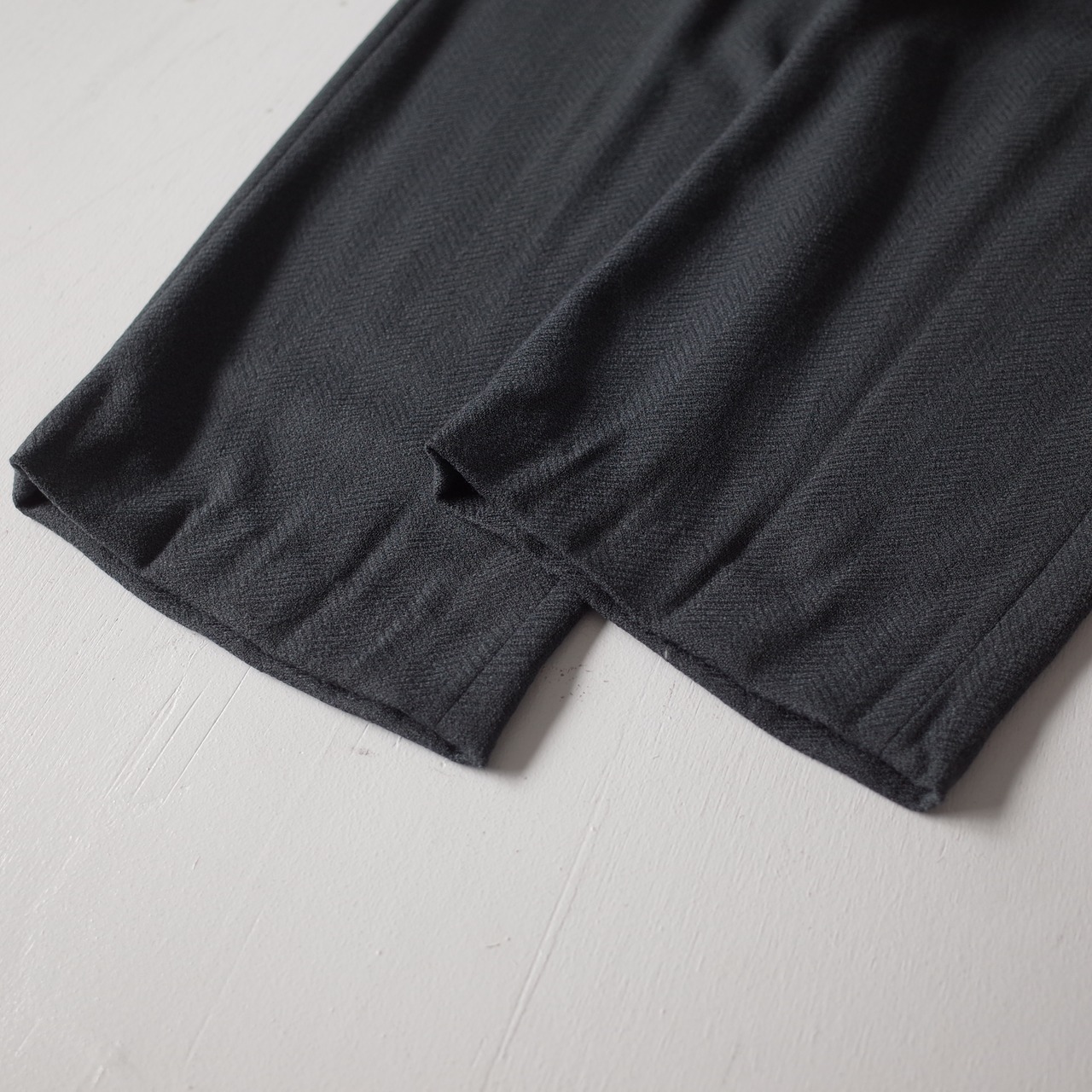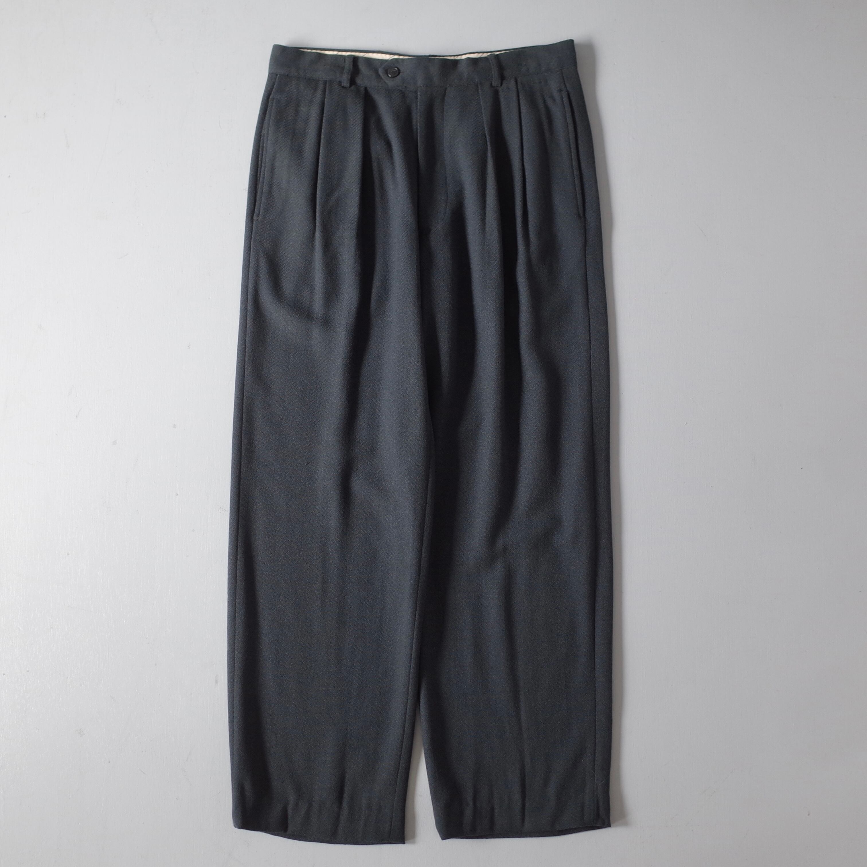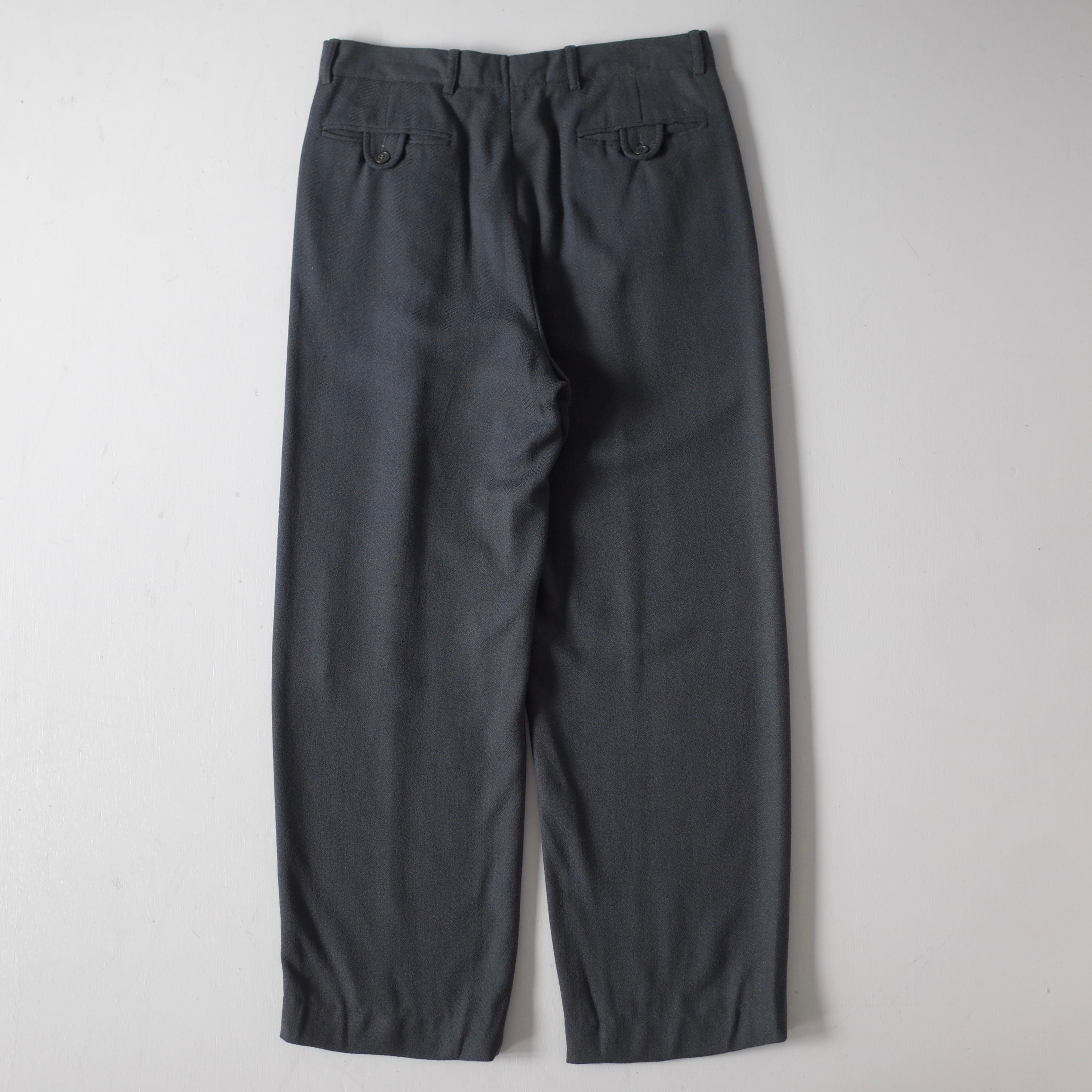 Made In ITALYの"EMPORIO ARMANI"より、ぼんやりヘリンボーン柄が浮かび上がる織柄タックトラウザーズ。
