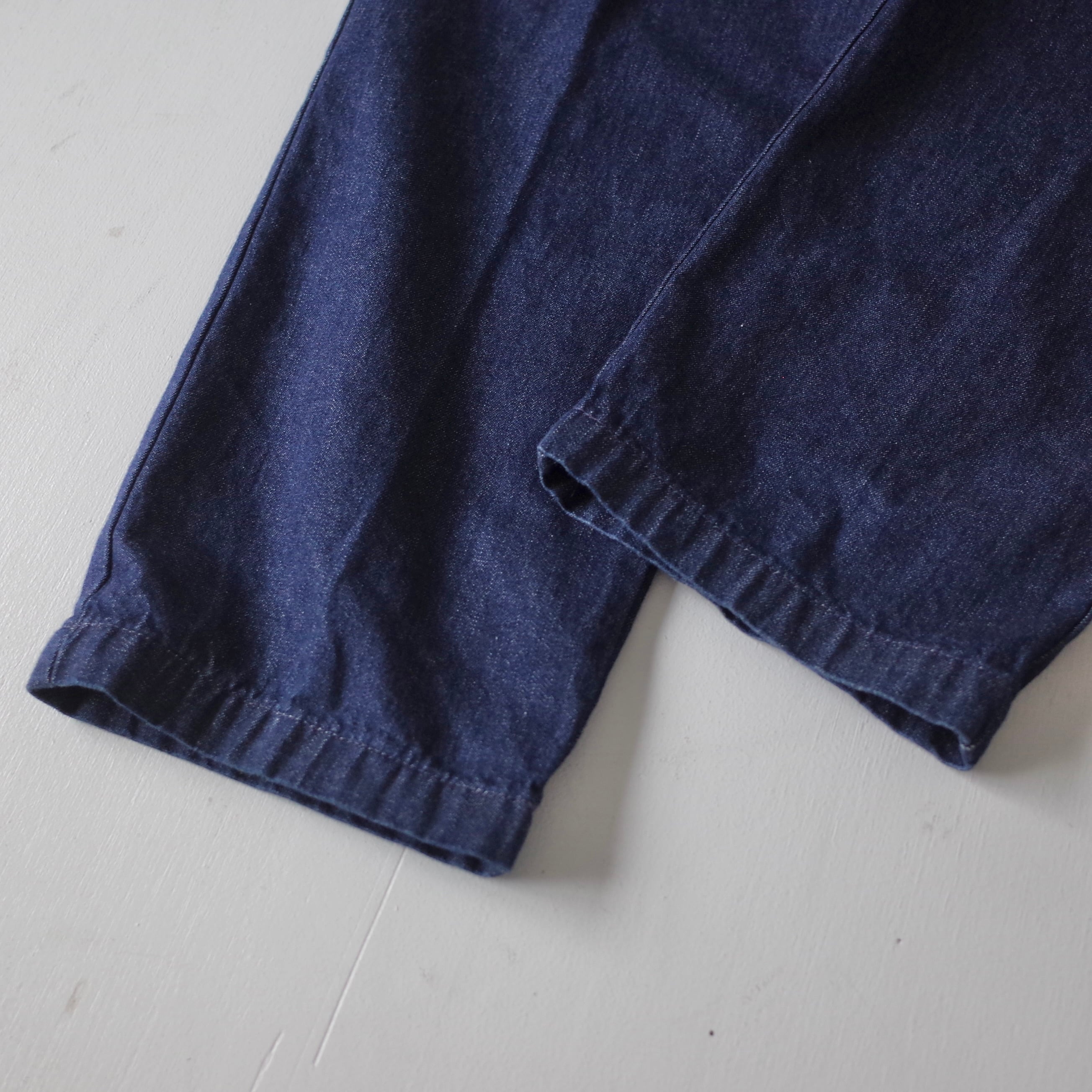 タグ付未使用のデニムトラウザーズ。濃紺カラーのワイド
