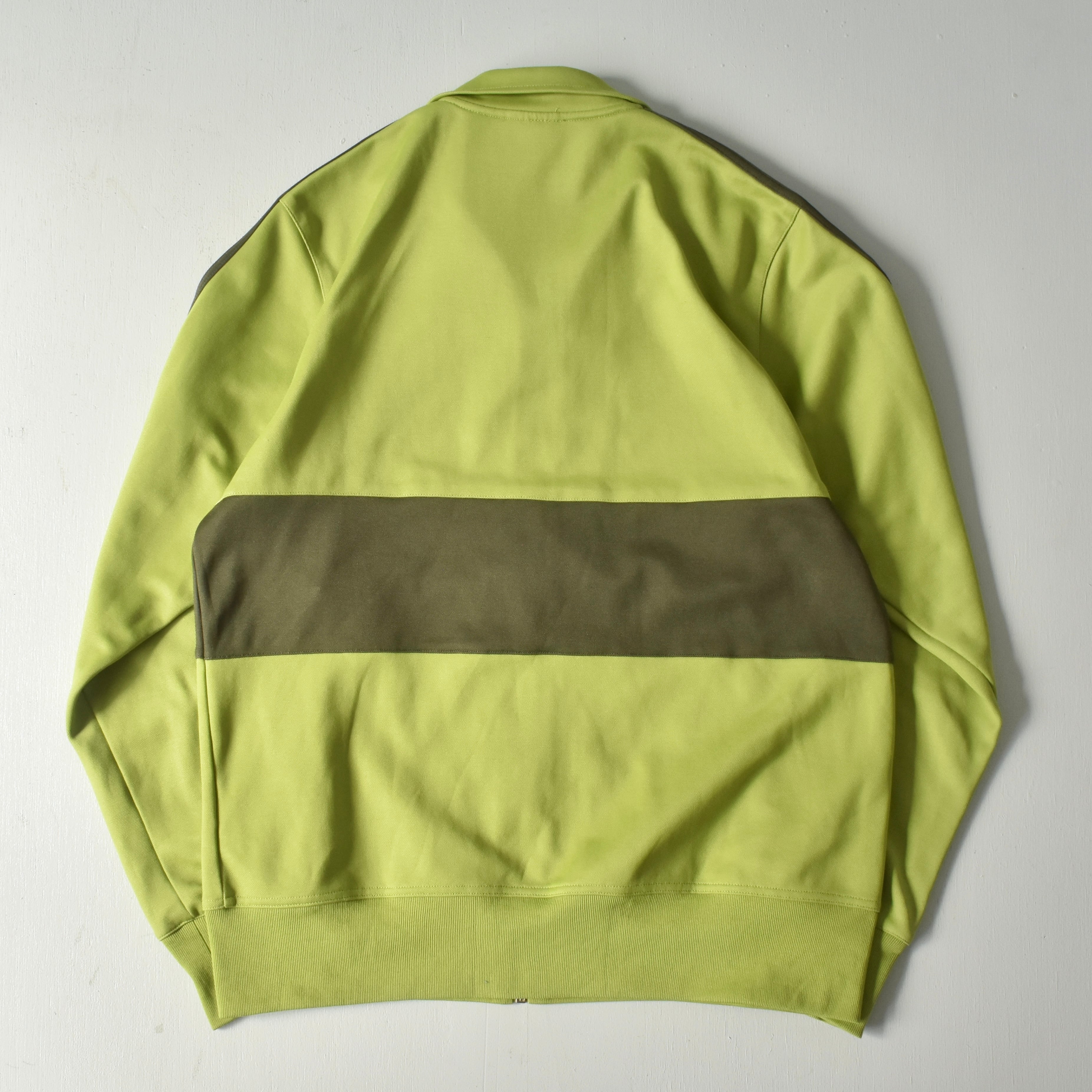 パフォーマンスロゴが胸元にデザインされた“adidas”のトラックジャケット。ピスタチオカラーの珍しいボディにブラウンを掛け合わせたマカロンの様な洋菓子を想起する甘めな一枚。