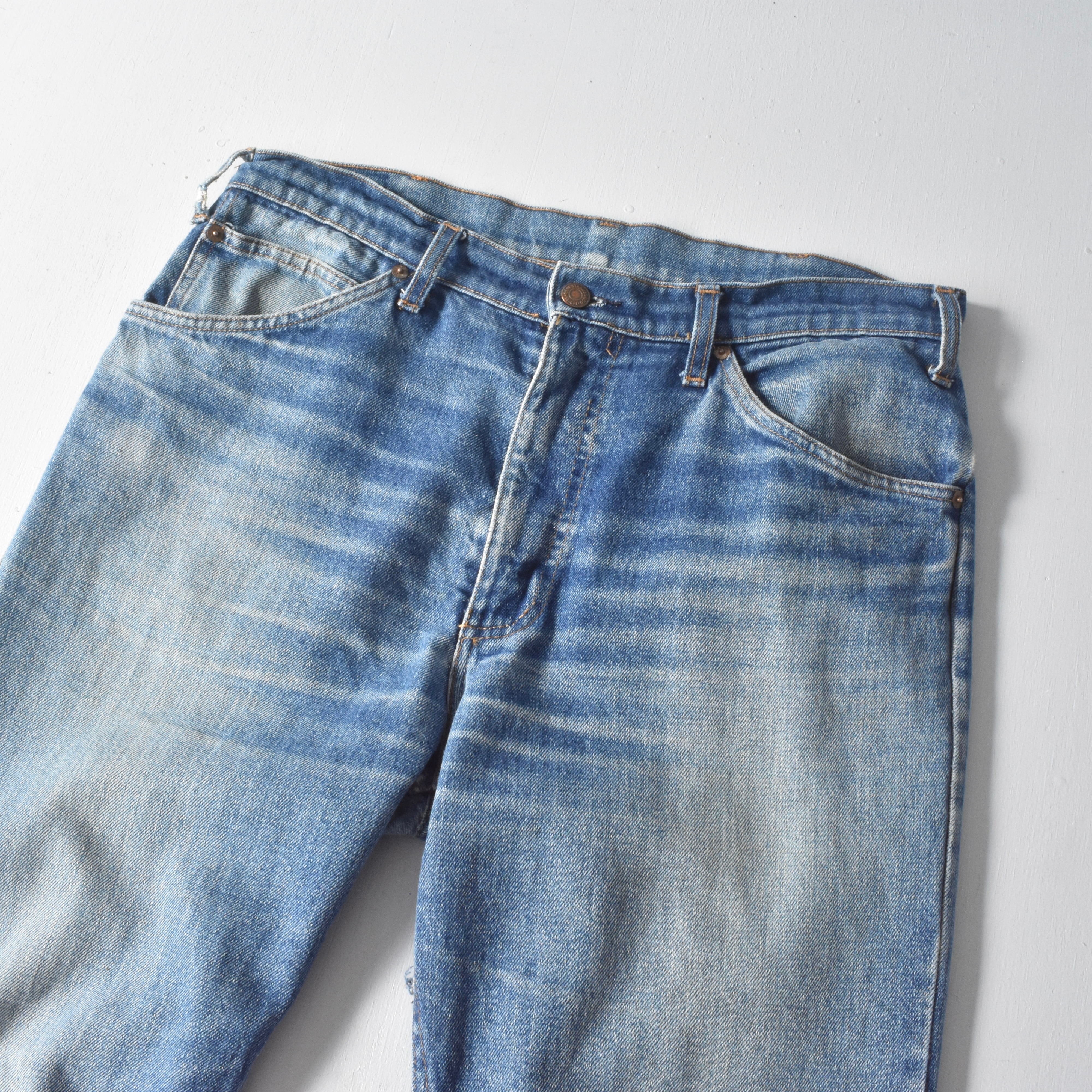 経年変化が素晴らしく、美しい"Levi's"はオレンジタブのデニムパンツ。妖艶な表情をしている一本で、フロントジップが “OLD LOEWE”や“スペイン軍”で稀に見かける“AREITIO”というジップへ交換した個体で、縦落ちとヒゲに否が応でも惹かれてしまいます。是非。