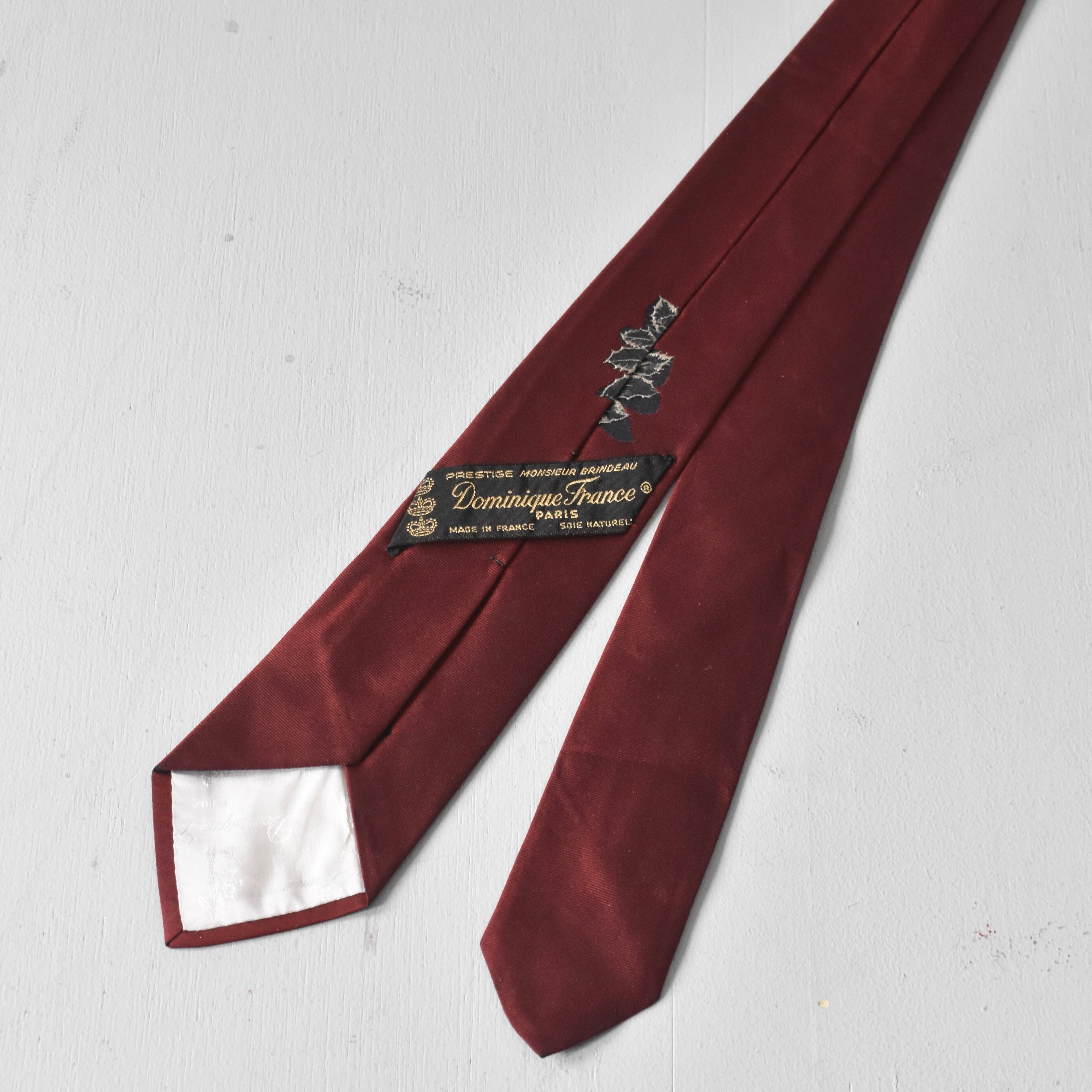 【VINTAGE】 “Dominique France” 70’s~80’s Made In France Leaves Pattern Silk Tie