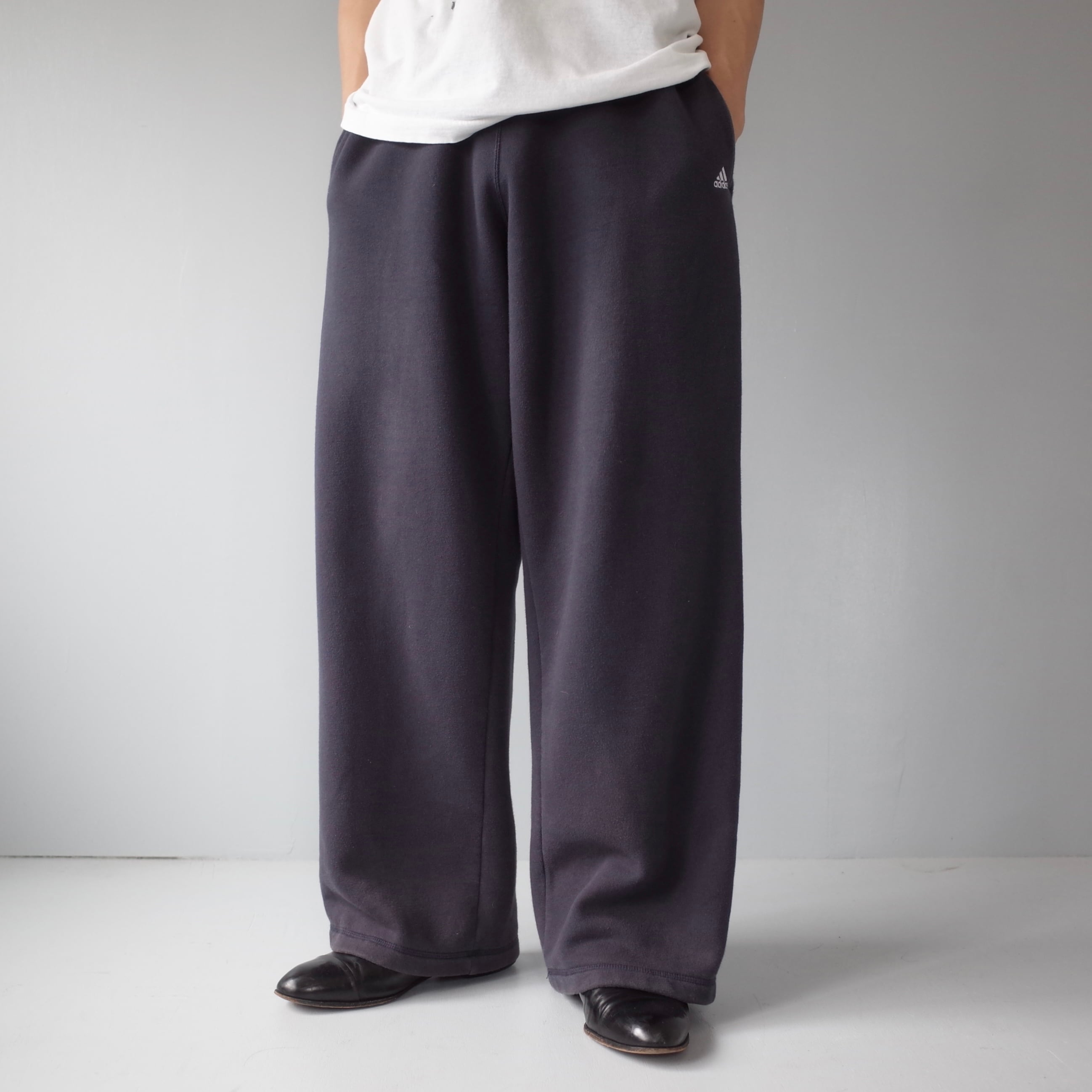 "adidas"の極太シルエットのスウェットパンツ。裾リブ無し、真っ直ぐ落ちる素直なシルエットに刺繍ロゴのみの無駄な装飾のないデザイン。スポーティなヴィジュアルに何より楽で履き心地良いトラックパンツ。お勧めです。
