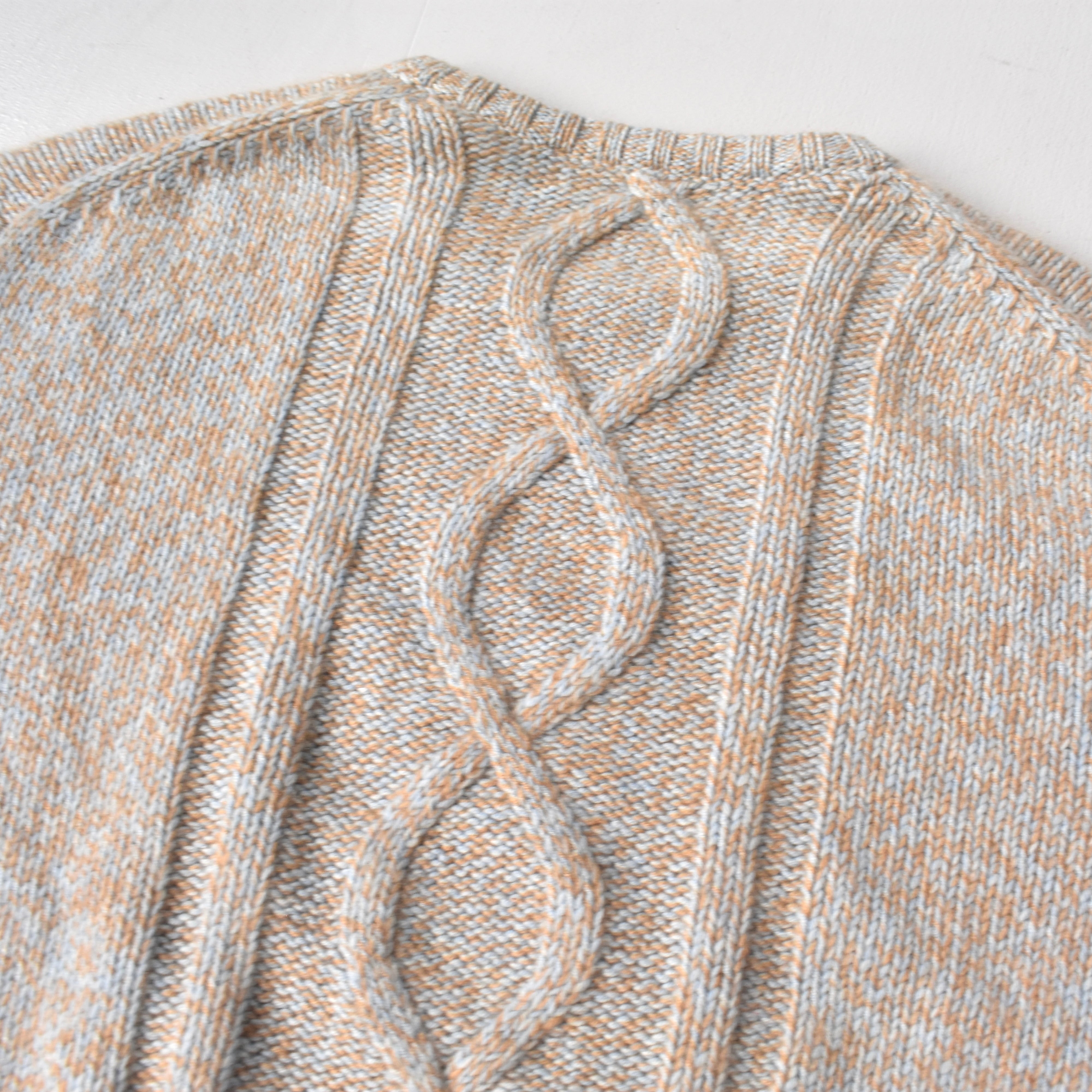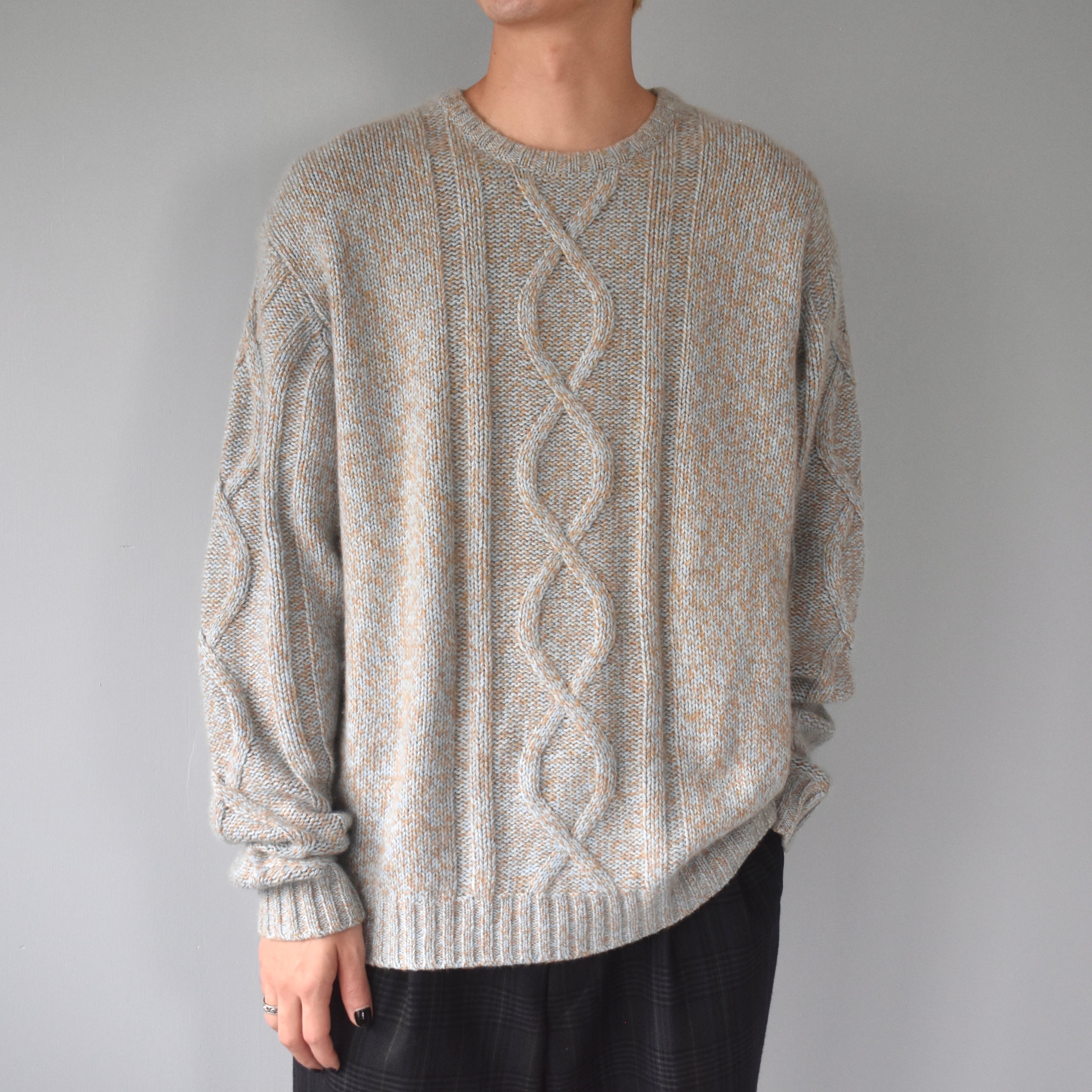 Cashmere Fabric Aran Pattern Merange Knit Sweater l/s
