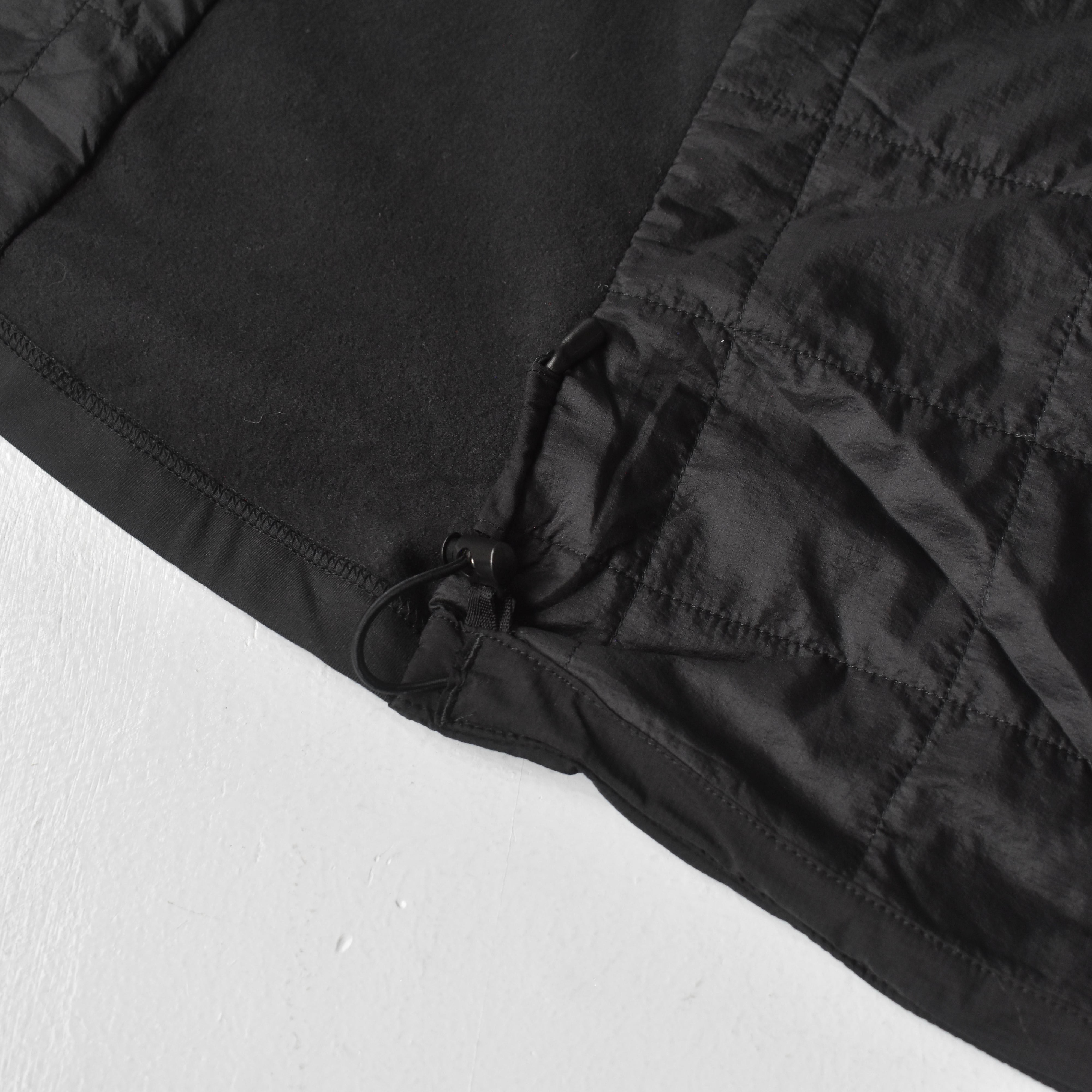 高い保温性・通気性・透湿性を持ち、ダウンを超える機能性を発揮する1着。オールブラックのカラーリングも優秀で、右胸の米企業の刺繍ロゴも惹かれるポイントです。