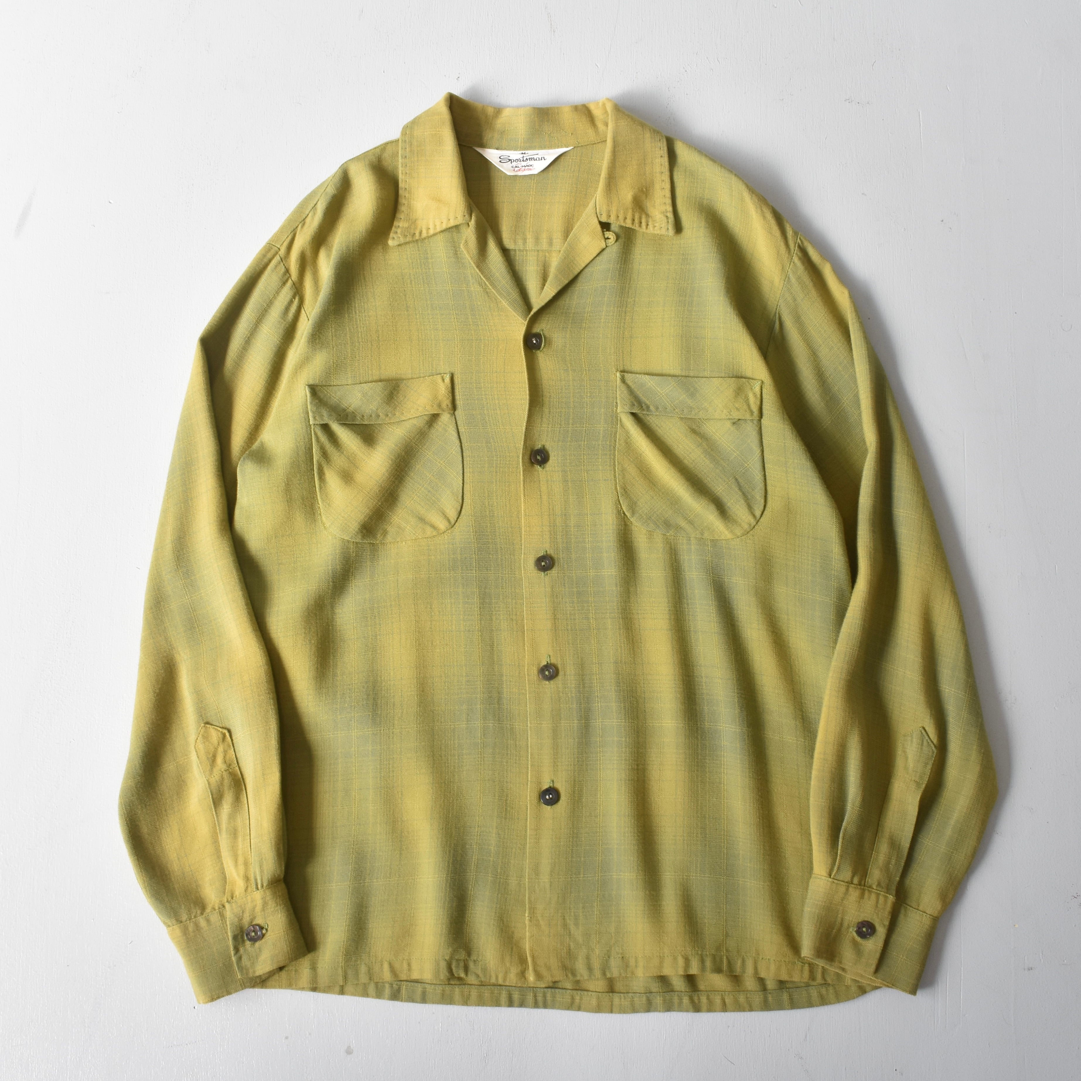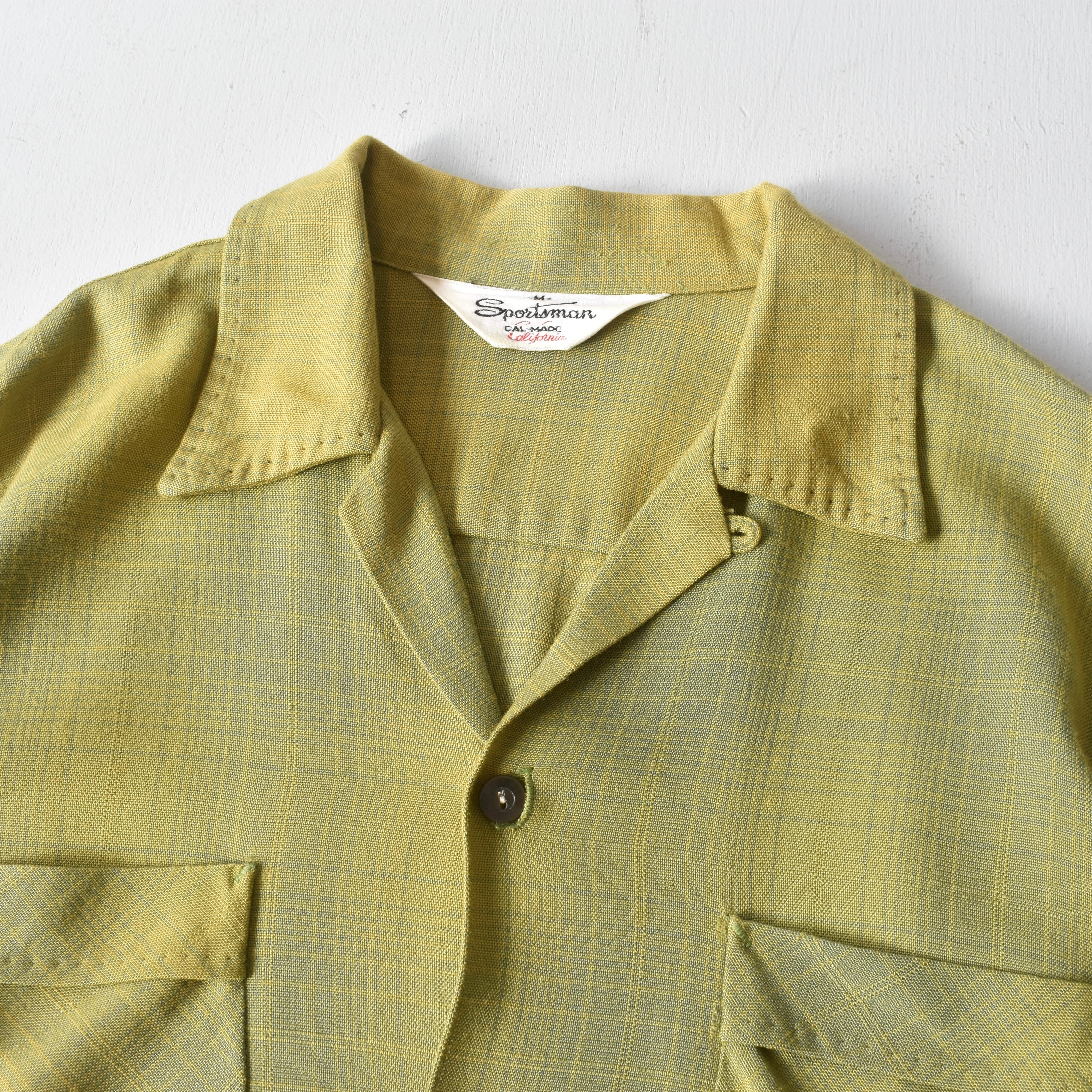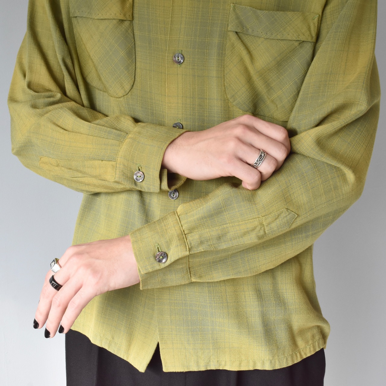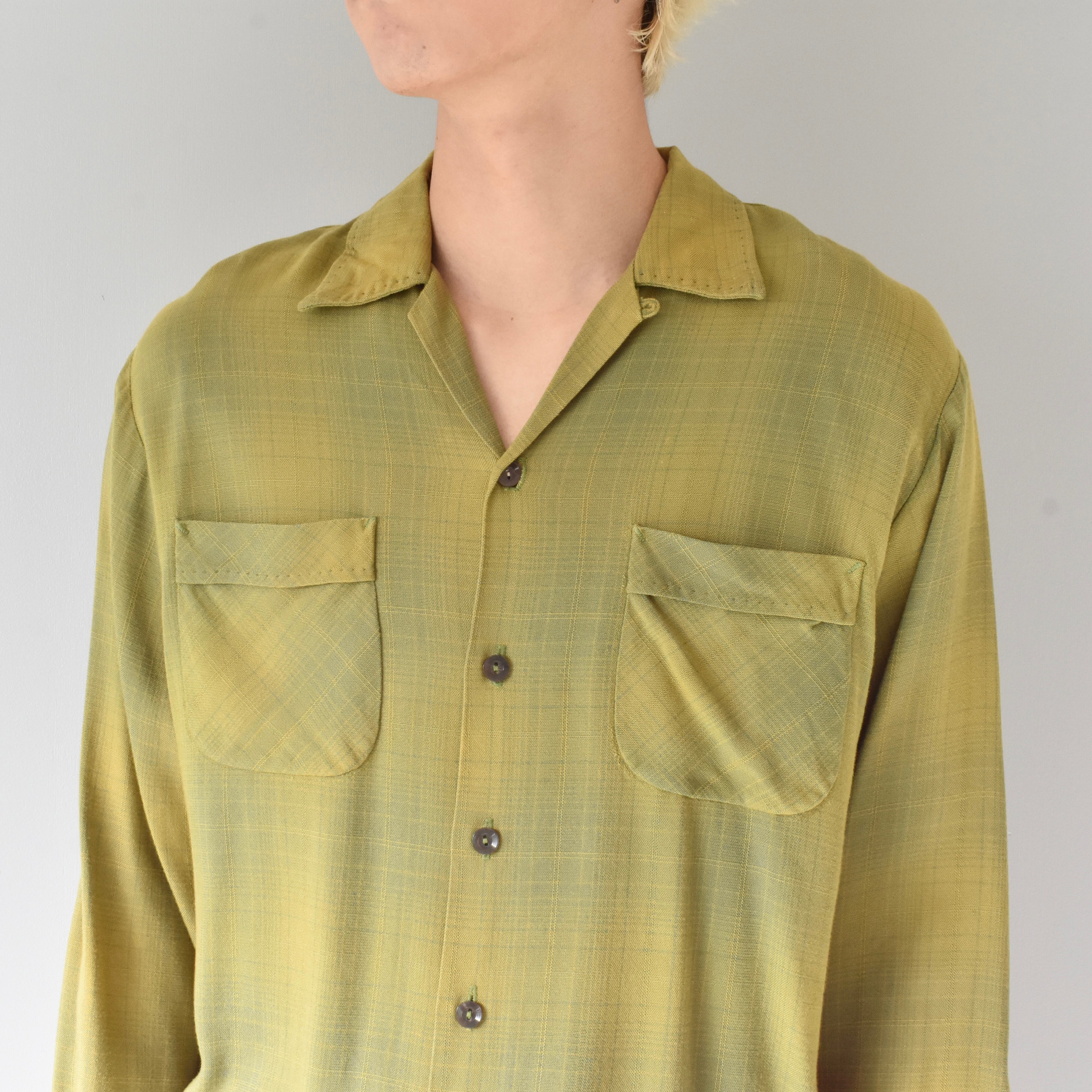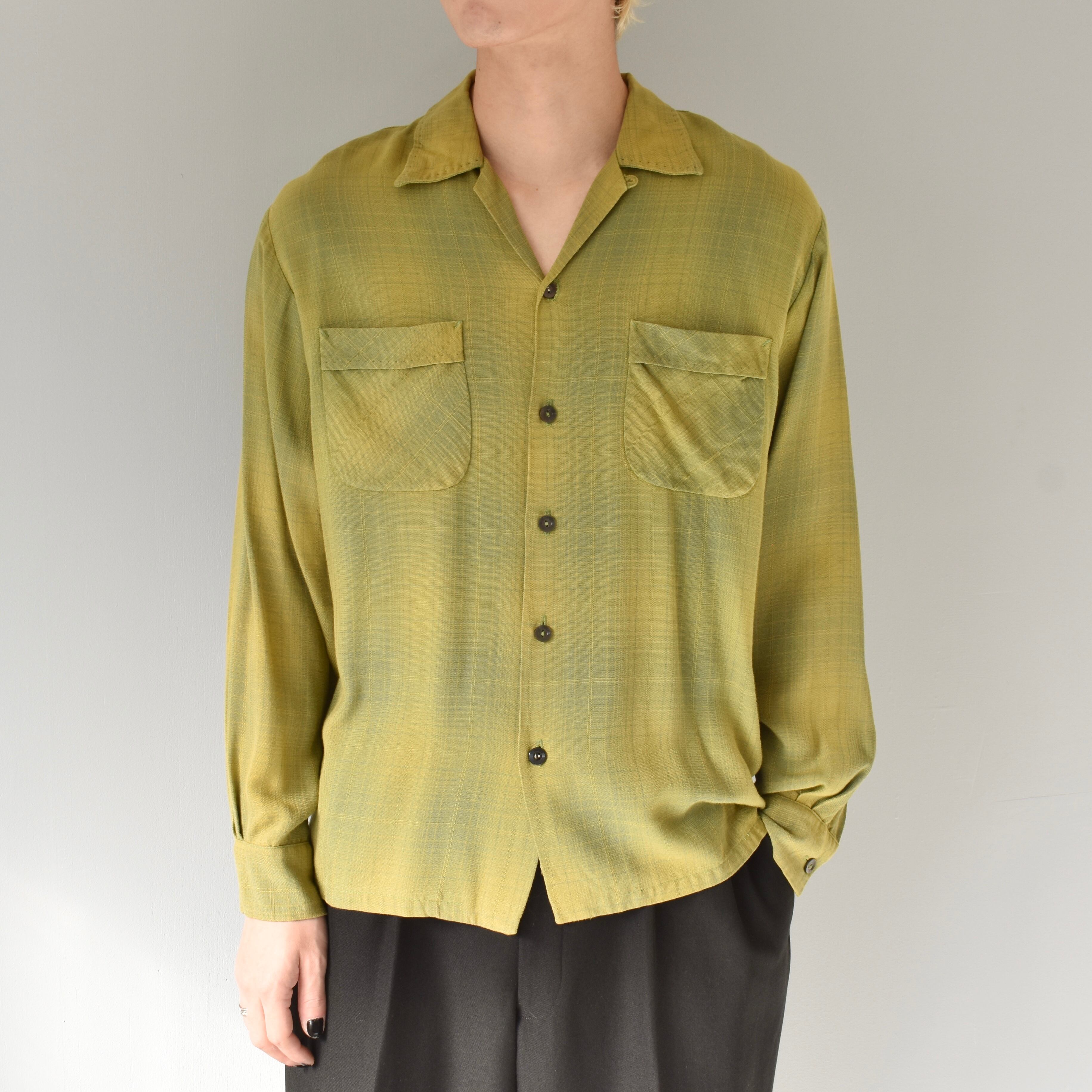 【VINTAGE】 “Sportsman” 60’s~ Ombre Check Patterned Rayon Shirt l/s
