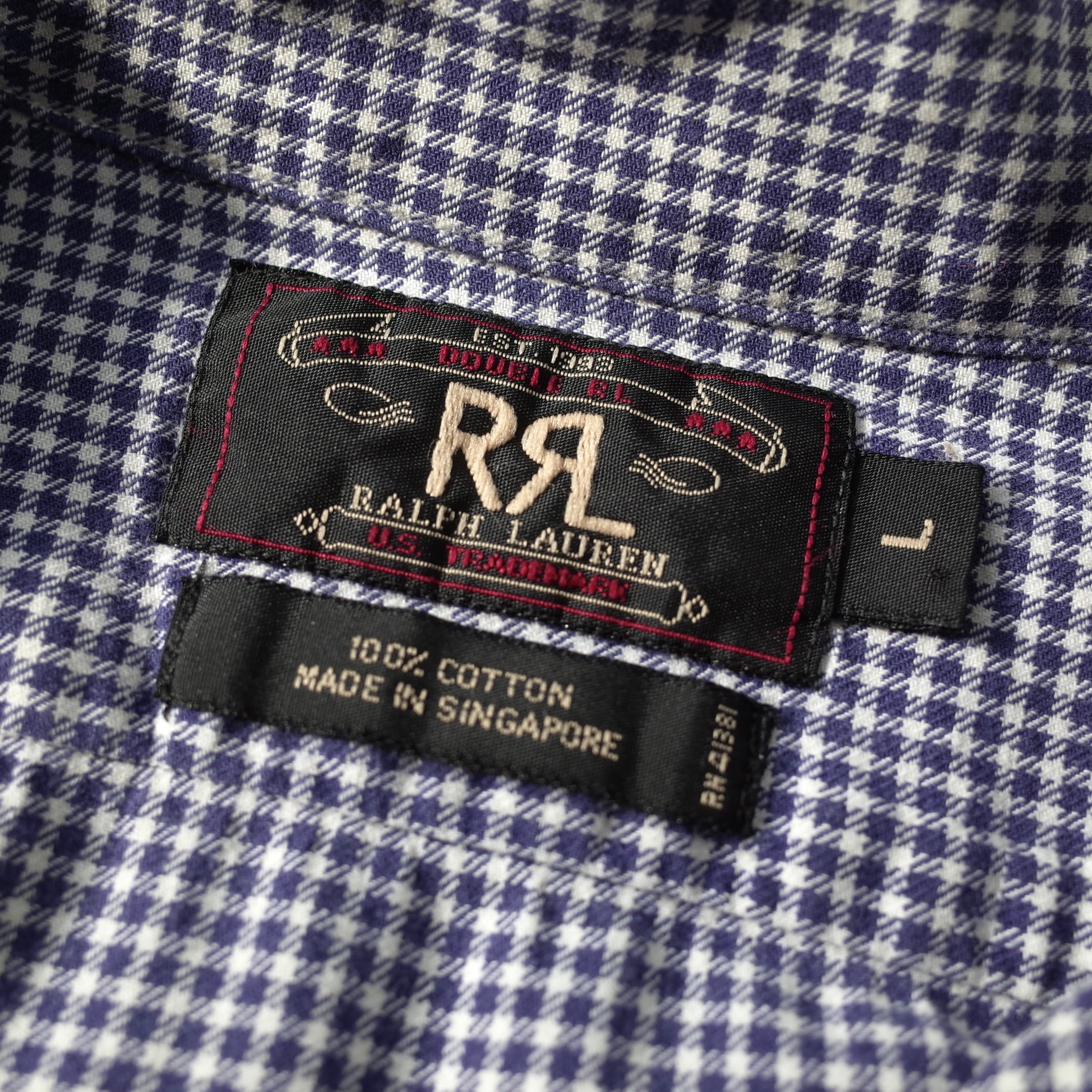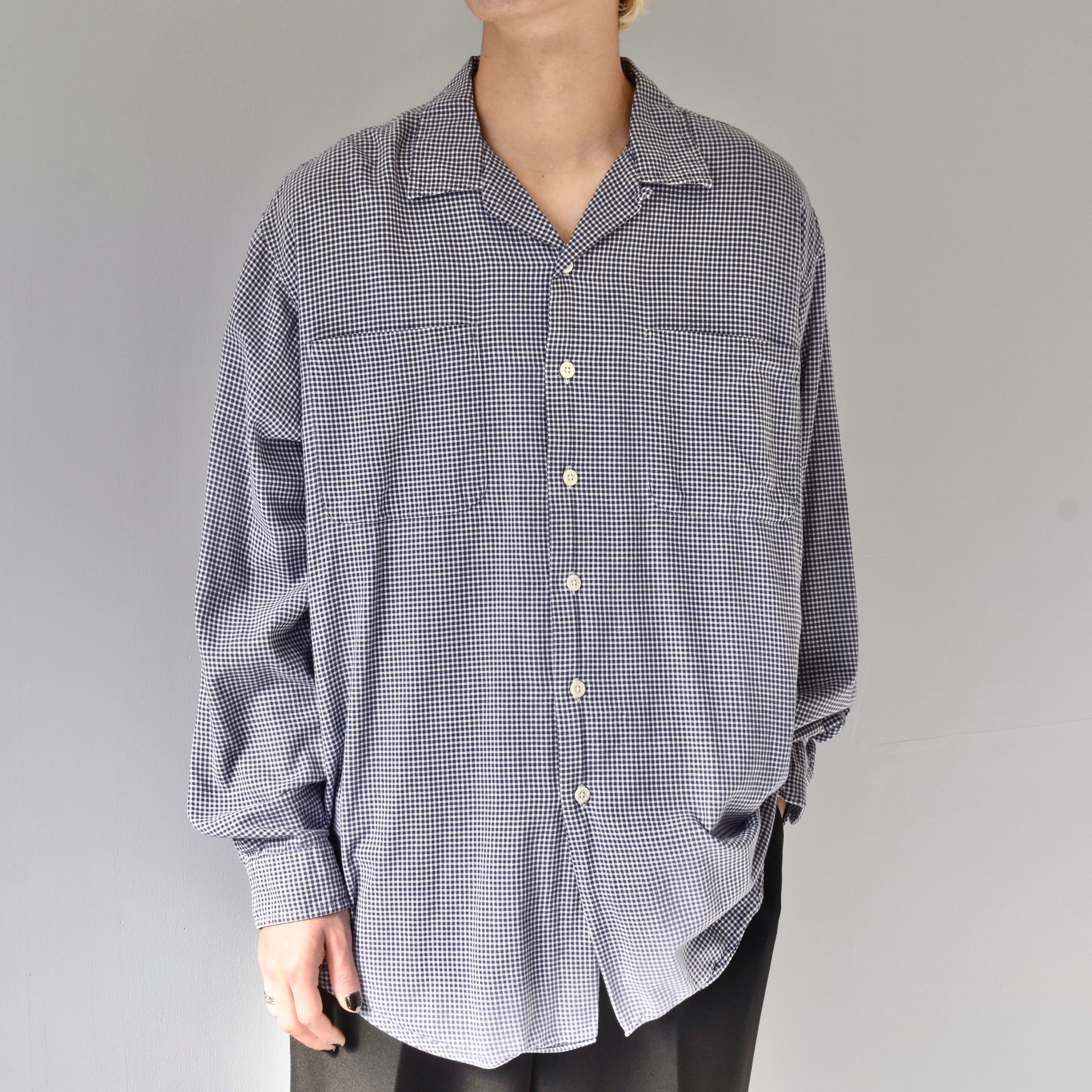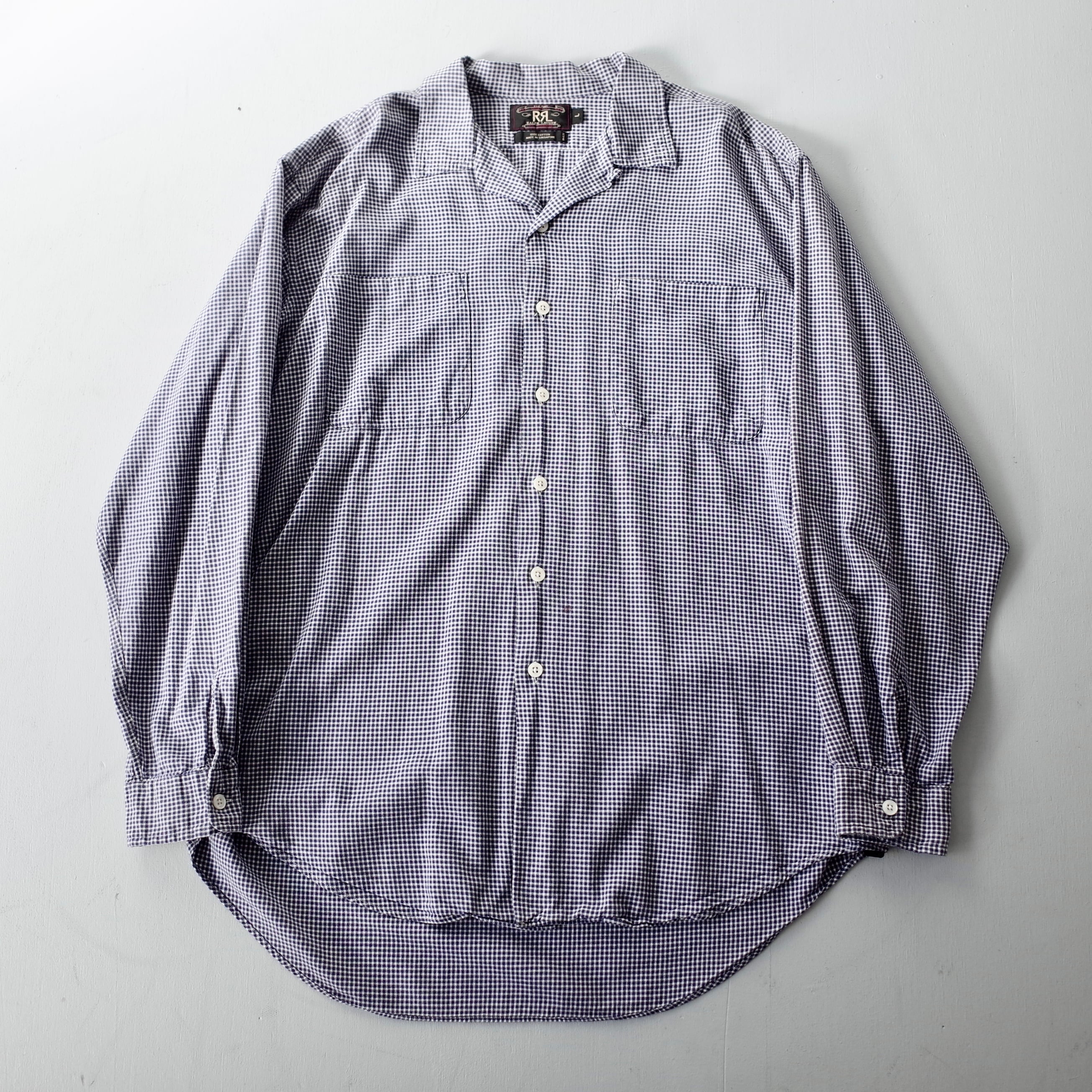 “RRL by Ralph Lauren” 『三ツ星タグ』 Gingham Checked Open Collar Shirt l/s | FINCH vintage and archive store