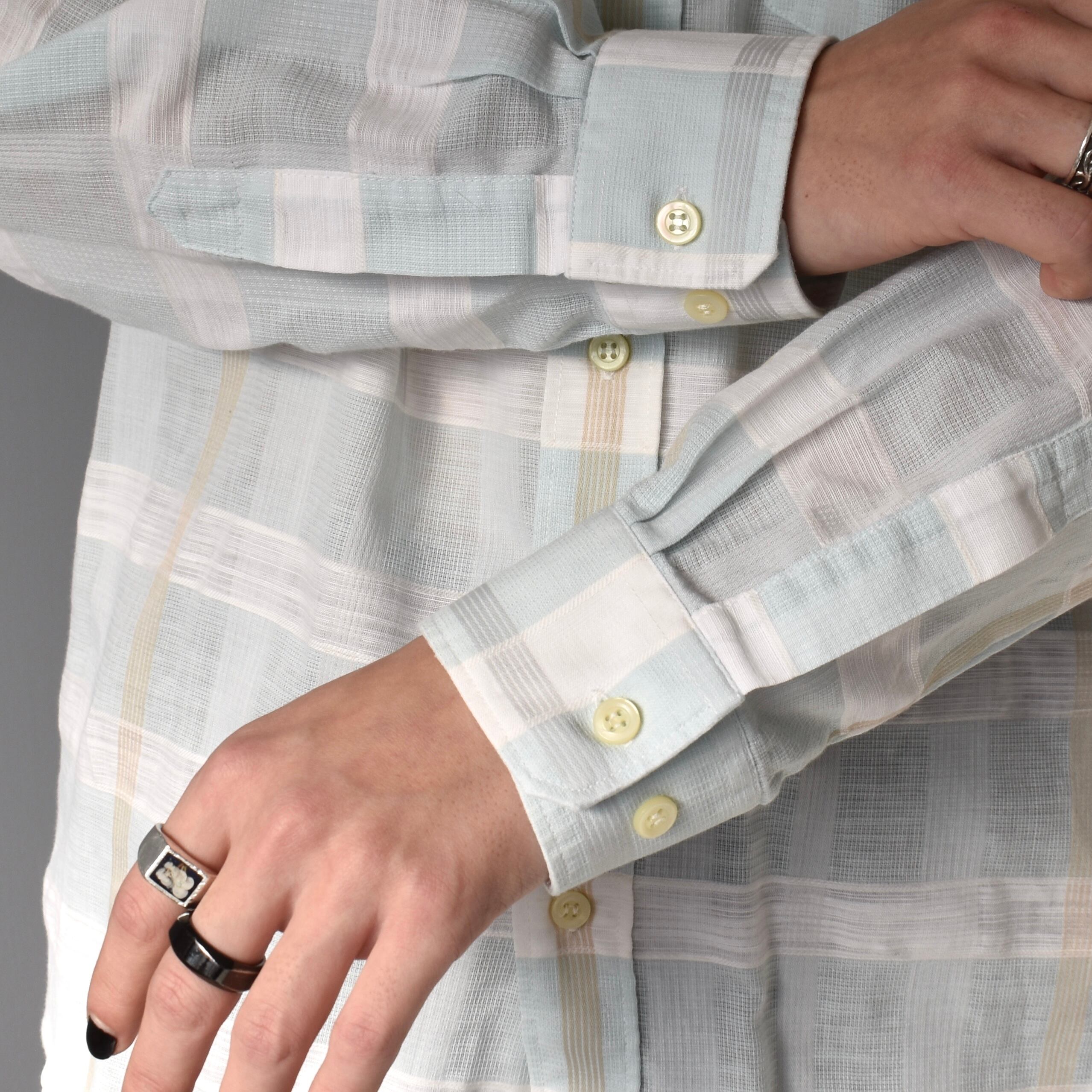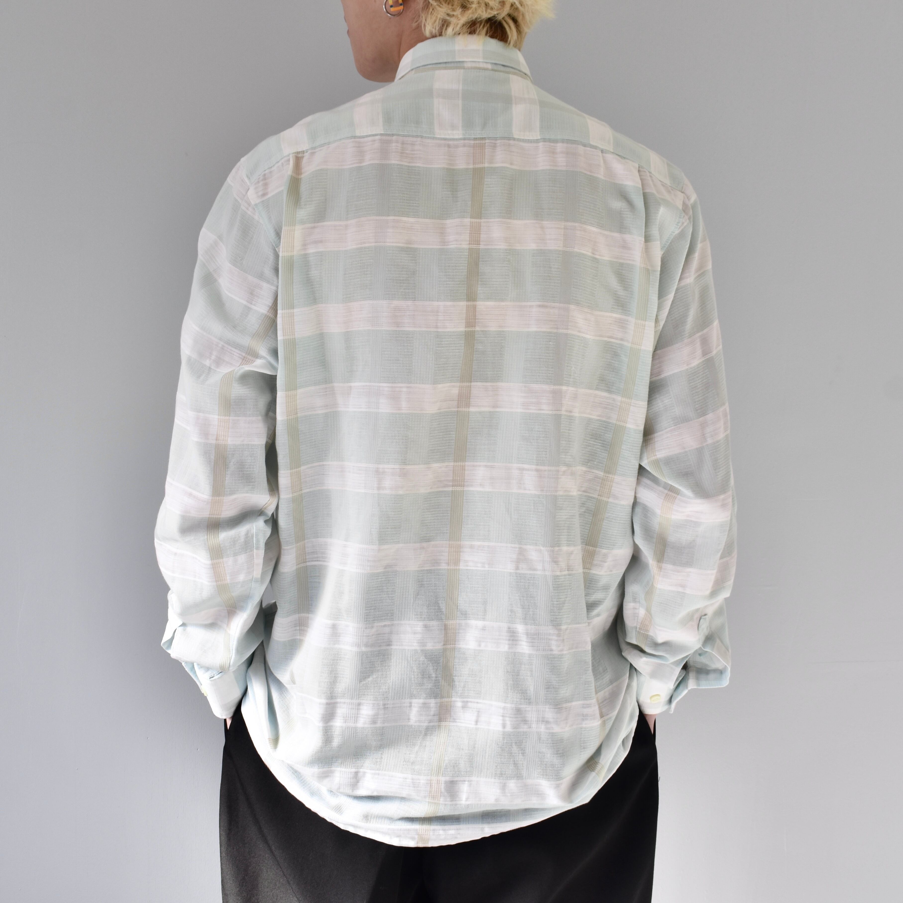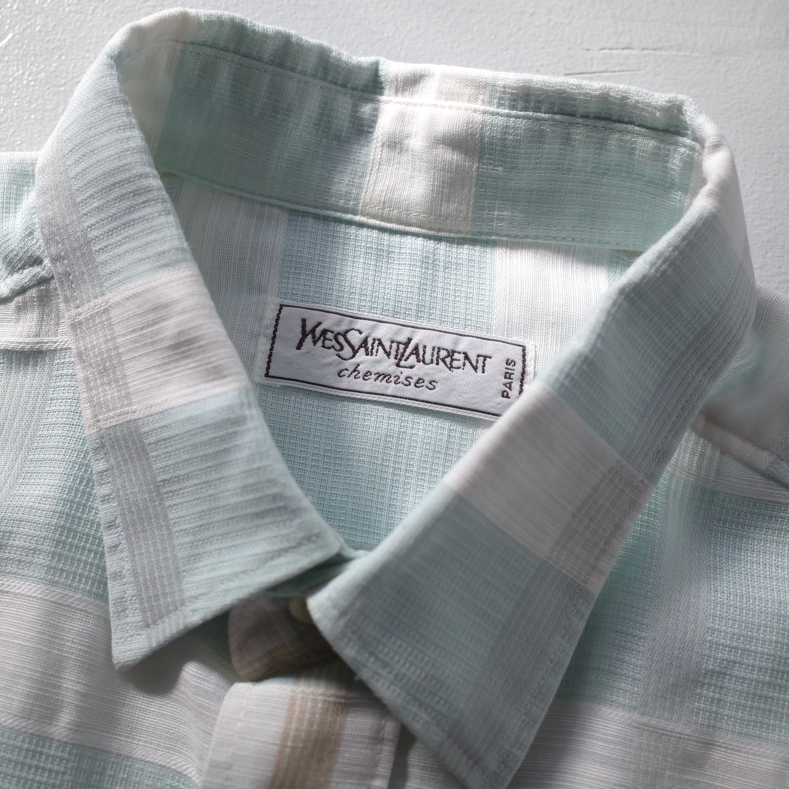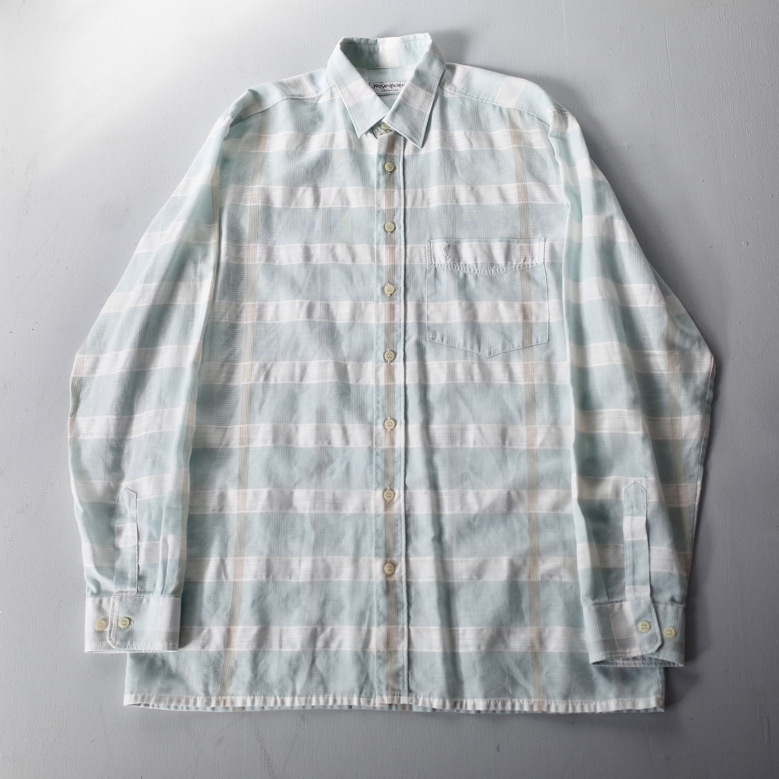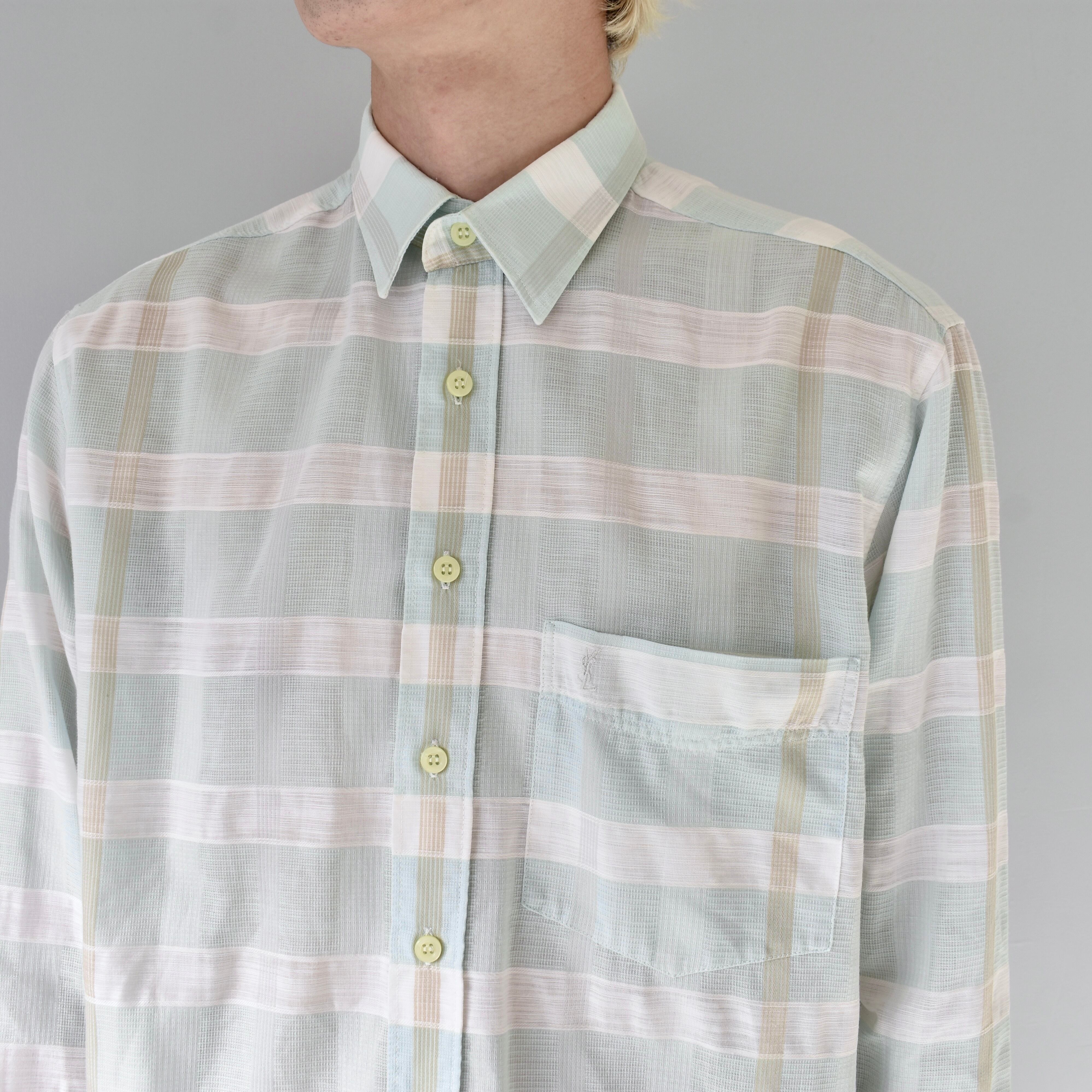 【VINTAGE】 “Yves Saint Laurent” 70's~80's Check Patterned Dress Shirt l/s