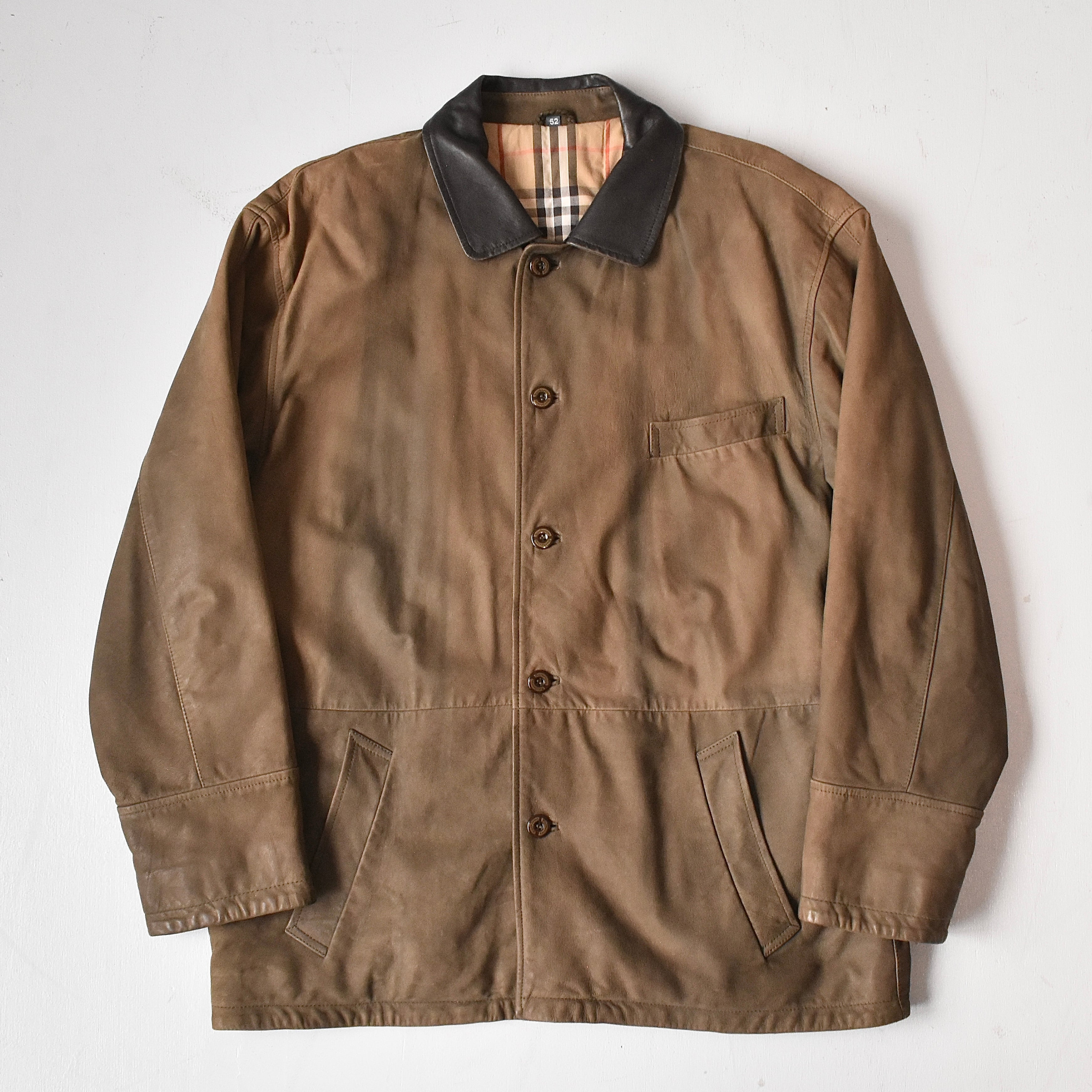 “BURBERRY” Made In Spain Different Leather Designed Collar Car Coat | FINCH vintage and archive store