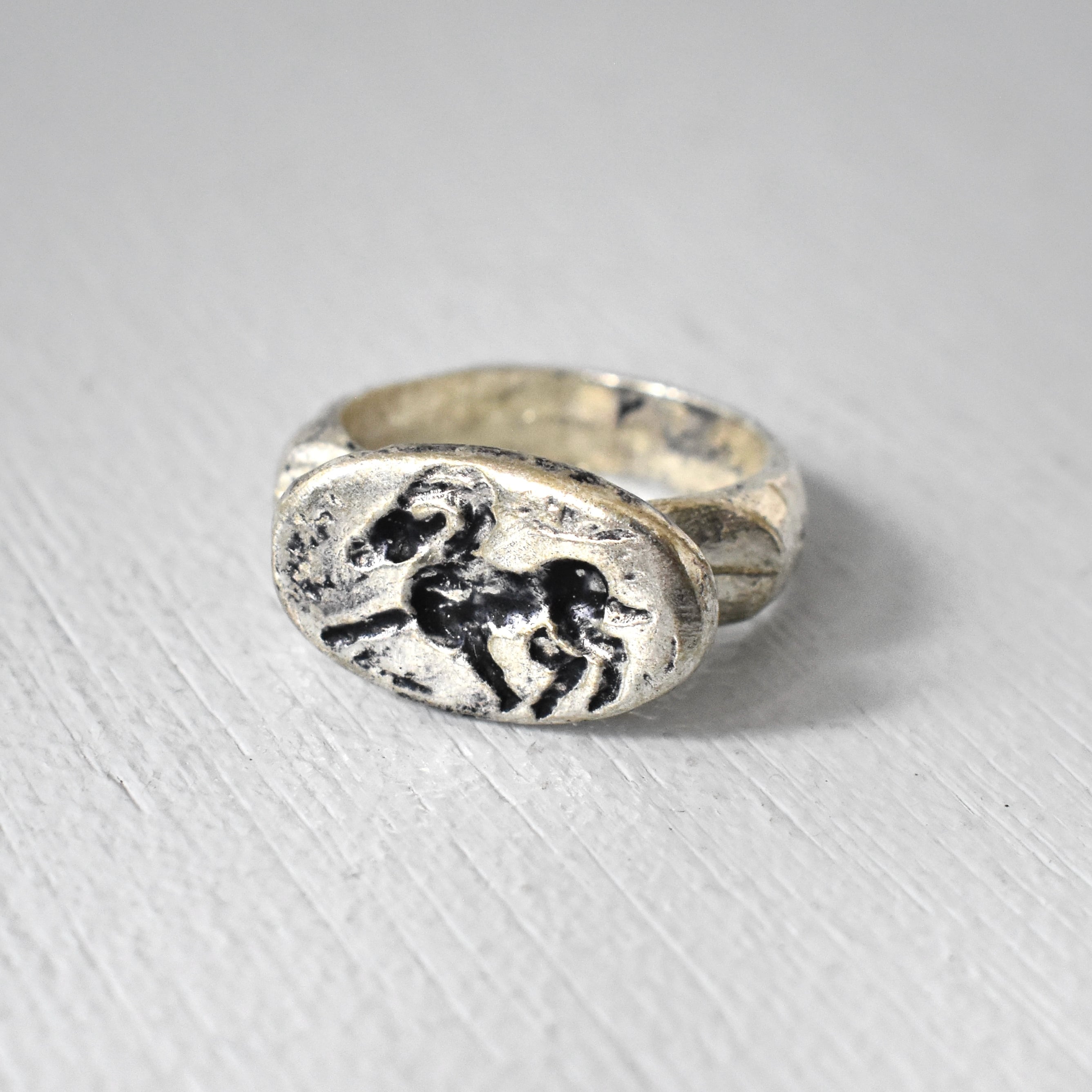大変無骨にスタンプワークした馬がシグネチャーリングの