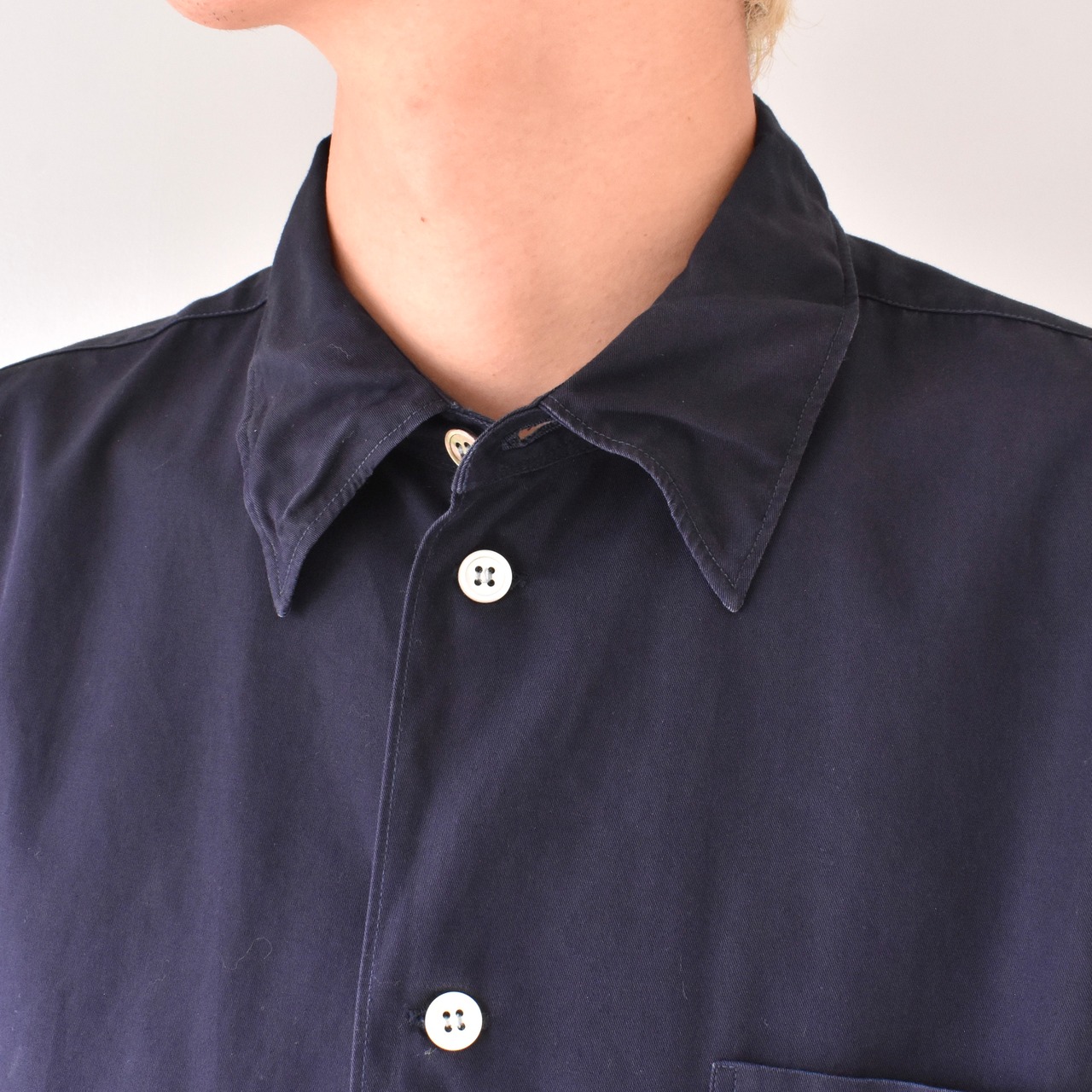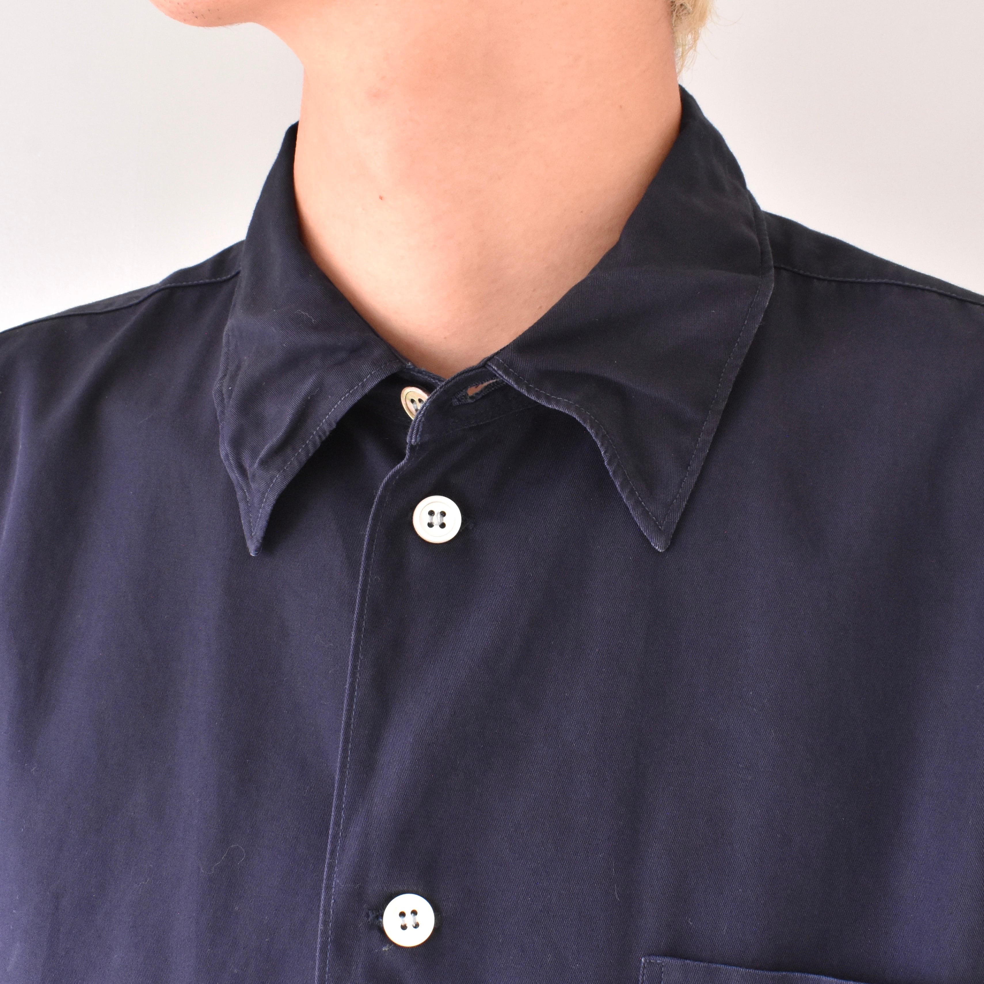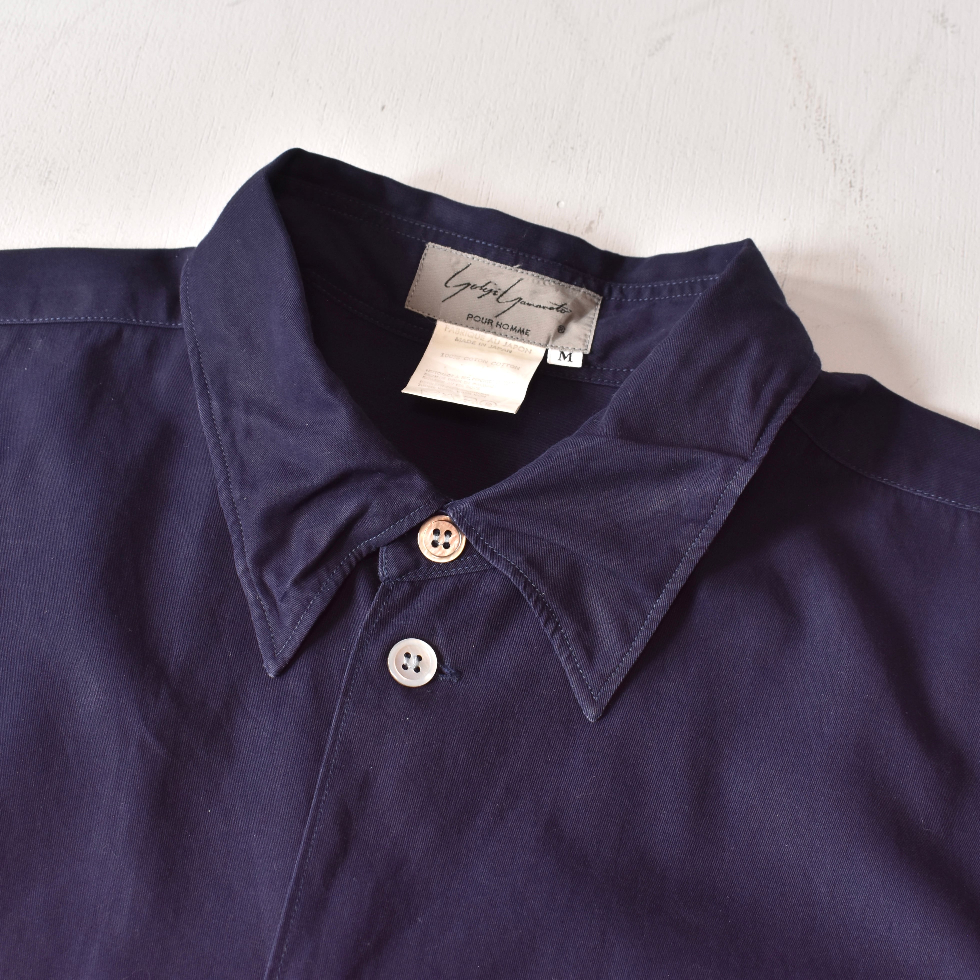 【VINTAGE】 "Yohji Yamamoto" 『丸文字ロゴ』 80's~ Designed Collar Cotton Gabardine Shirt l/s | FINCH vintage and archive store