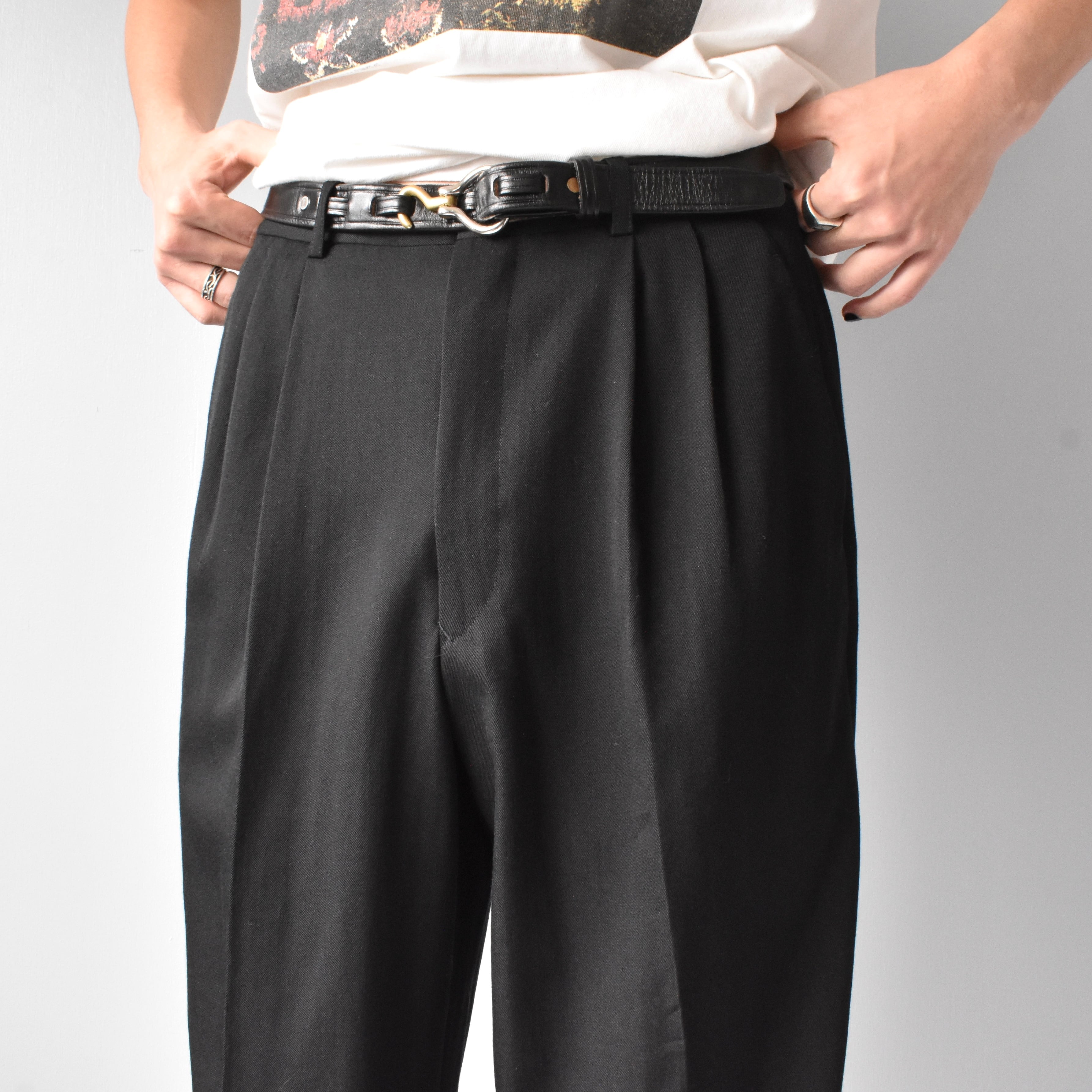 ツータックが入るブラックトラウザーズ。世界的な評価も