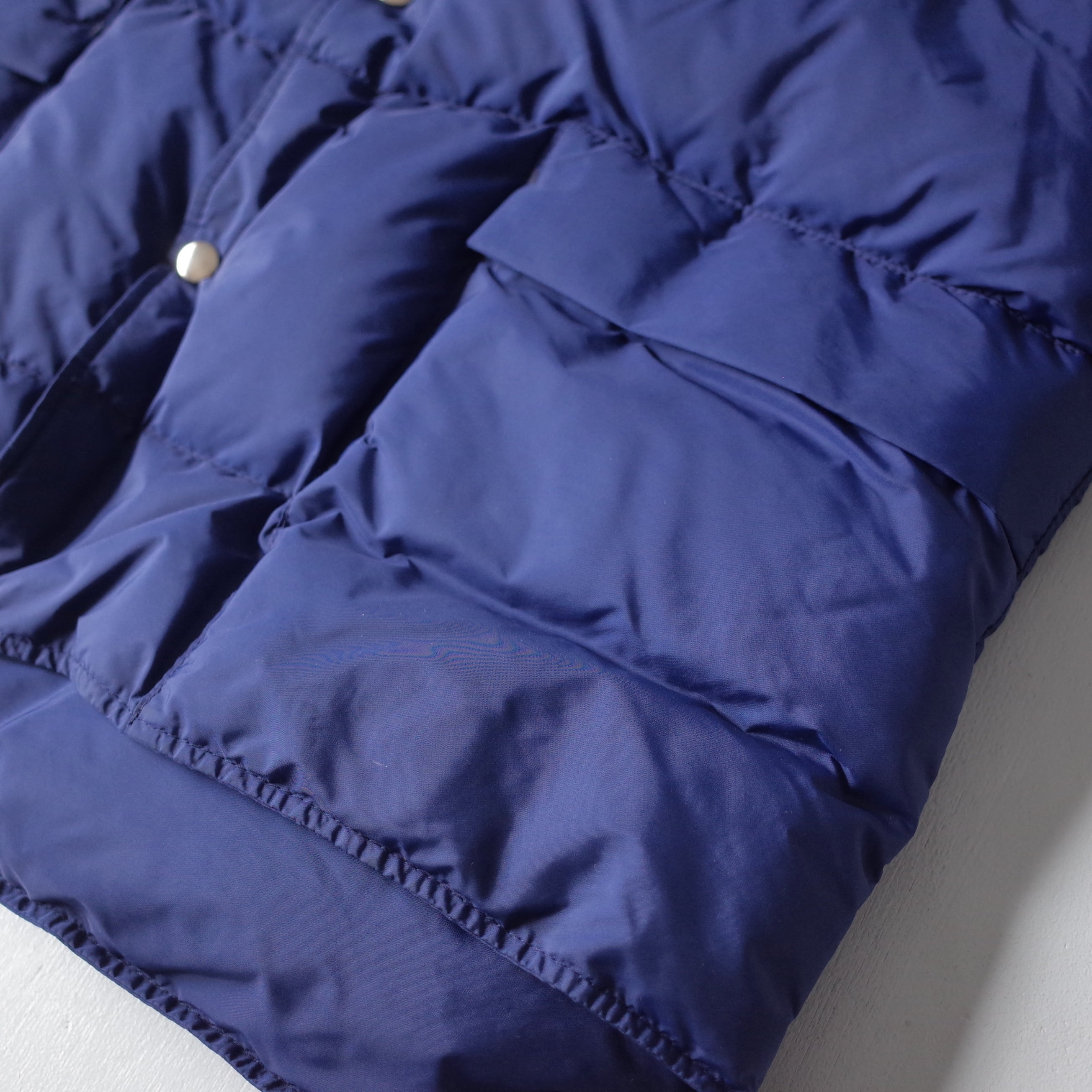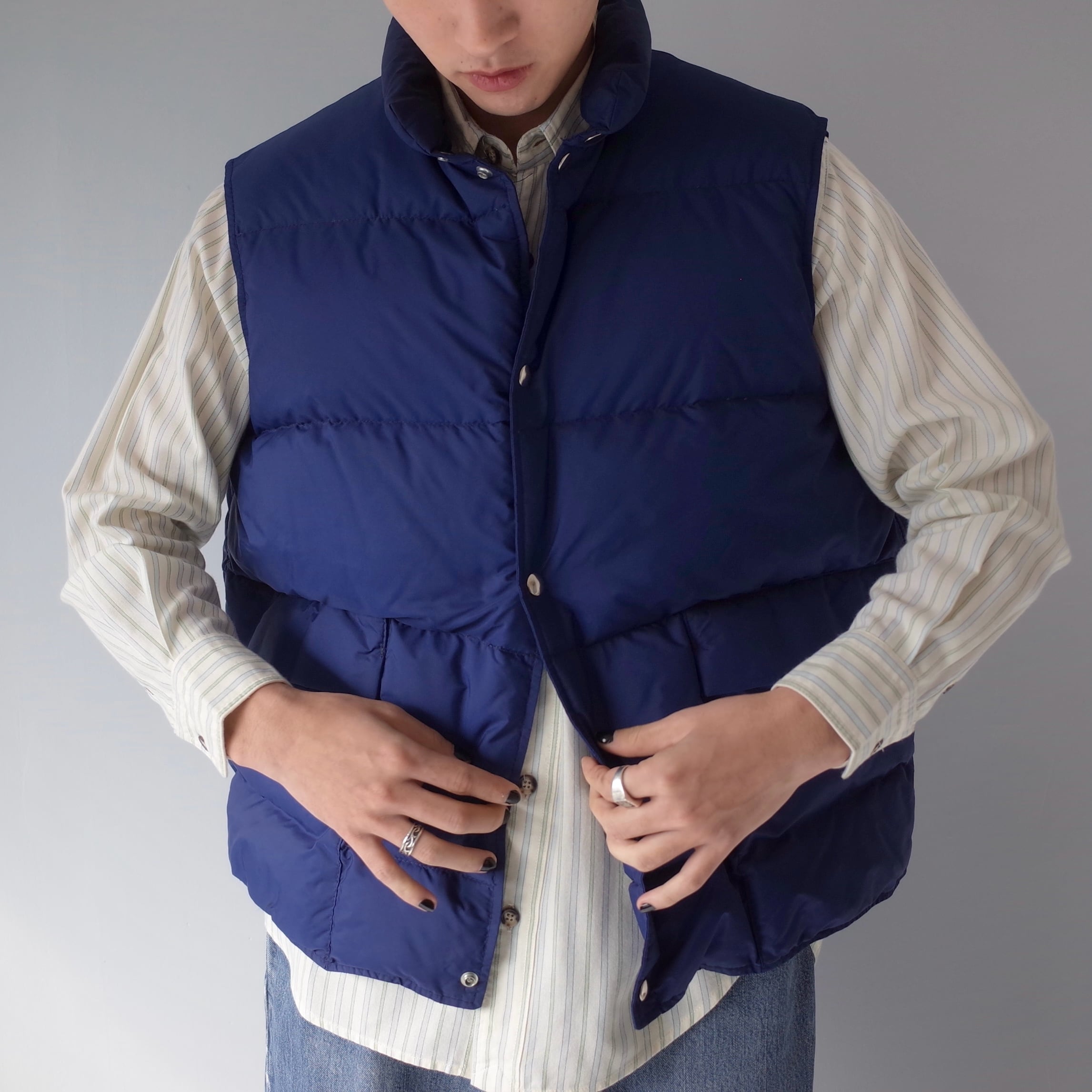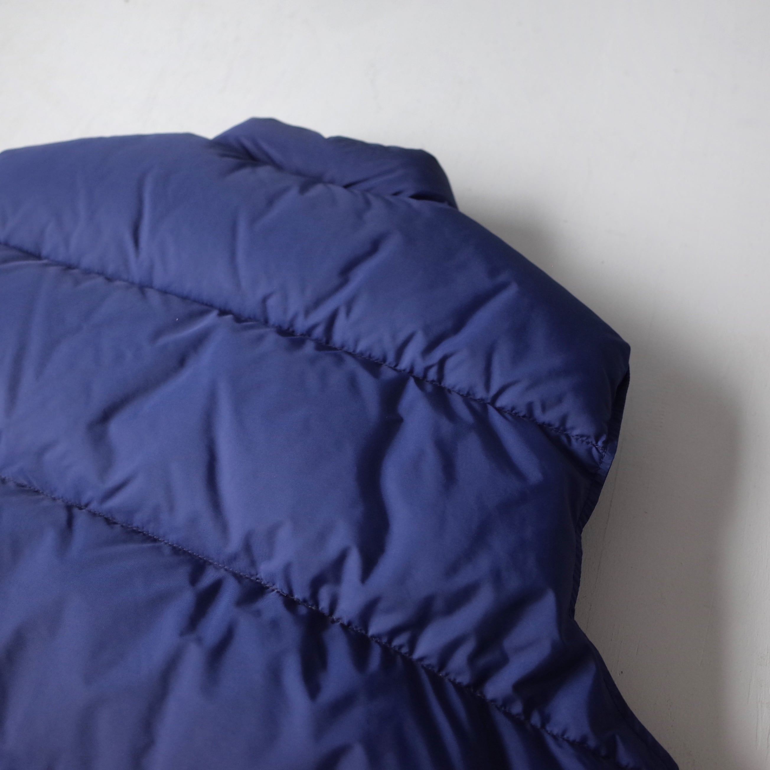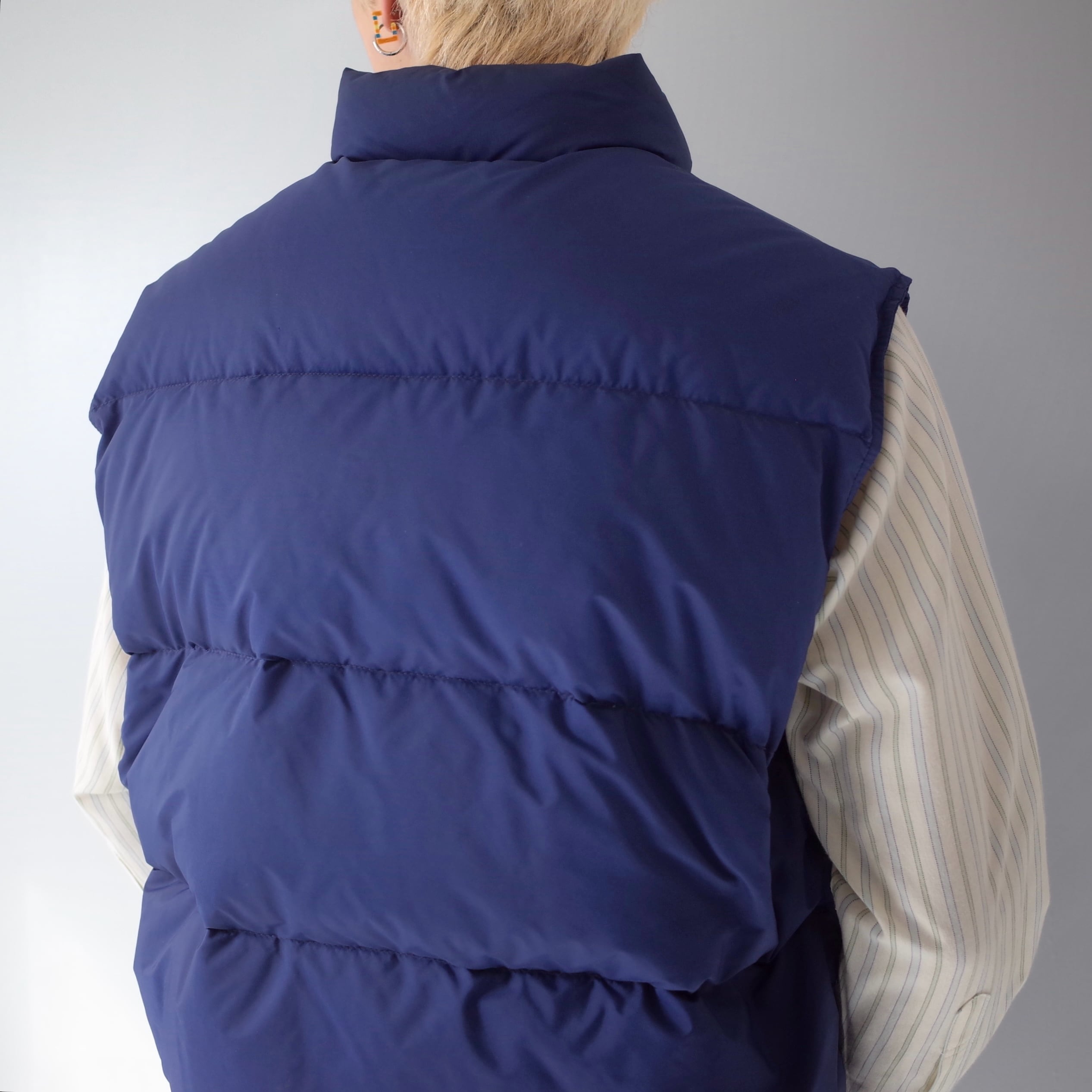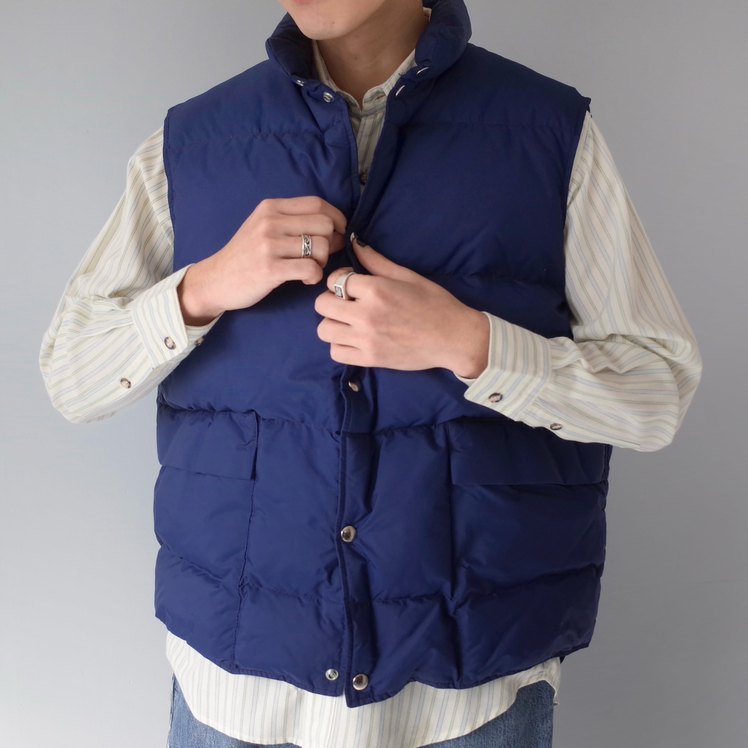 羽毛を用いた保温性に優れたダウンベスト。鮮やかな青に