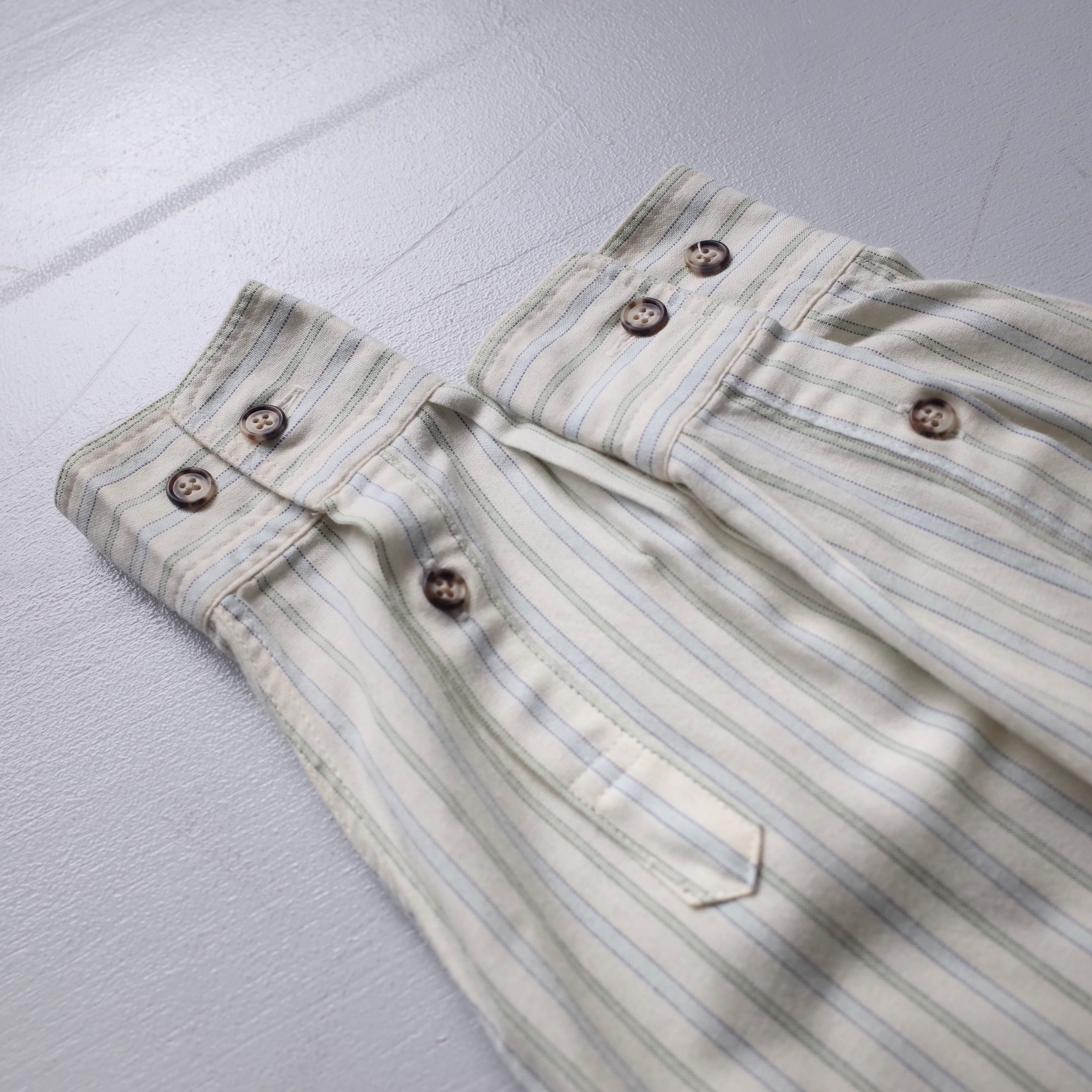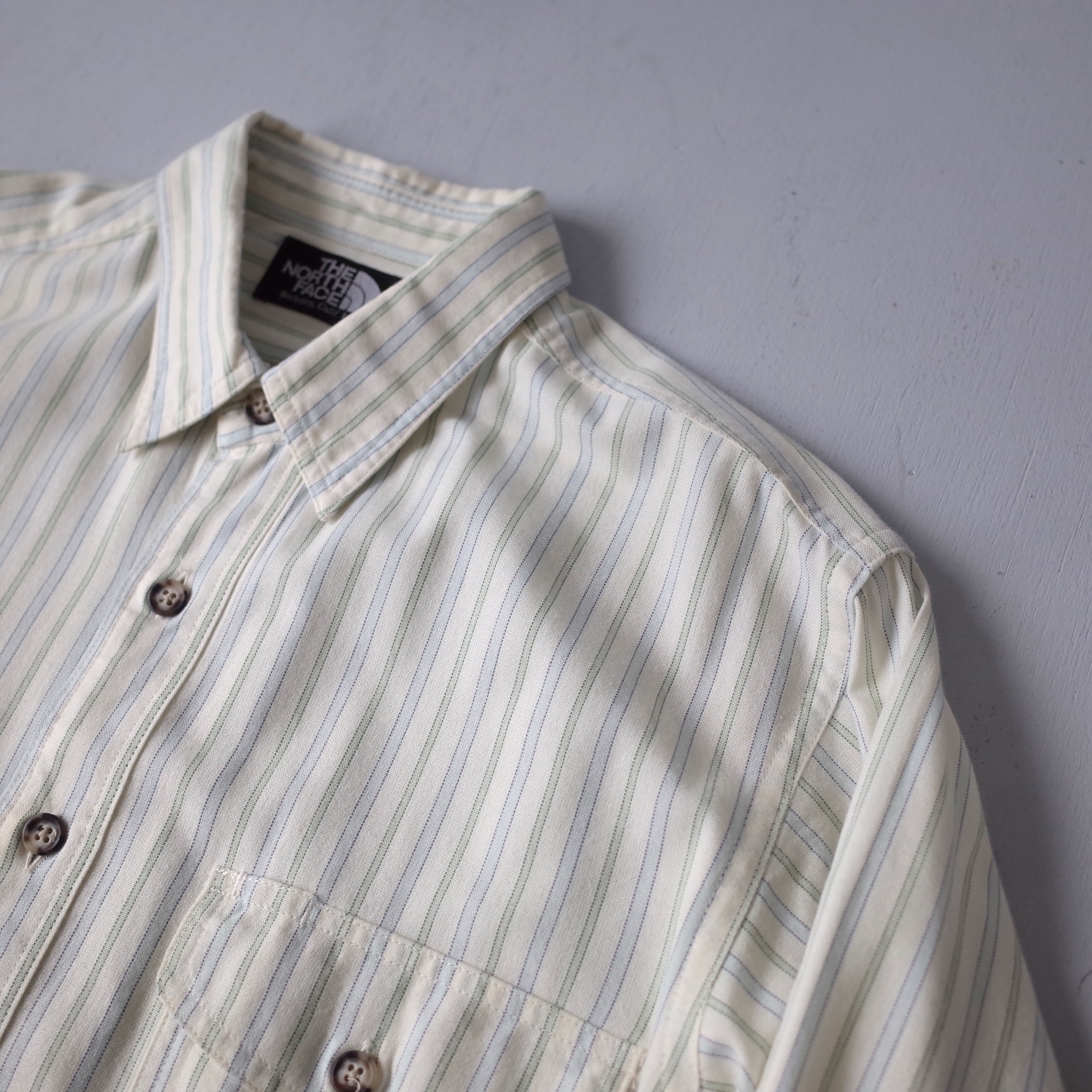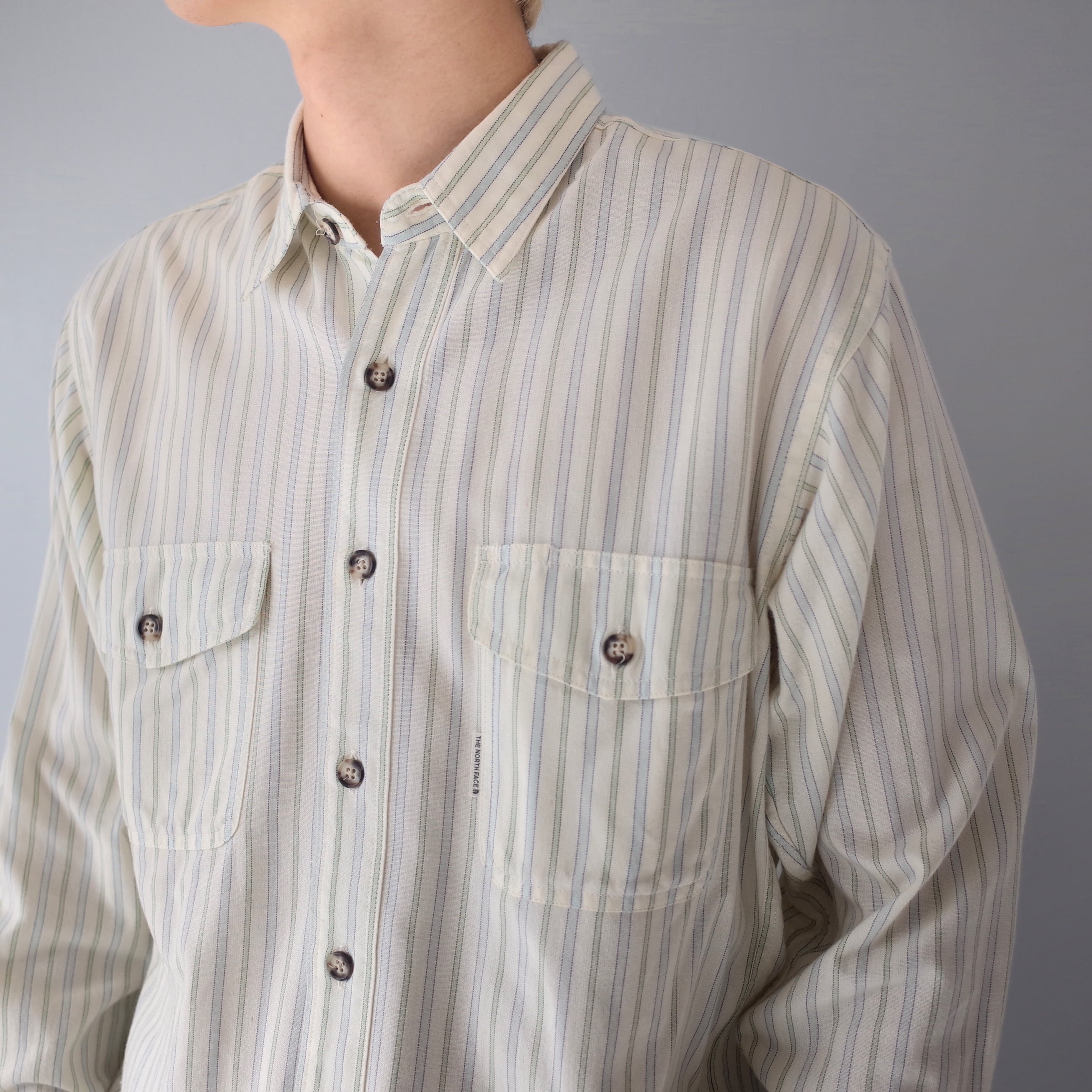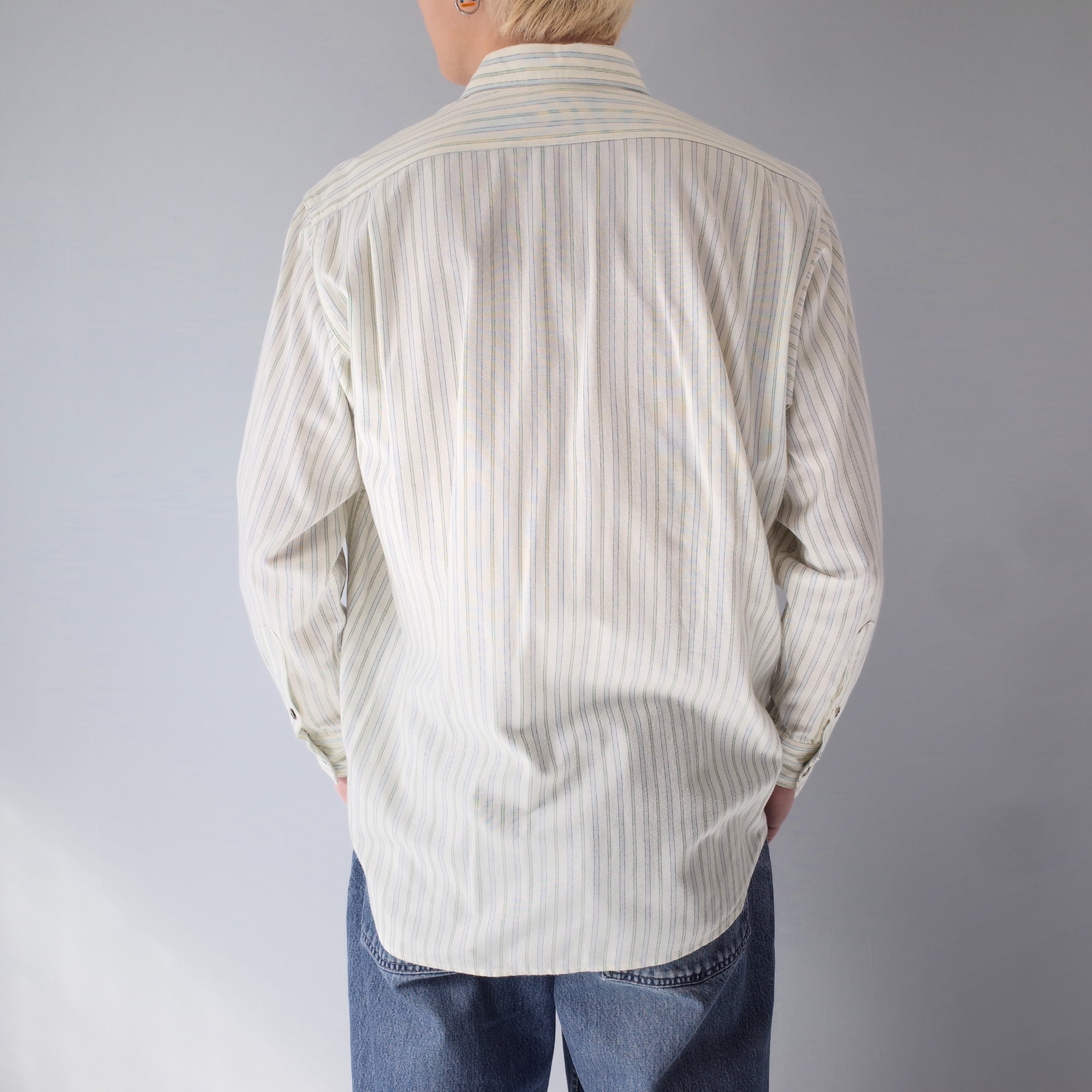 思えない程に柔らかいストライプシャツ。淡い色調により