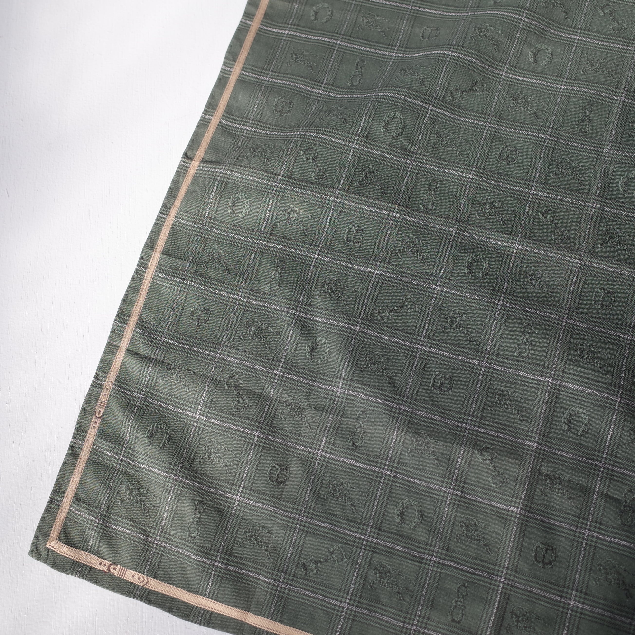チェック柄に蹄鉄やホースビットの刺繍が施された豪華な