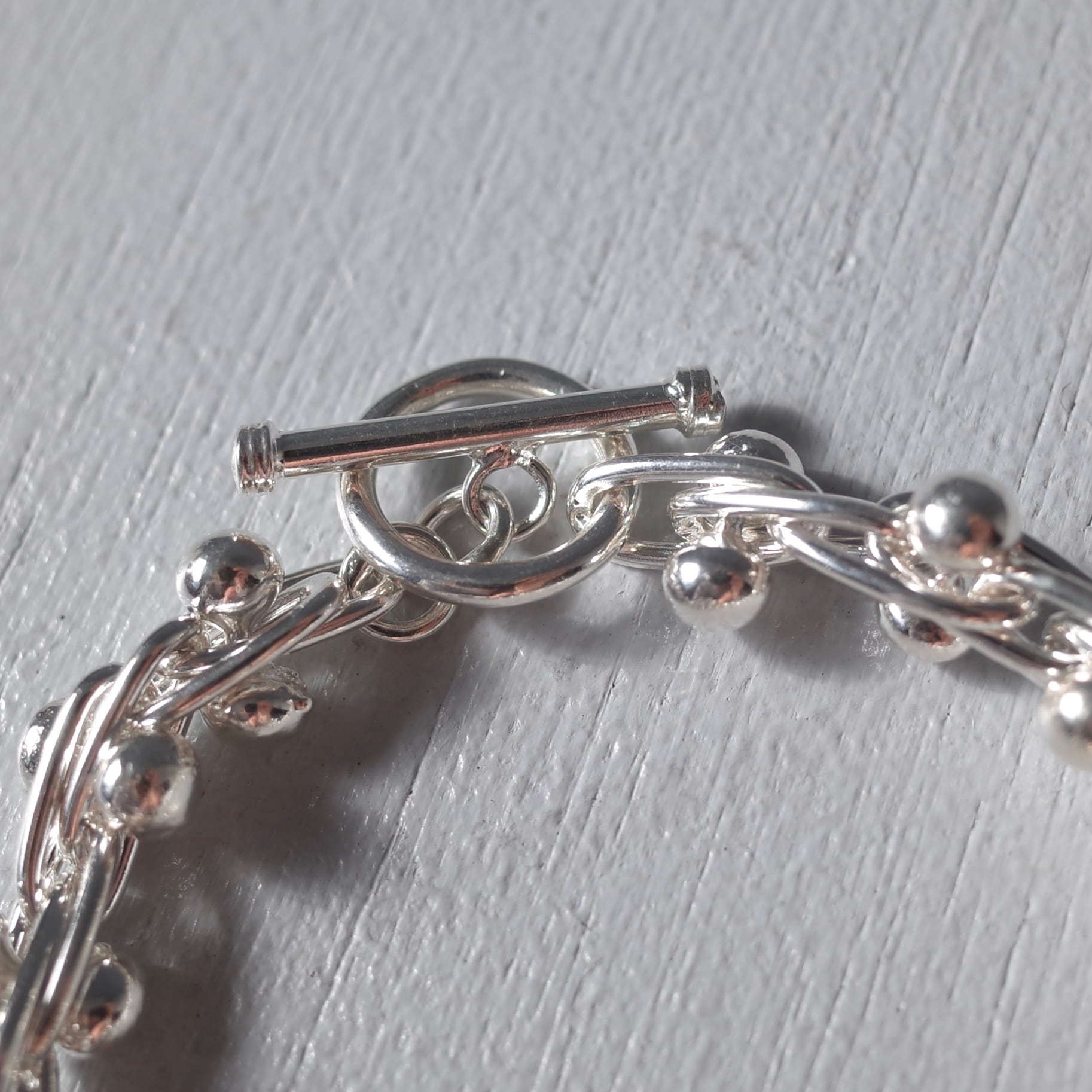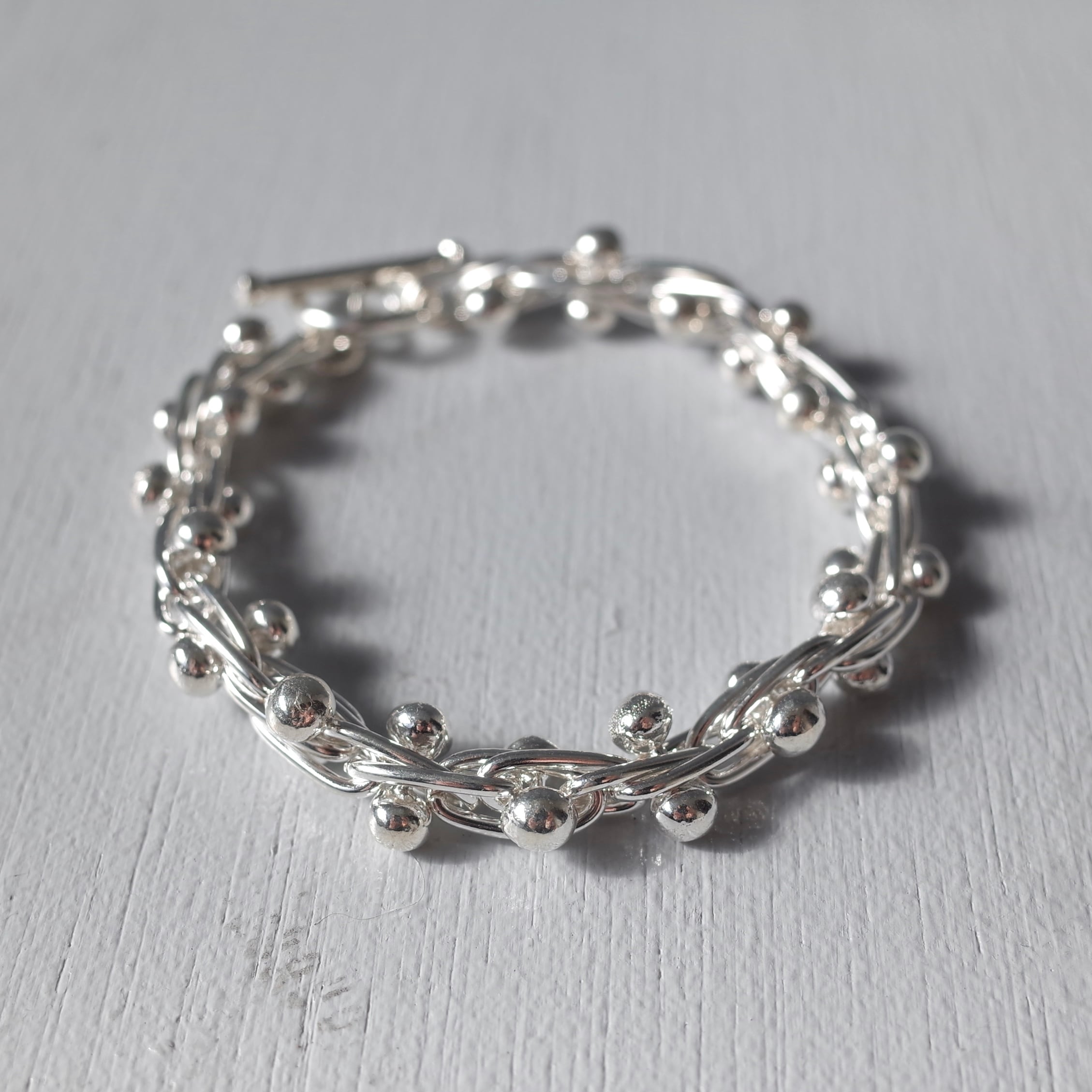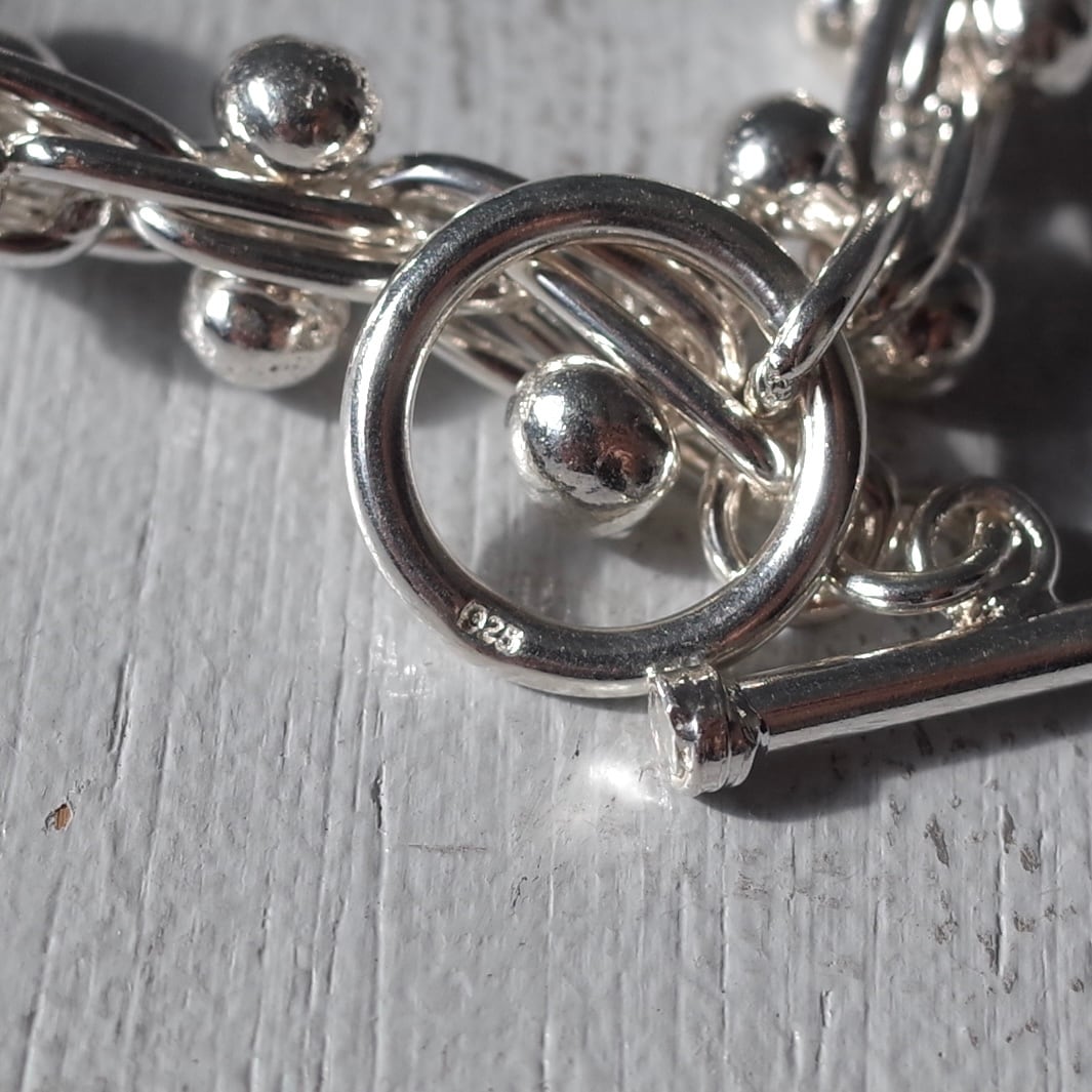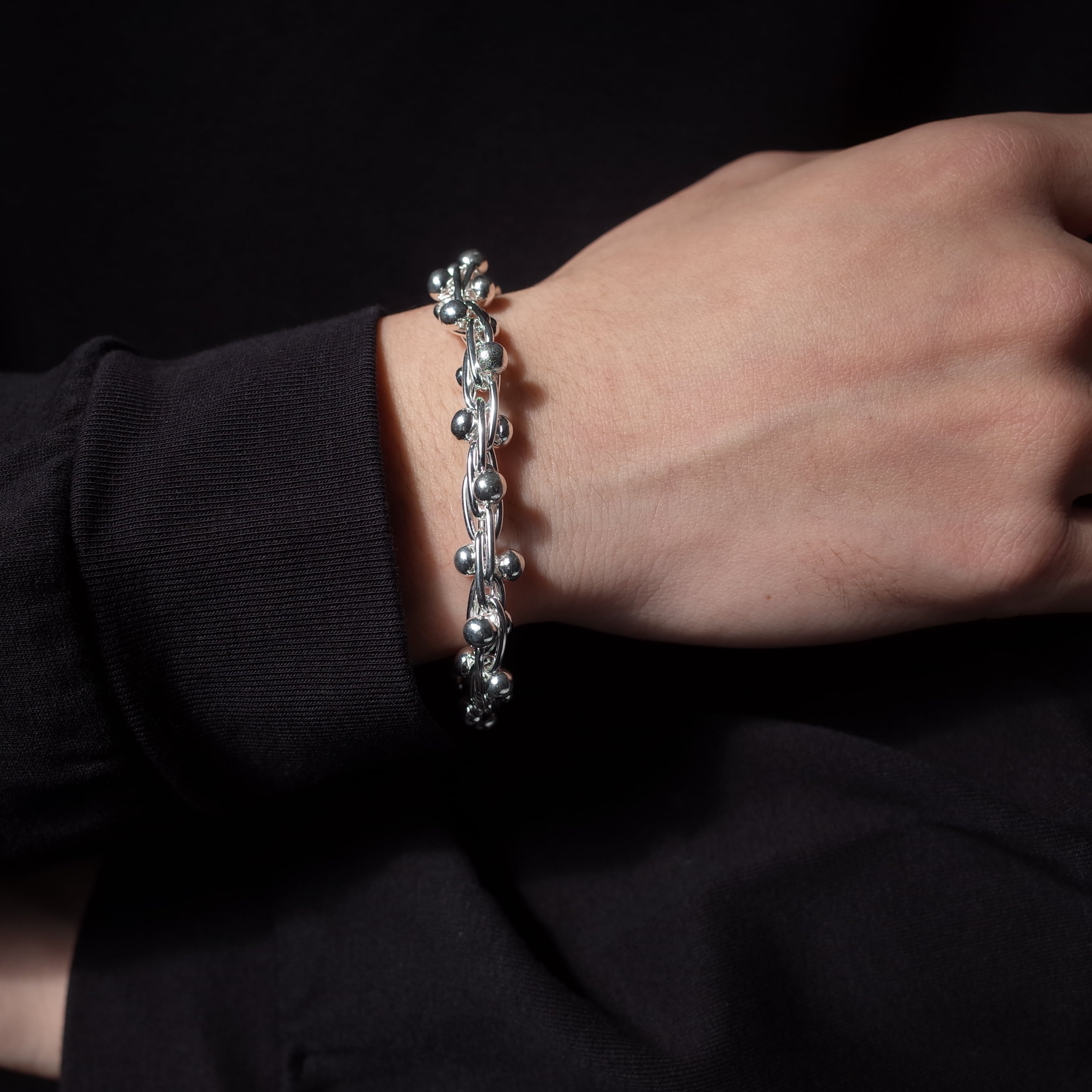 “DNA”モチーフの大変幾何学的で、哲学的なデザインのブレスレット。SILVER925が採用され、日常使いによる経年変化も同アイテムの魅力をより引き立ててくれます。