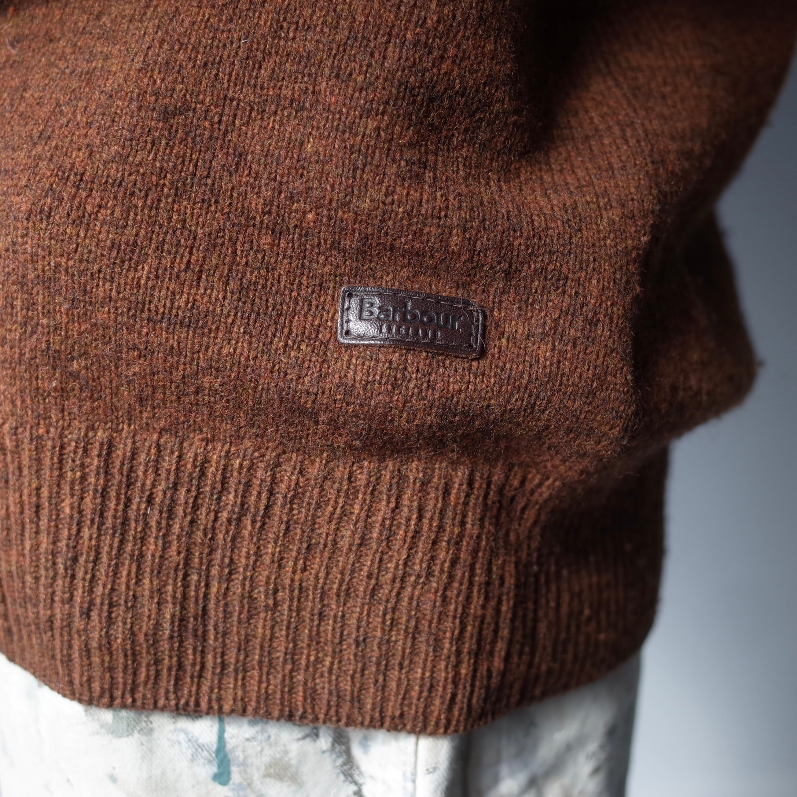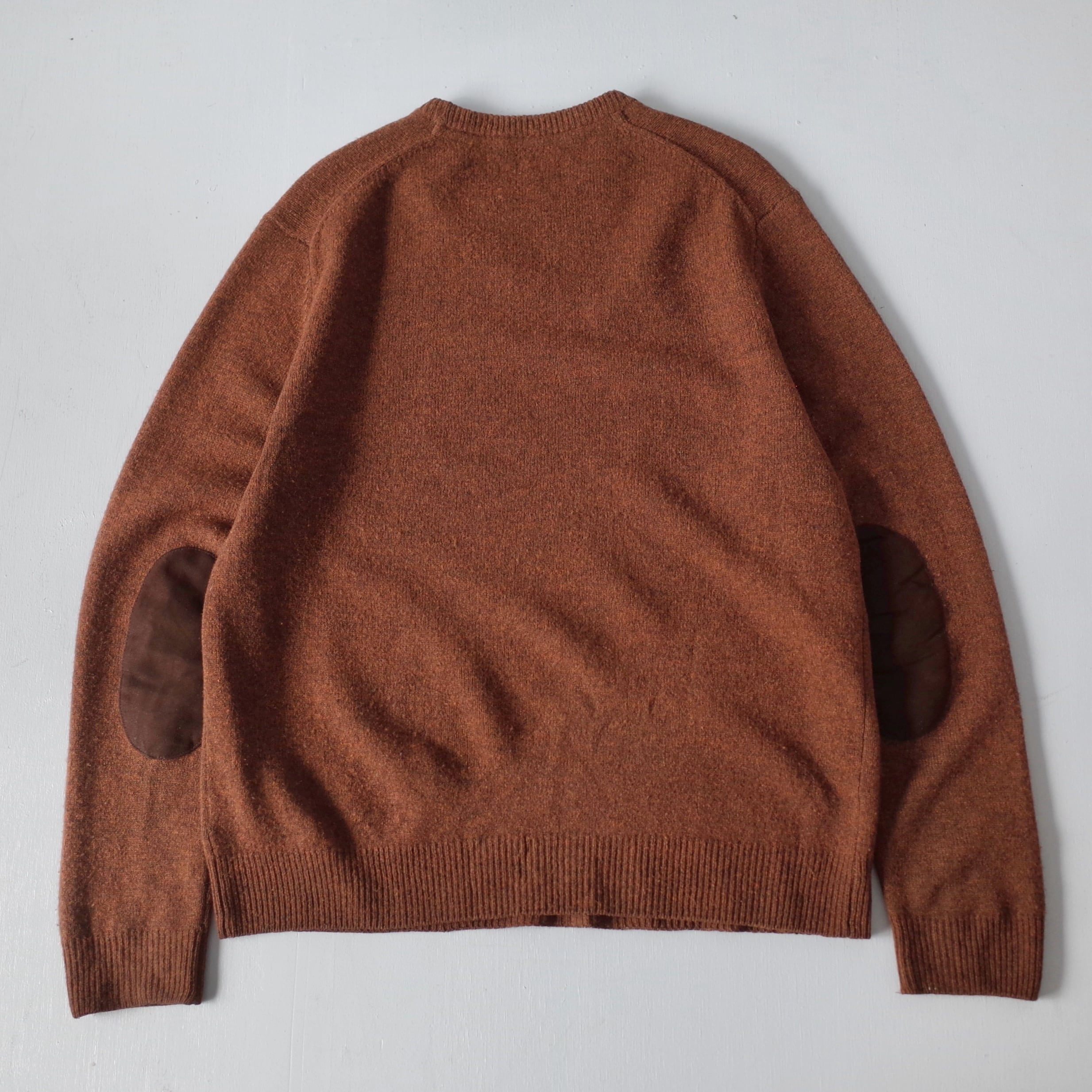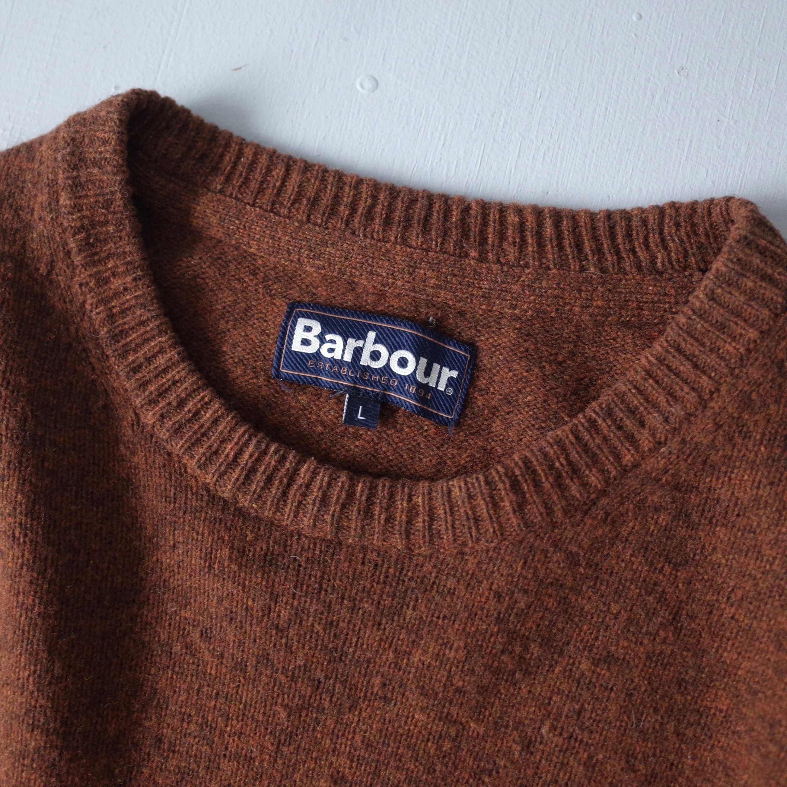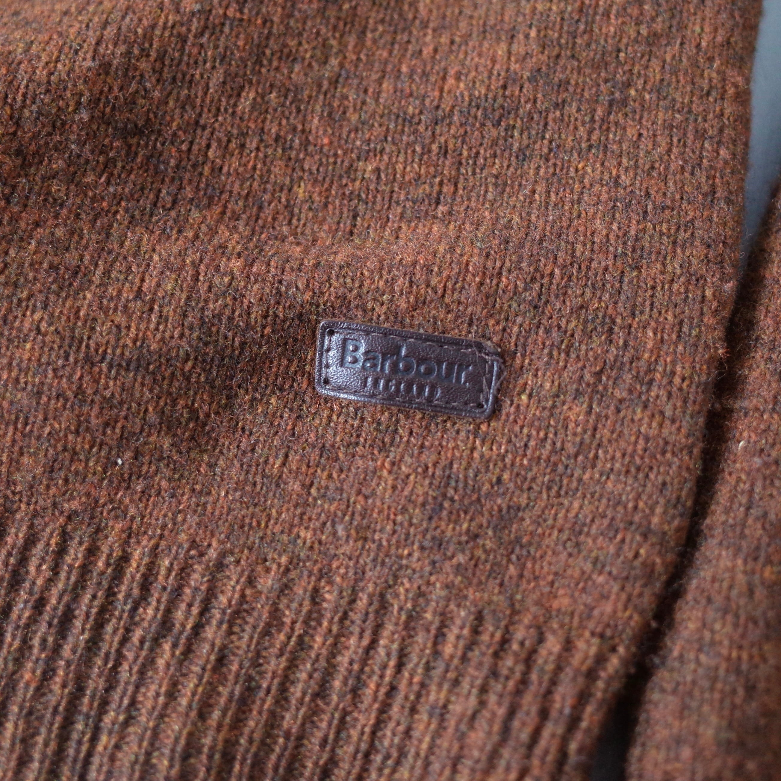 英国の老舗"Barbour"が作るオーセンティックなウール地ニット。明るめブラウンの色合にふんわりとしたニットの質感が魅力的。エルボーパッチや裾のワンポイントロゴをはじめ、心地良いアクセントが光る『ミニマルで上質』な逸品です。