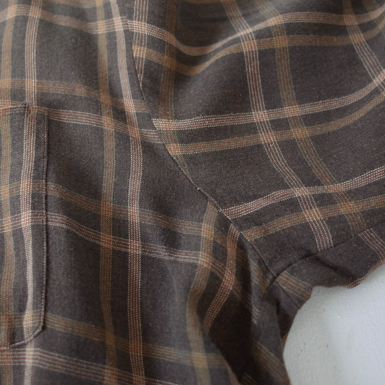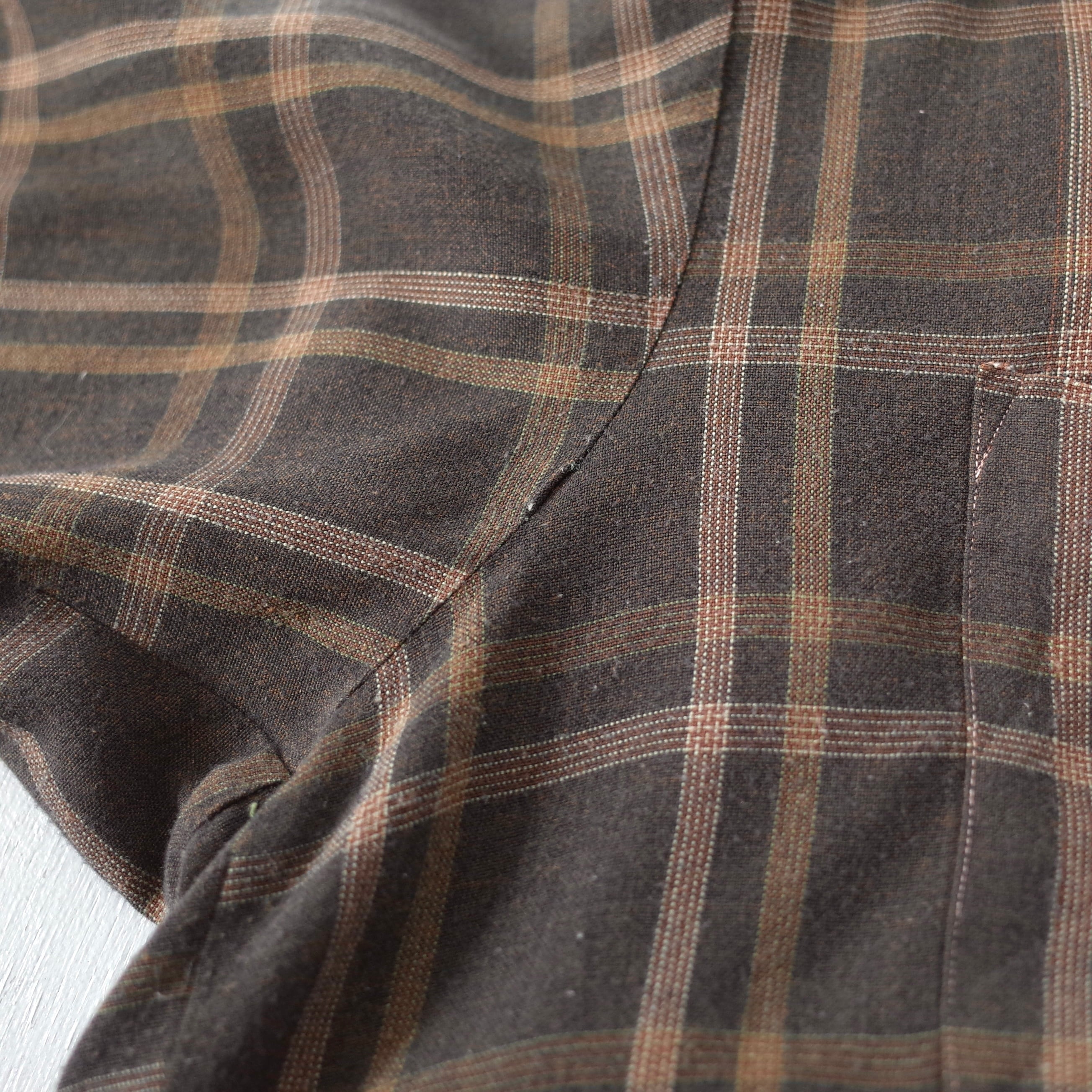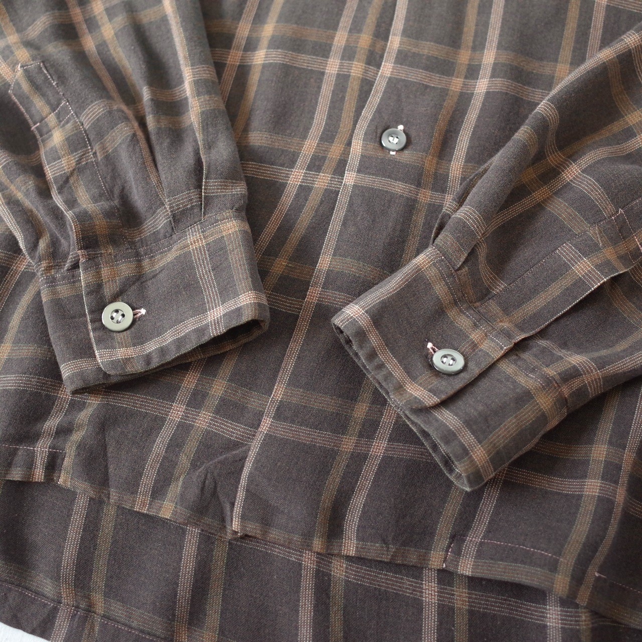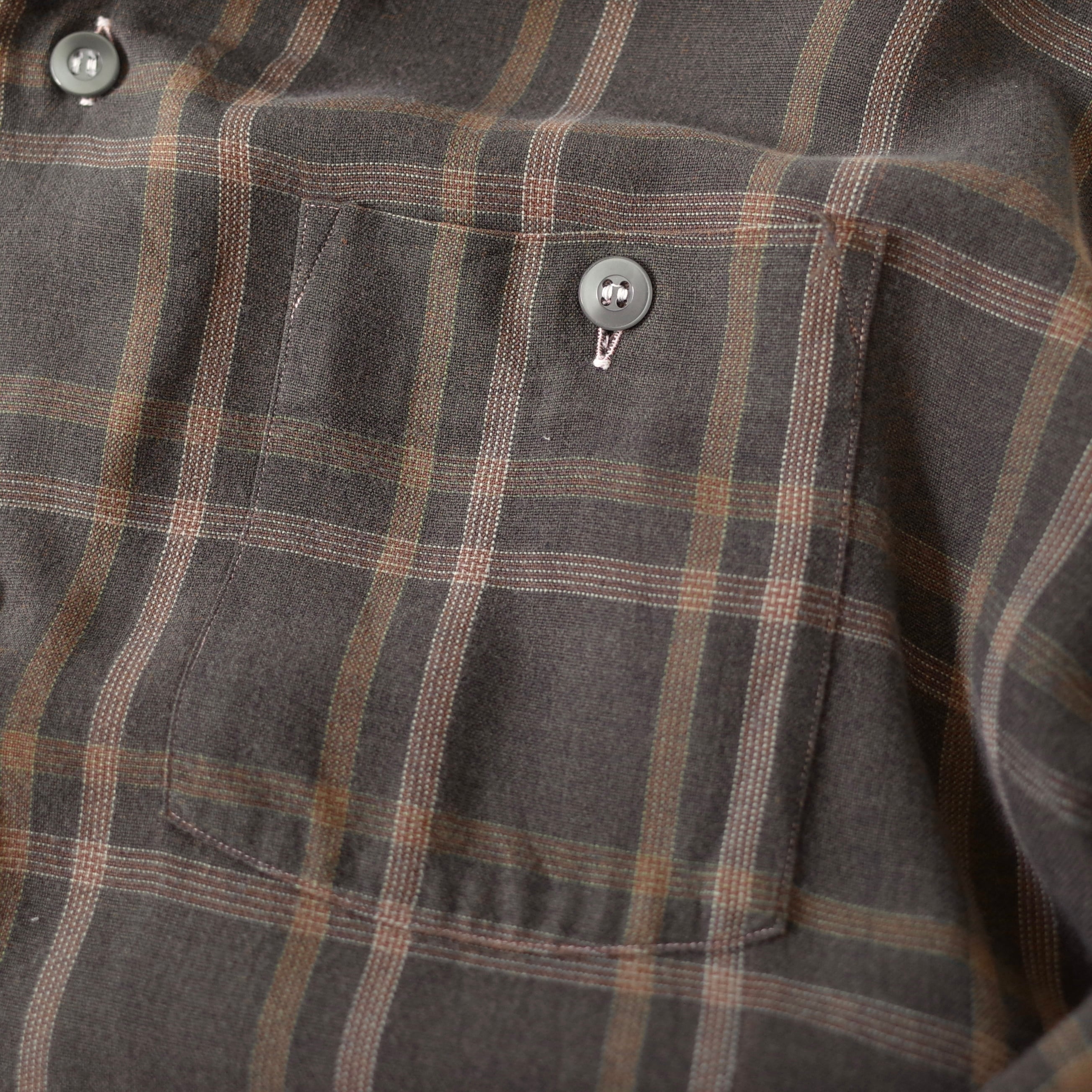 ブラウンを基調とした渋めでレトロな配色のチェック柄。"GOLD CIRCLE"による1960's~のレーヨン地シャツ。