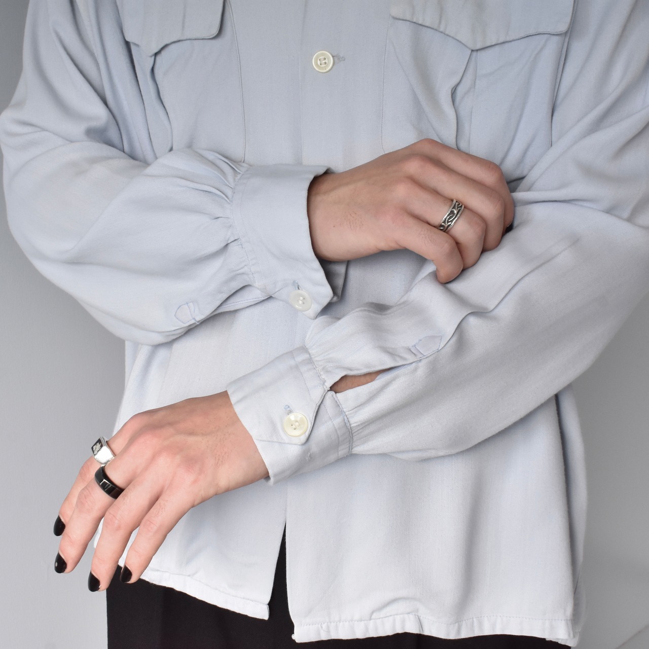 【VINTAGE】 50's~60's Flap Pocket Design Open Collar Rayon Shirt l/s
