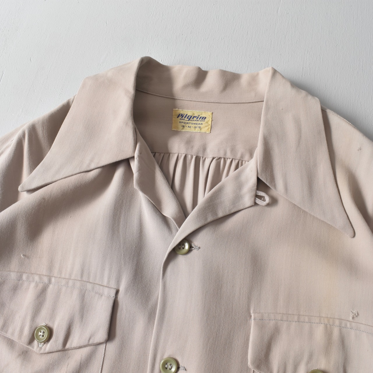 SIZE M,15-15 1/2、肩幅 47.5cm、身幅 58cm、着丈 71cm、袖丈 59.5cm
