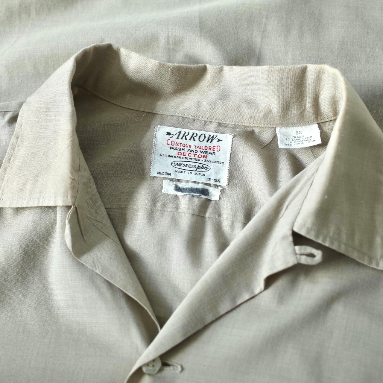 1850年代にスタートした老舗シャツブランド"ARROW"より、表記15と日本人のゴールデンサイズの米国製開襟シャツ。