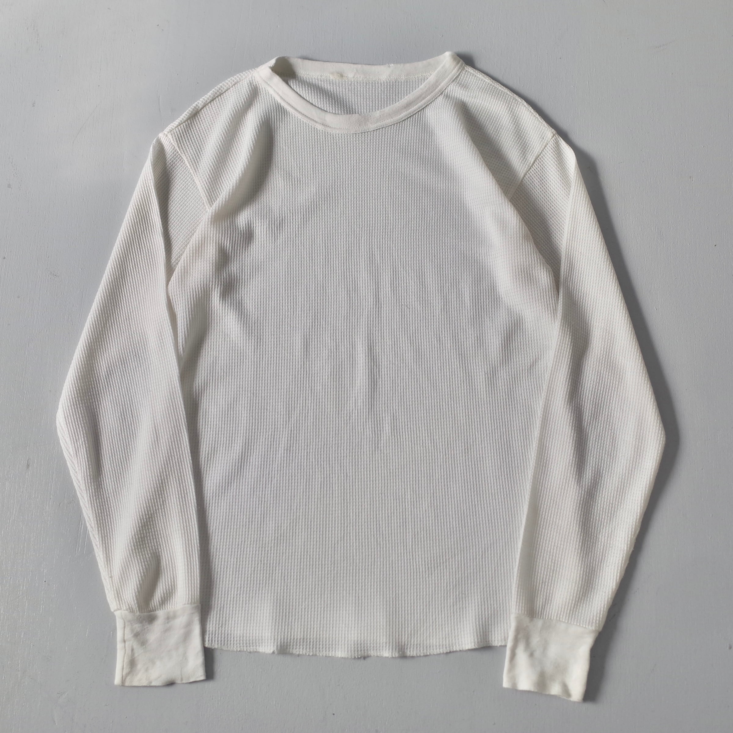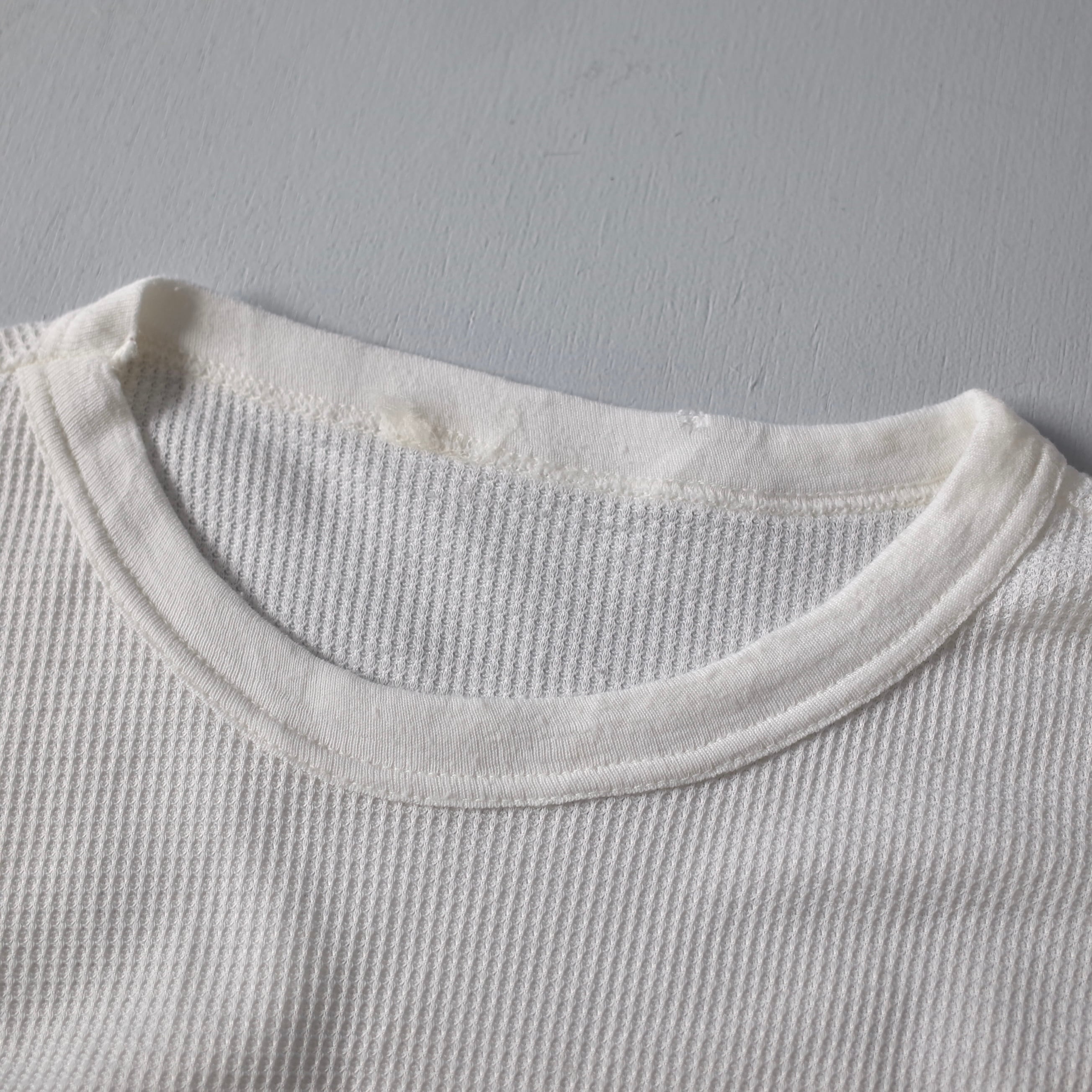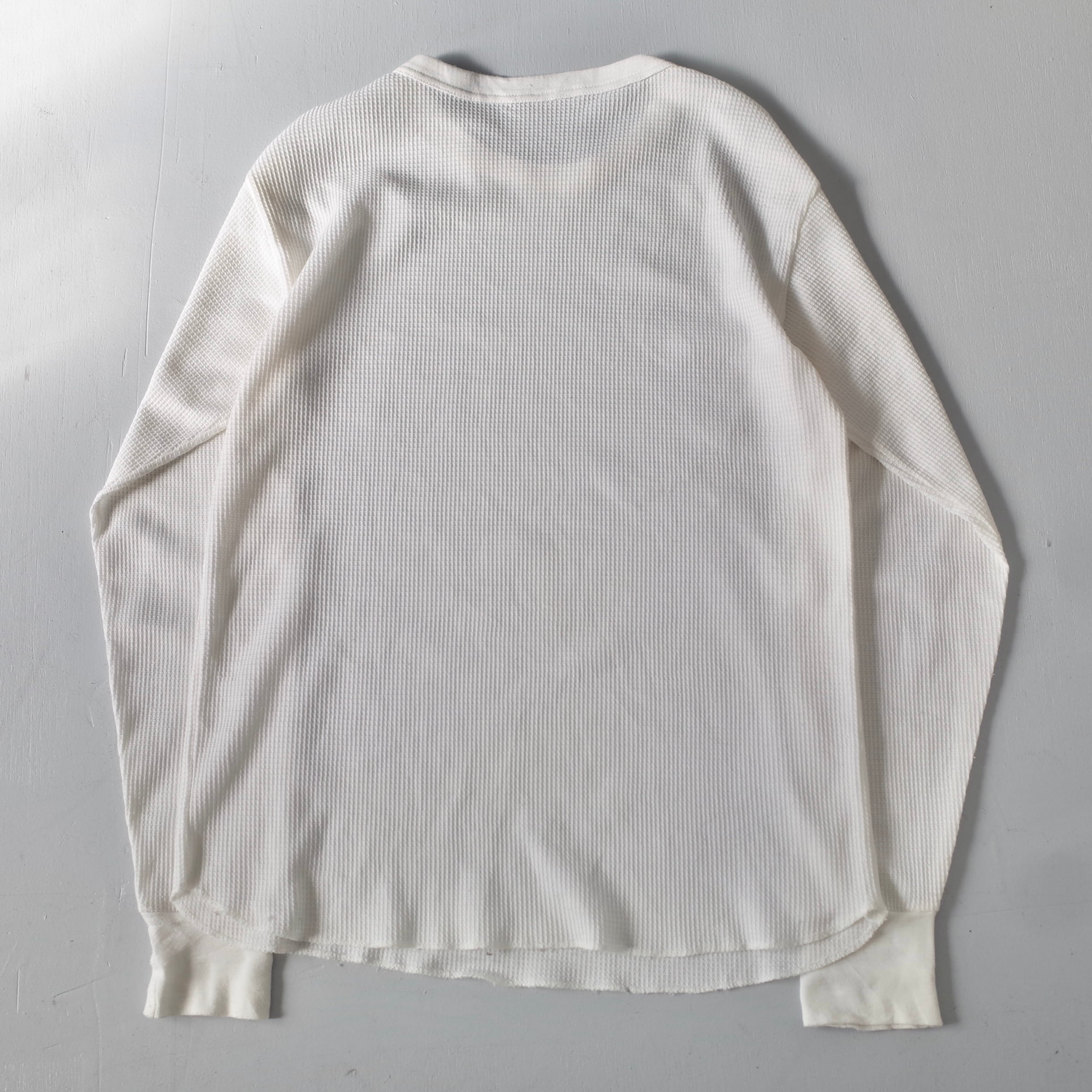 冬の名脇役として密かに重宝するヴィンテージサーマル。推定1980's~90'sの一着を御用意しました。凹凸のあるコットン生地がしっかりと空気を掴み、高い保温力を発揮します。