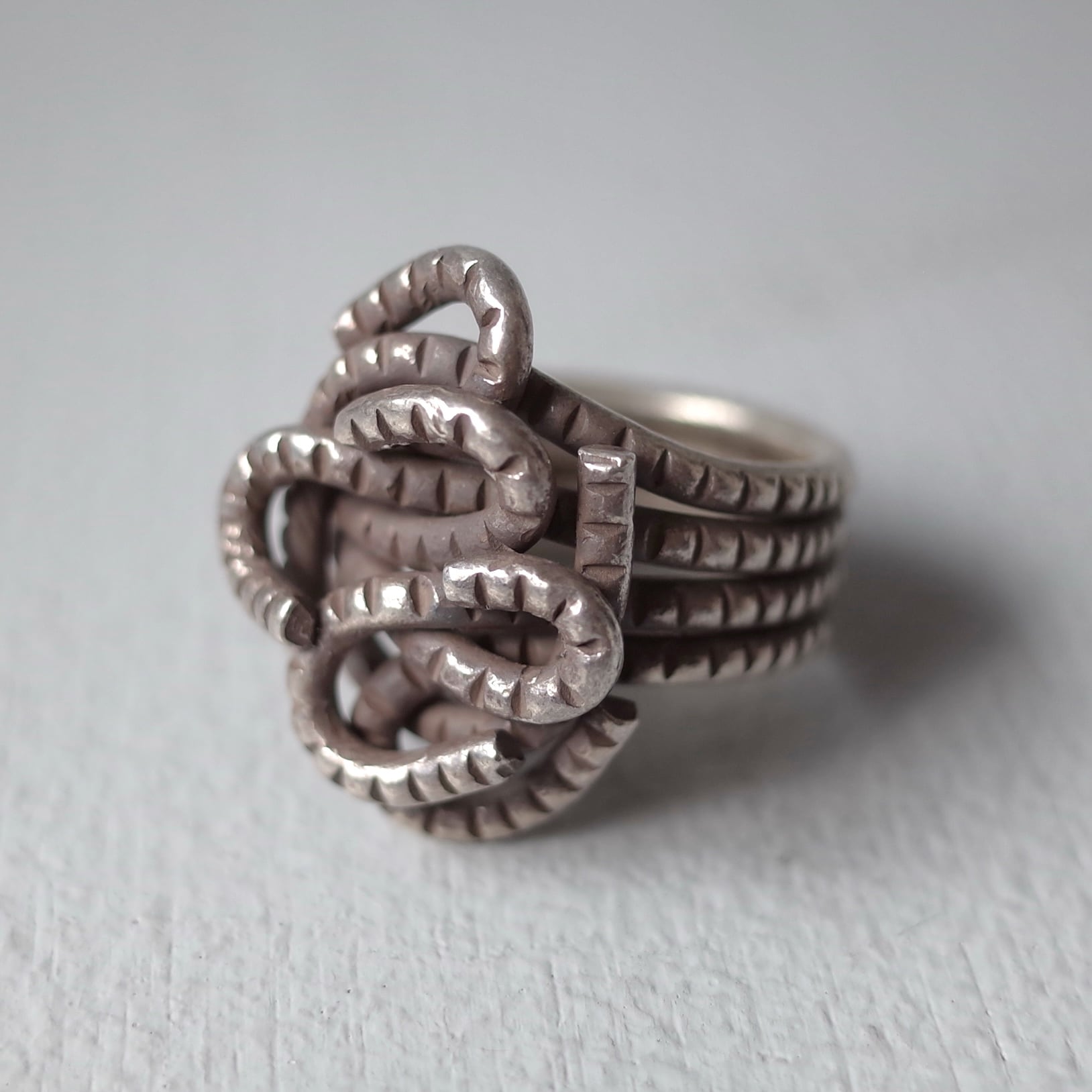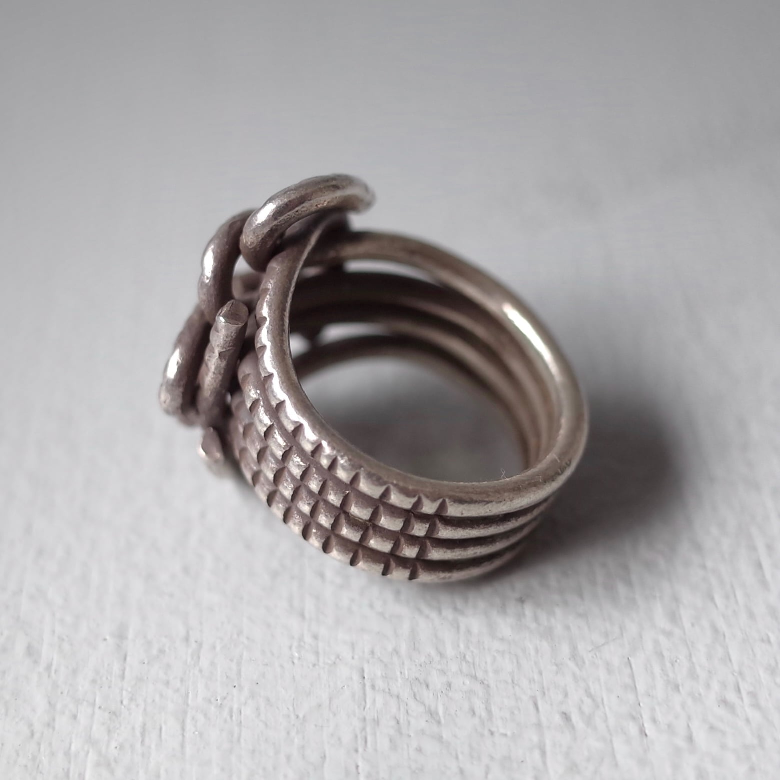 “カレン族”によるハンドメイドシルバー。ややくすんだ