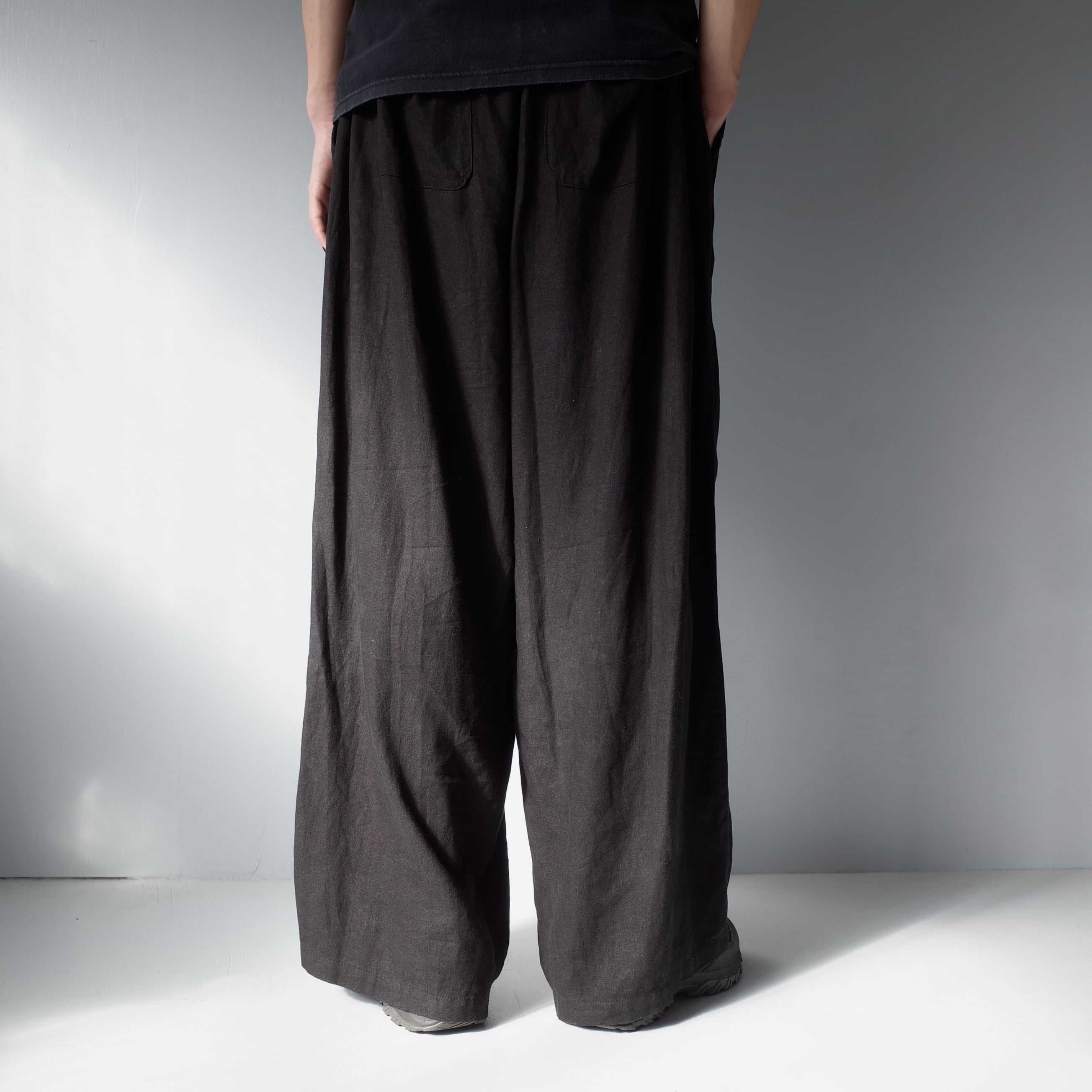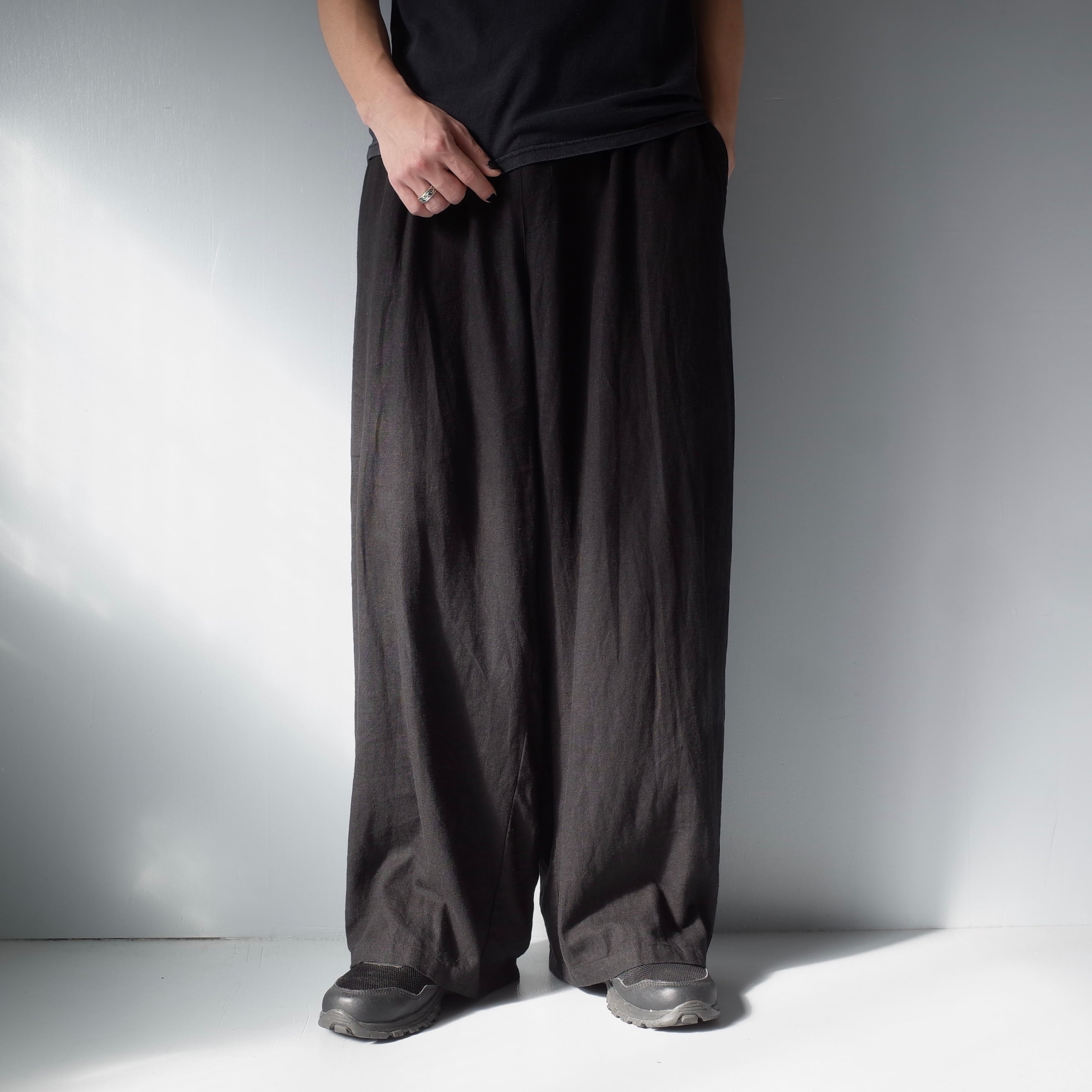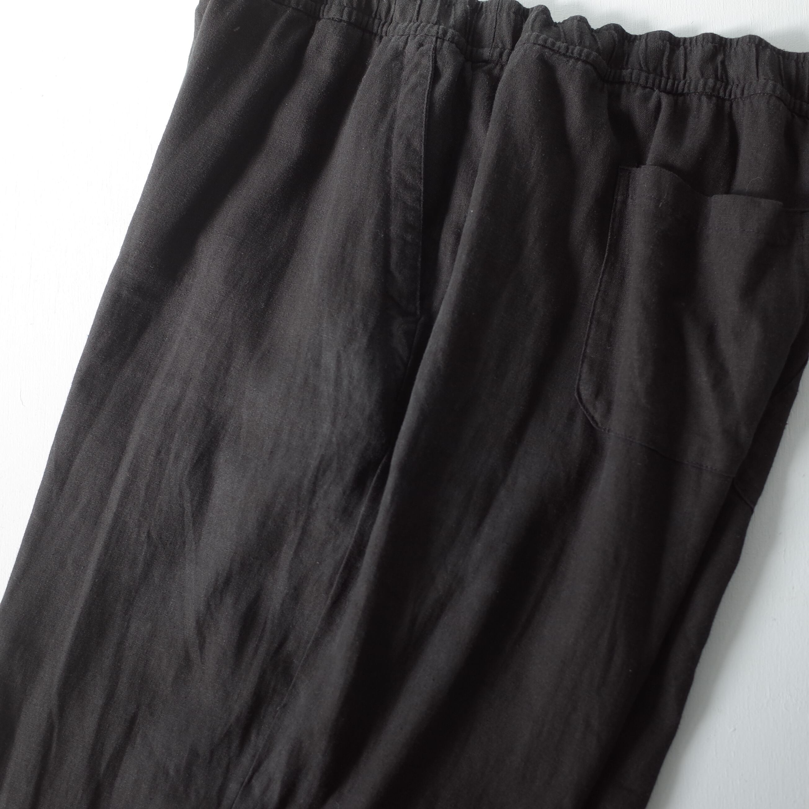 イージーパンツ。リネンとレーヨンの混紡という点も大変