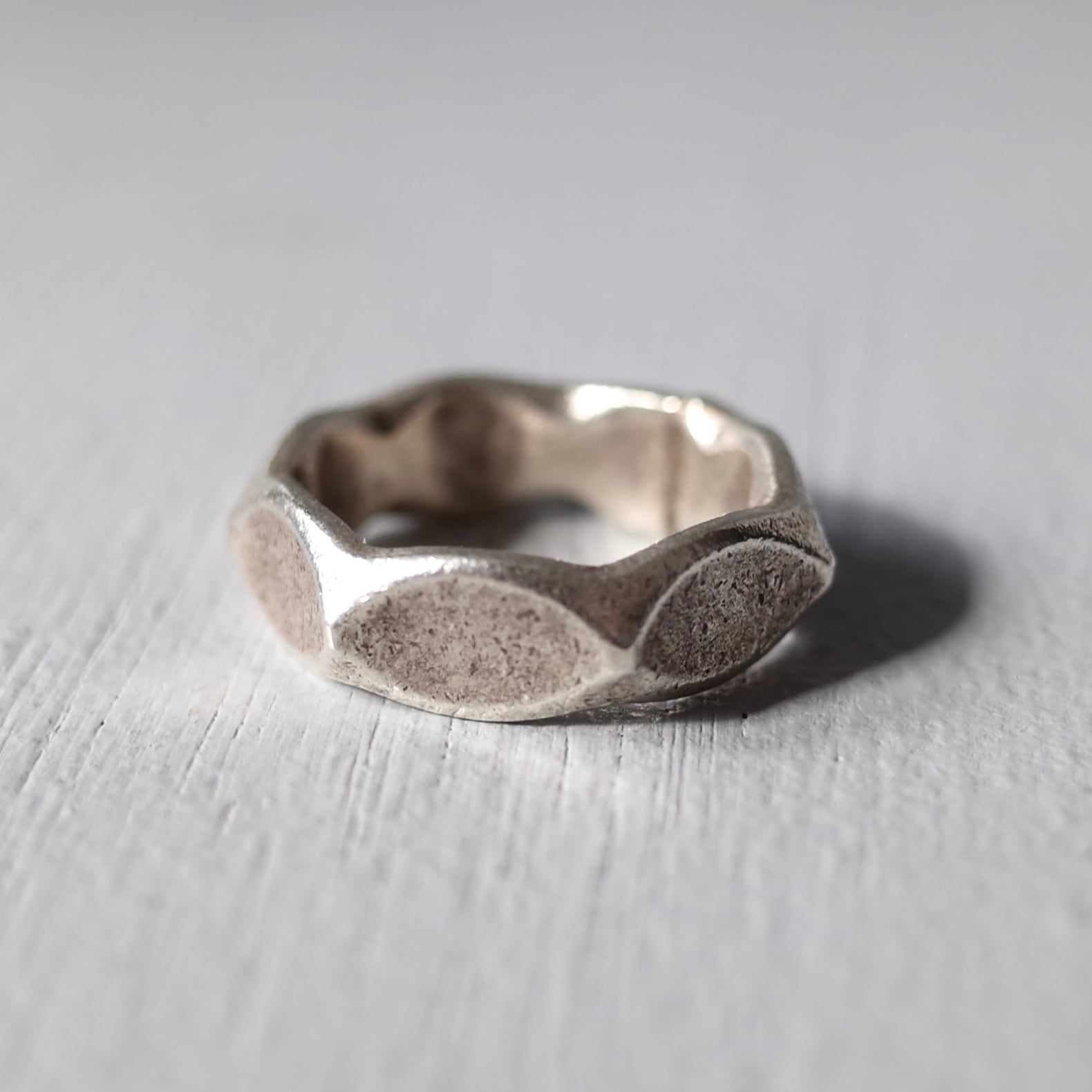 ナットがモチーフとされたカレン族による無骨なリング。強気なモチーフの中にハンドメイドならではの温かみある
