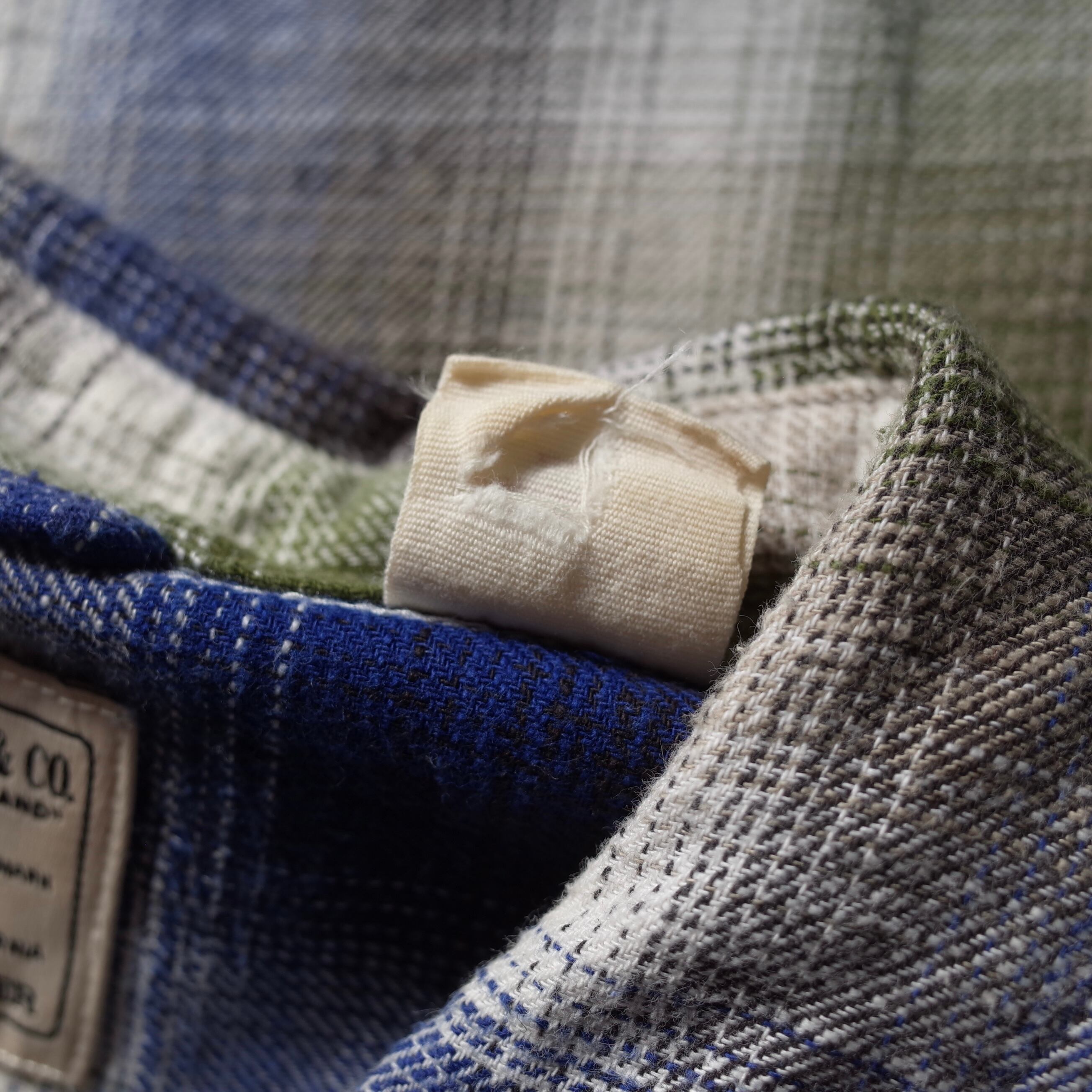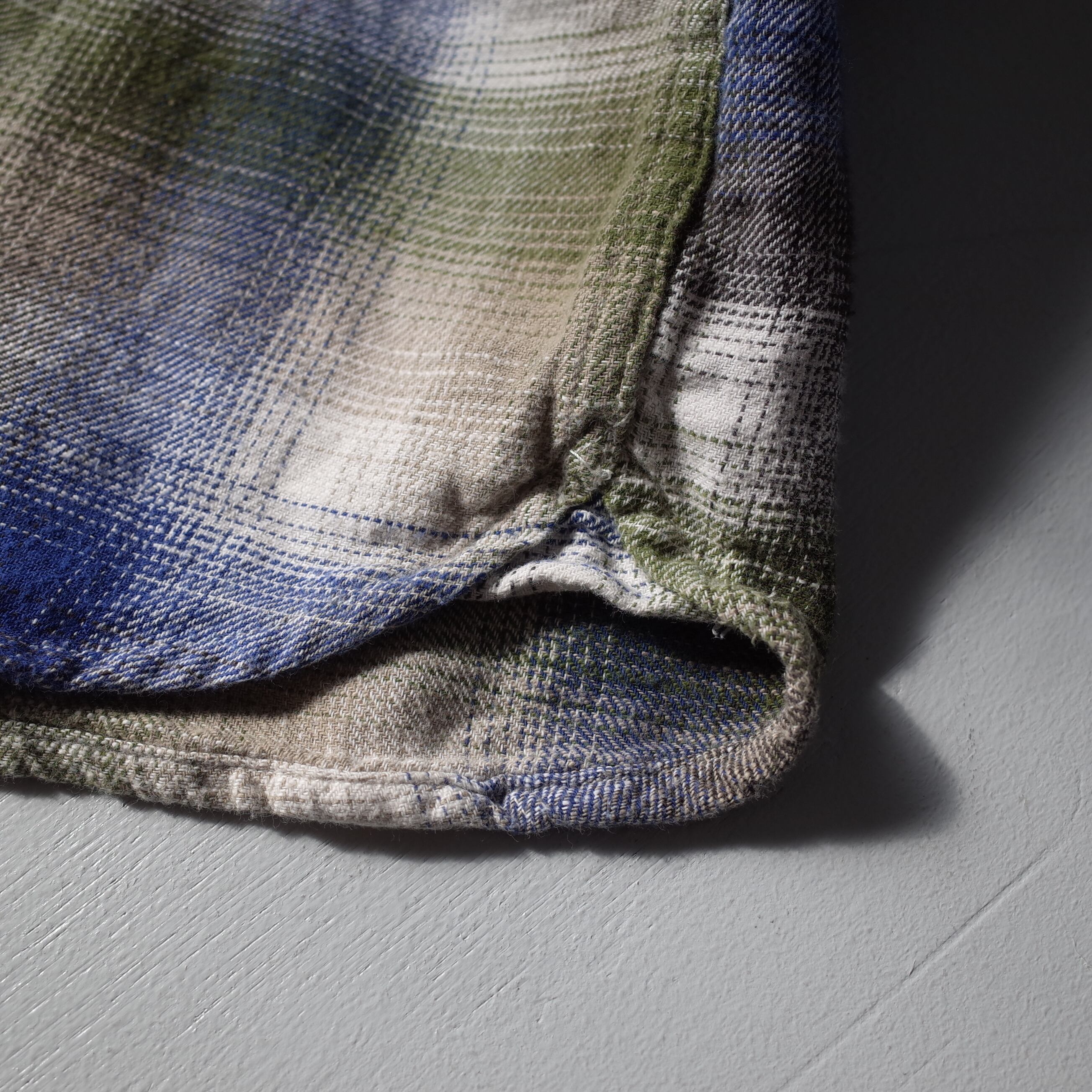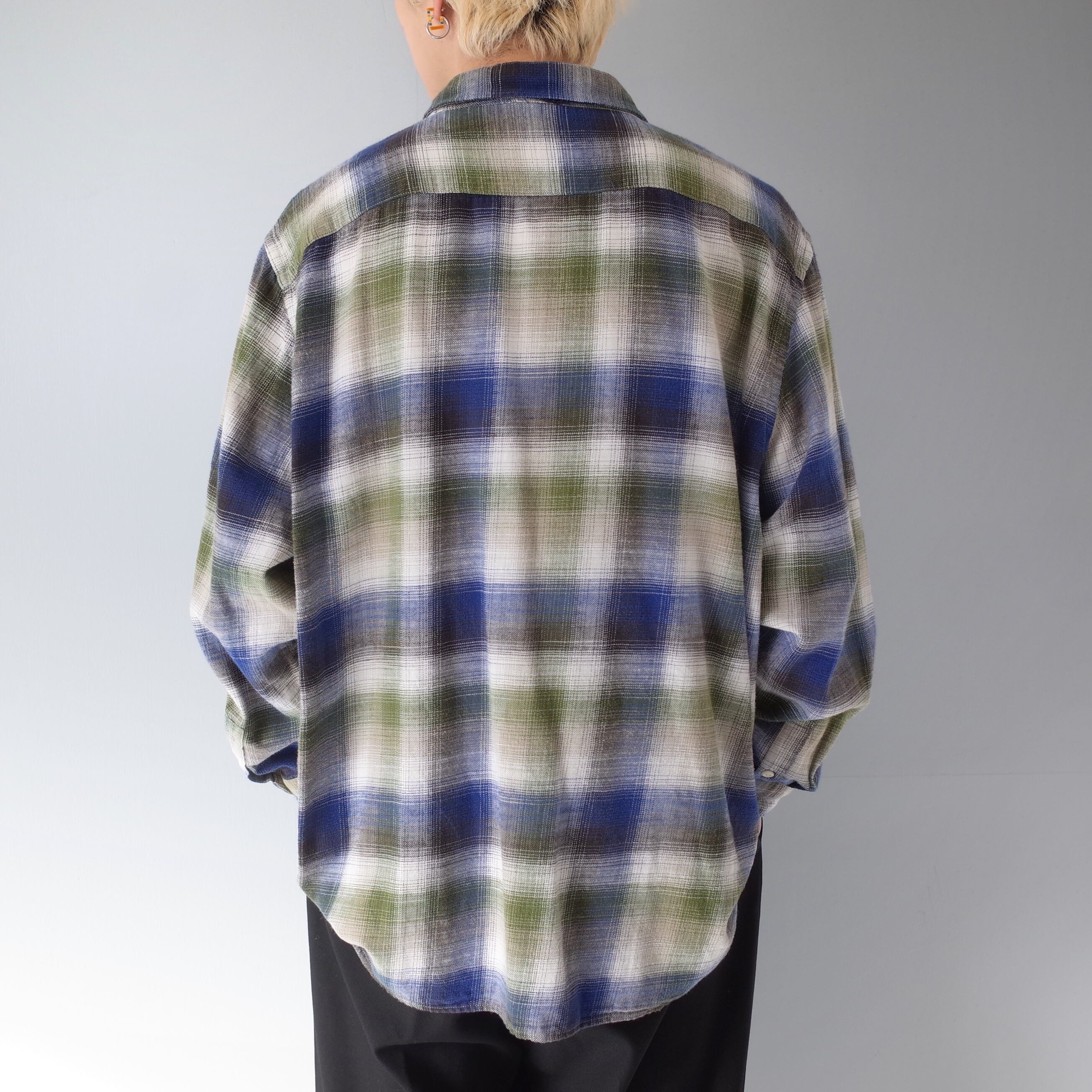 オンブレチェック柄シャツ。泥臭さが漂うカラーリングで