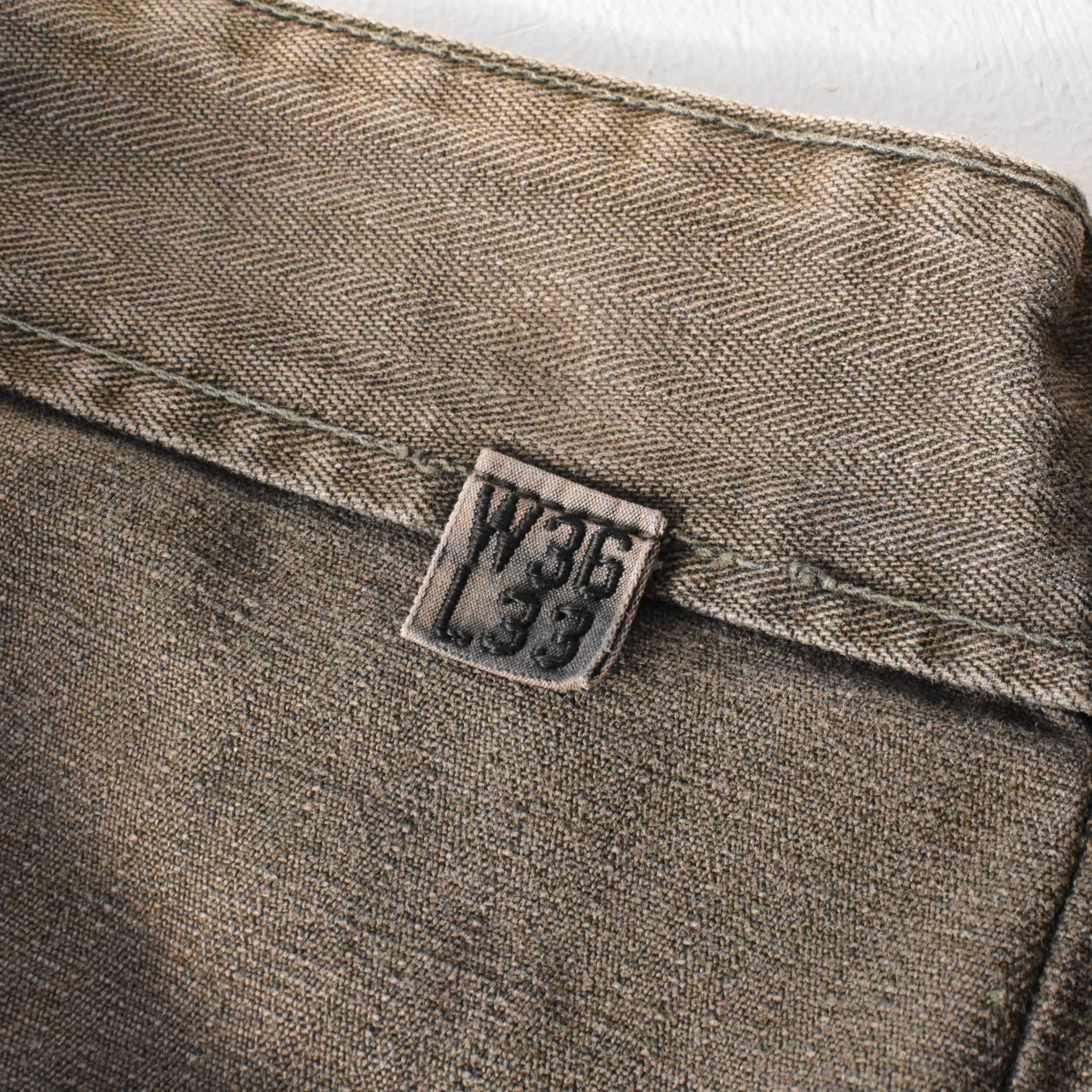 SIZE W36/L33、ウエスト 90cm、股上 34.5cm、股下 64cm、わたり幅 36cm、総丈 95.5cm